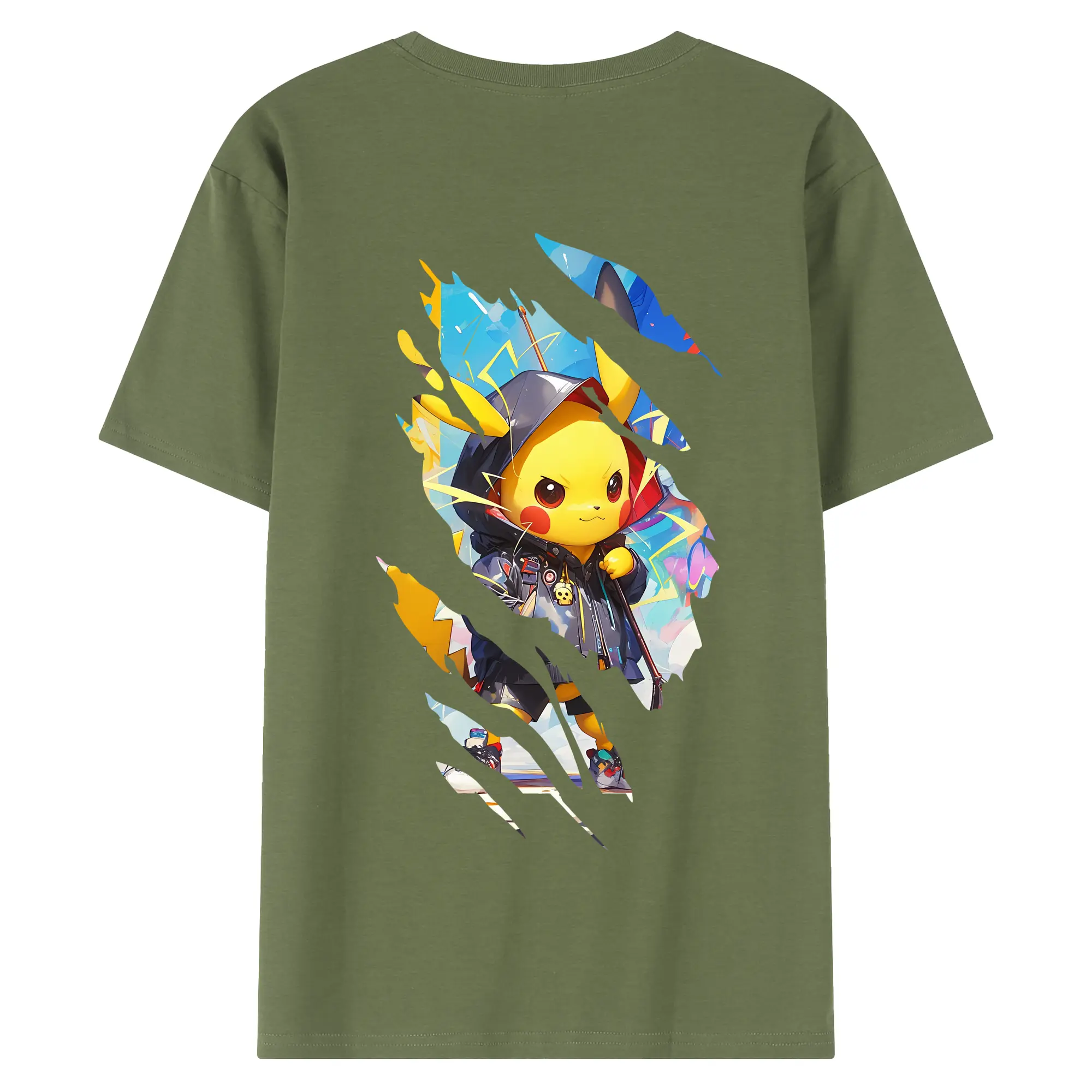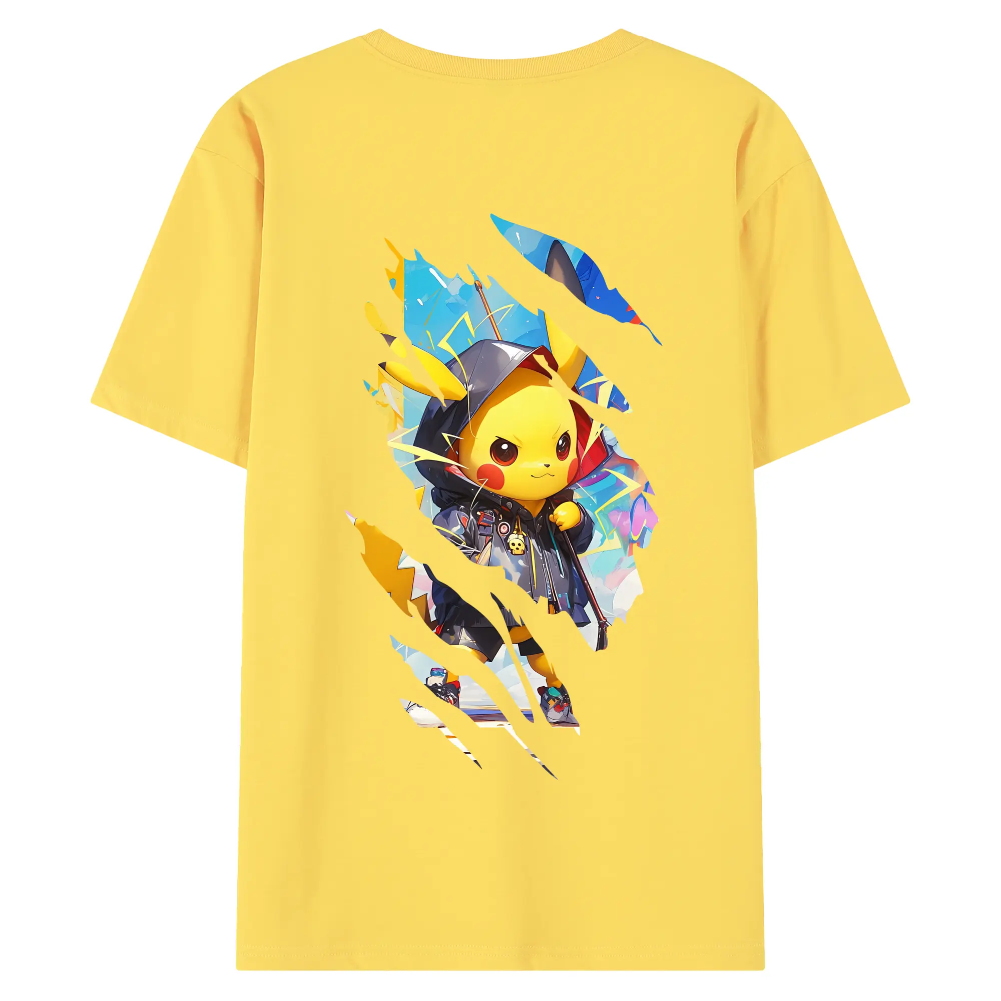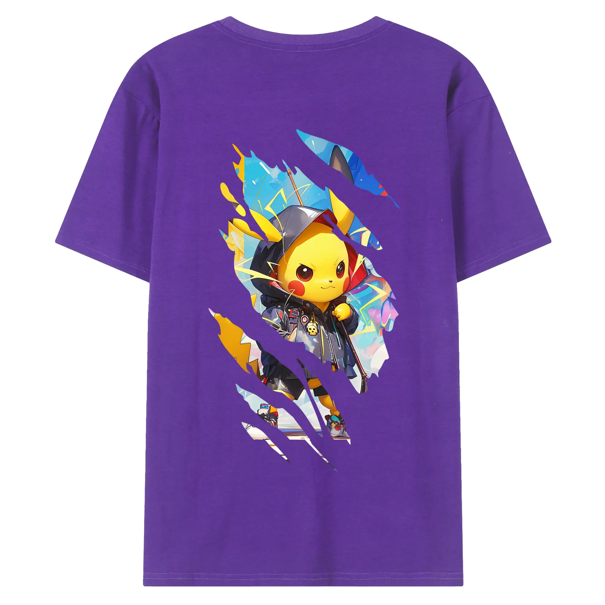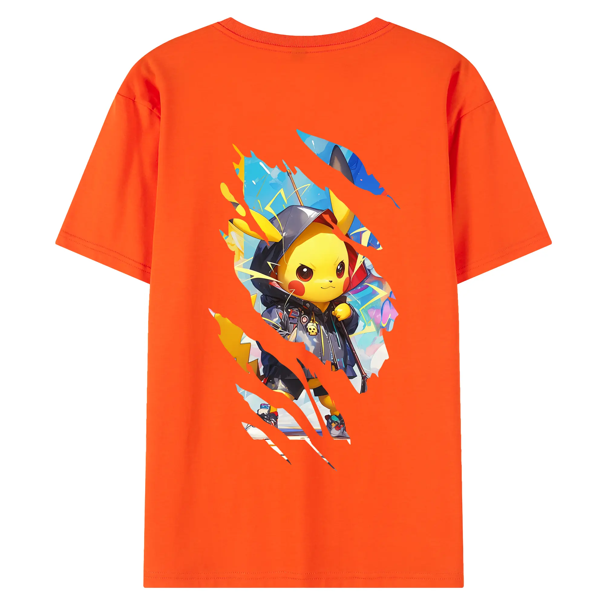 ポケモン グッズ,ピカチュウ - 綿100% ヴィンテージ風 半袖Tシャツ ・ 背面プリント ・ 柔らか肌触り ・ 通気性 快適 ・ スポーツ カジュアル 外出用