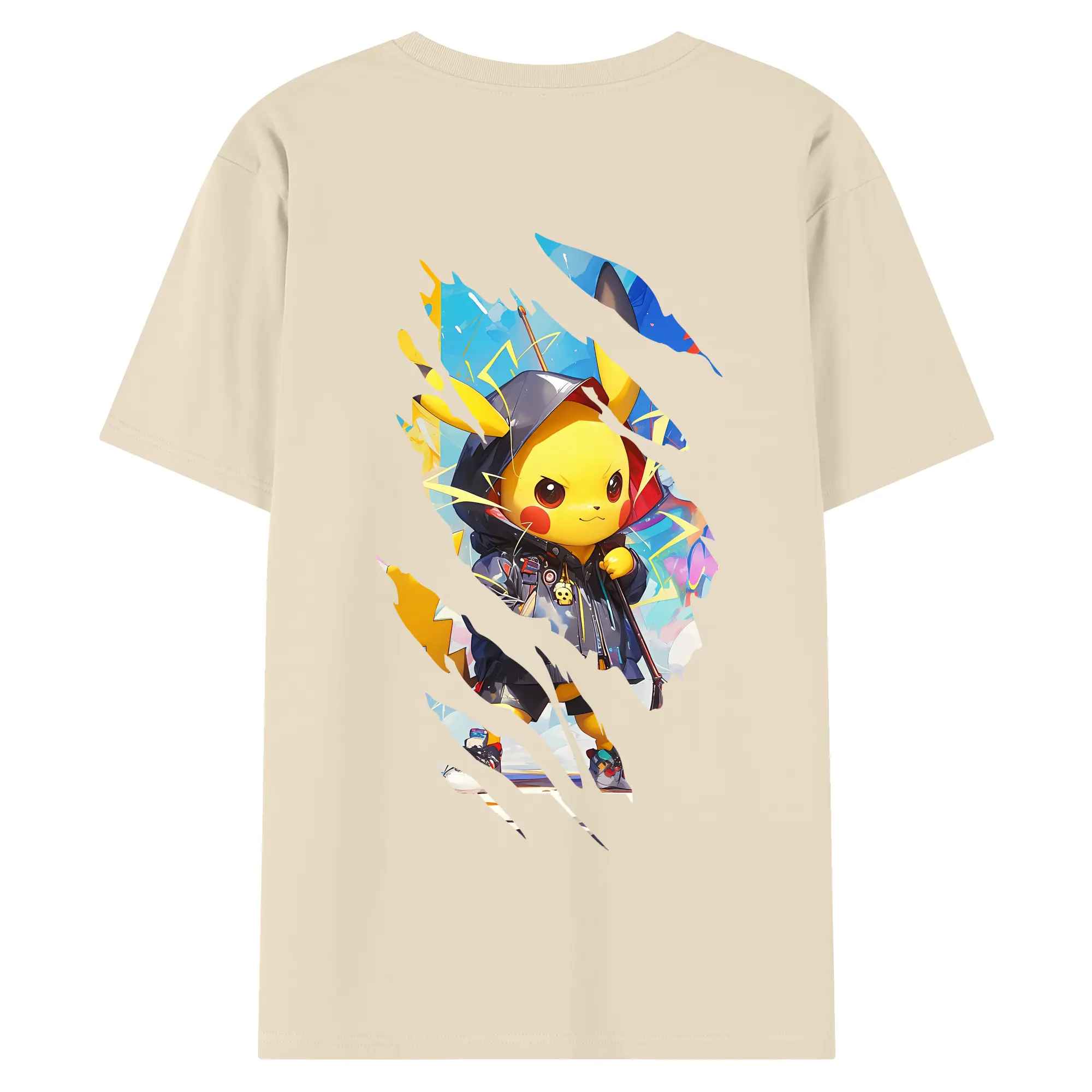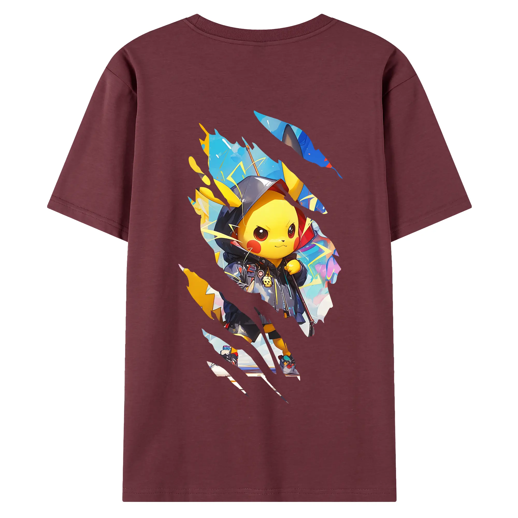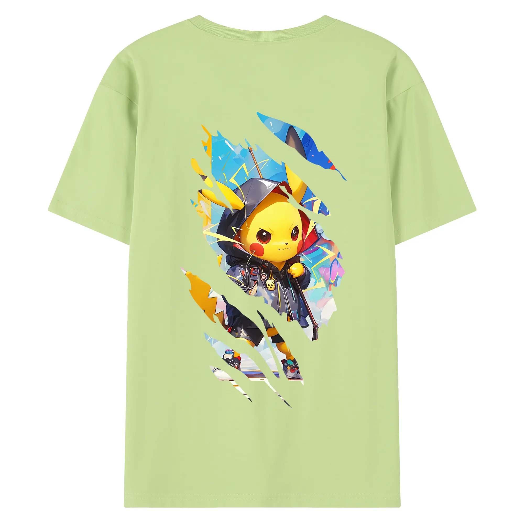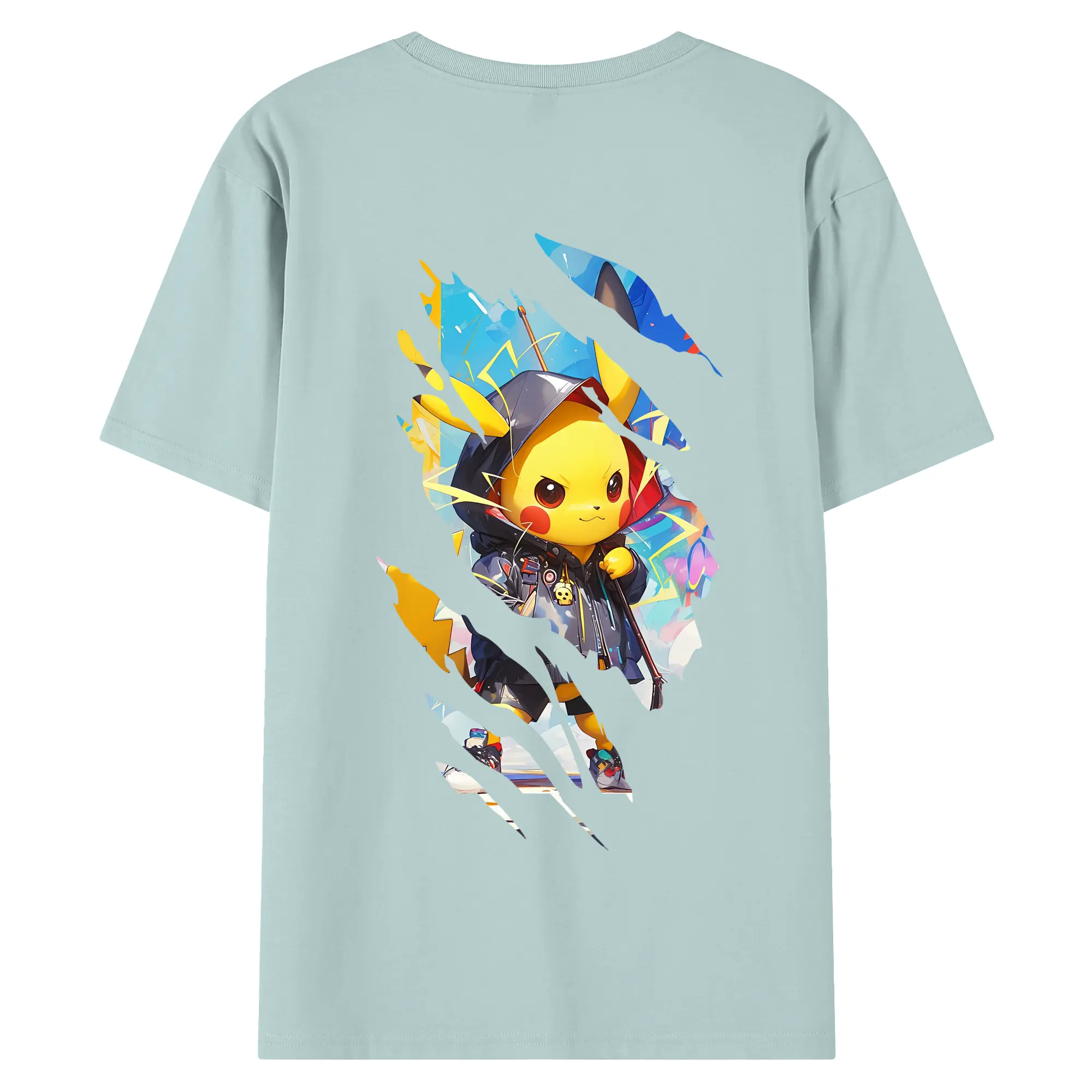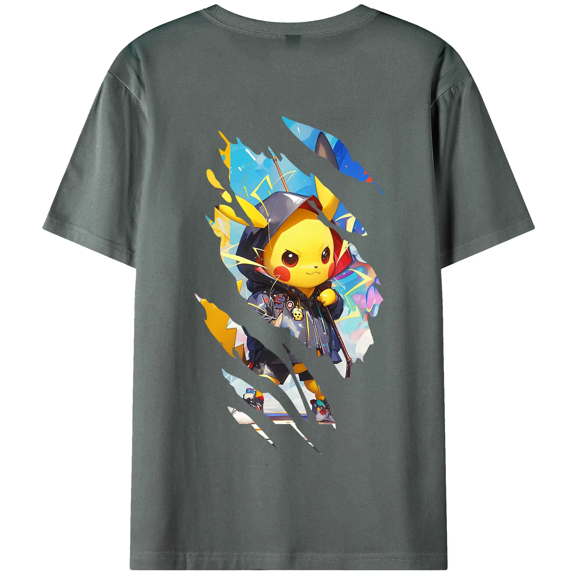 ポケモン グッズ,ピカチュウ - 綿100% ヴィンテージ風 半袖Tシャツ ・ 背面プリント ・ 柔らか肌触り ・ 通気性 快適 ・ スポーツ カジュアル 外出用