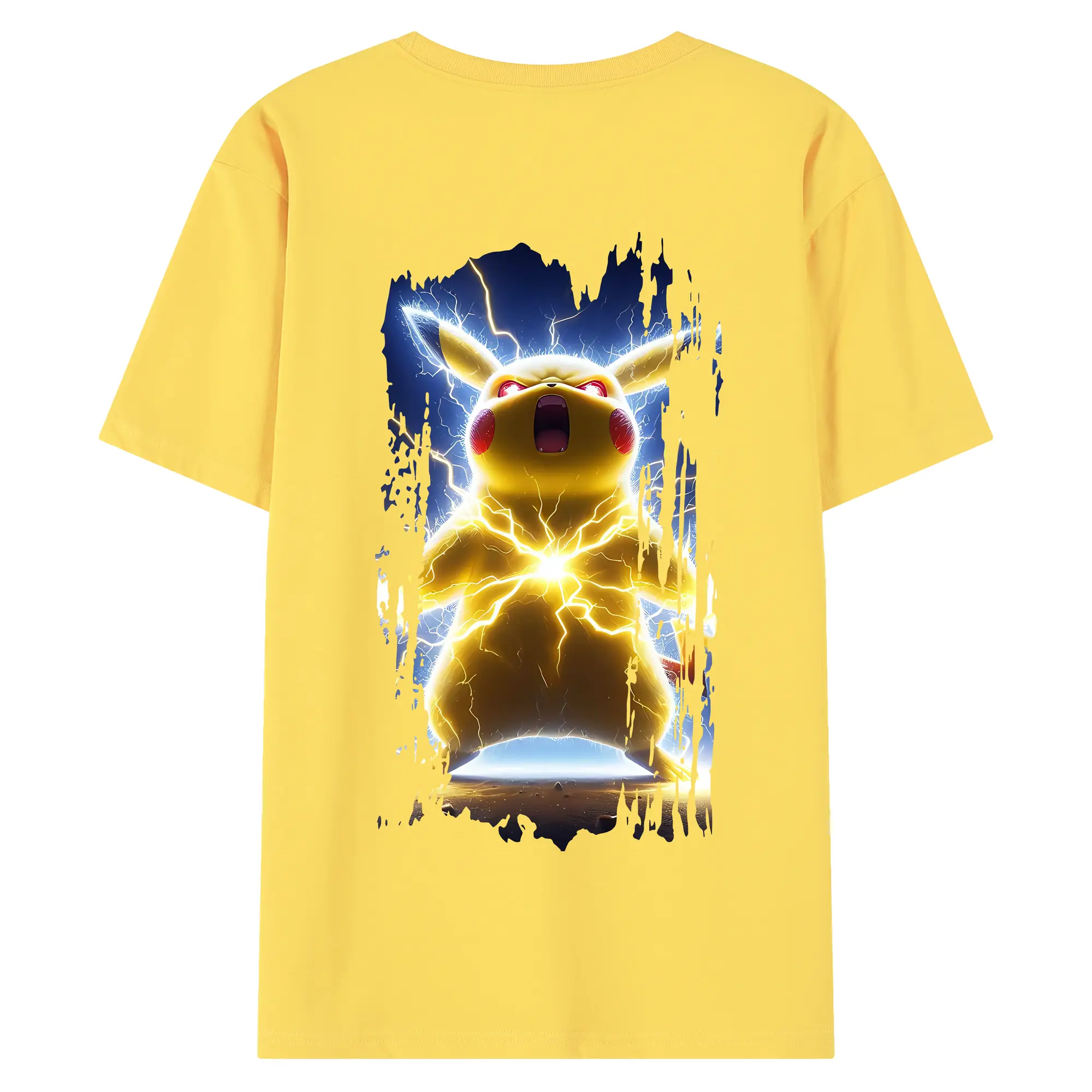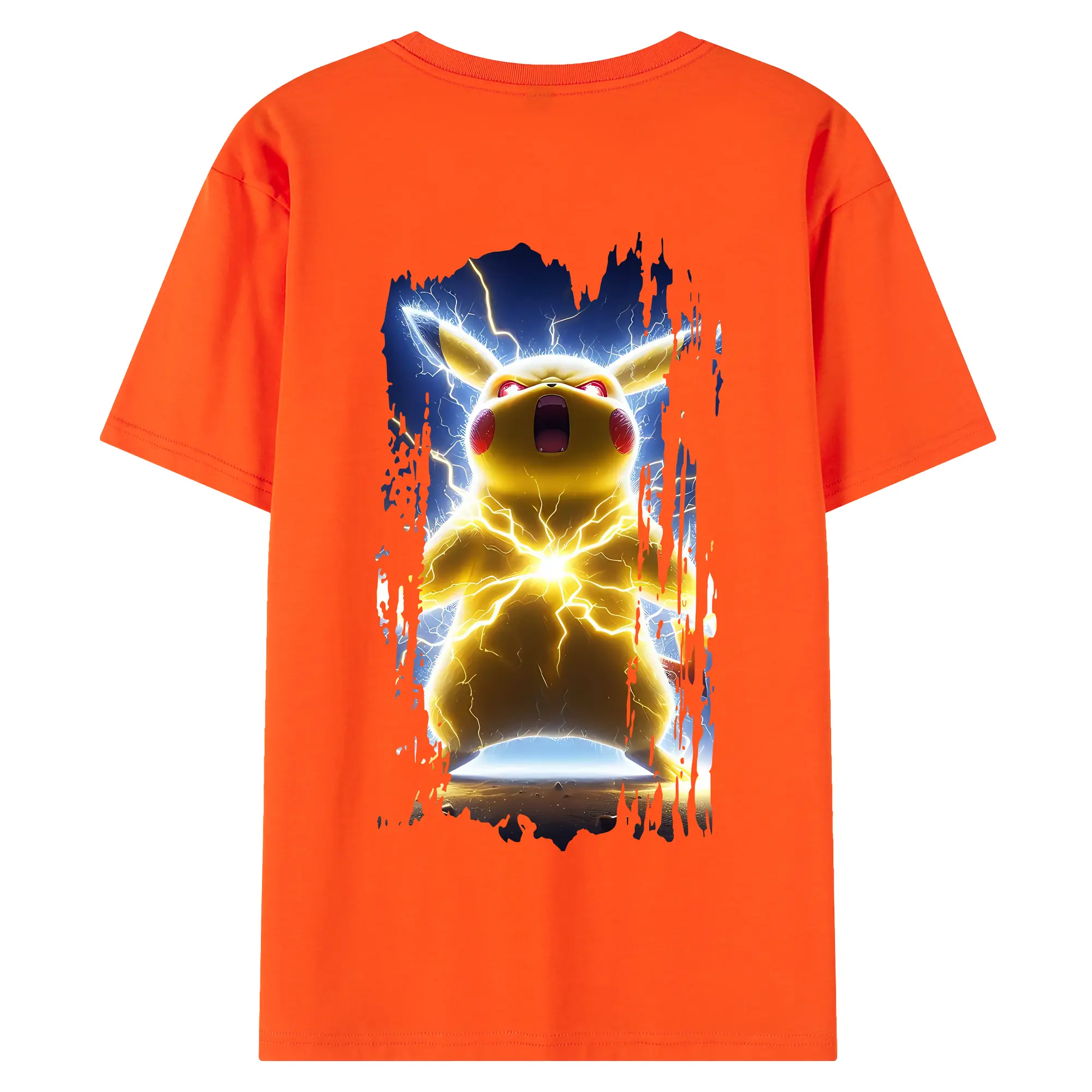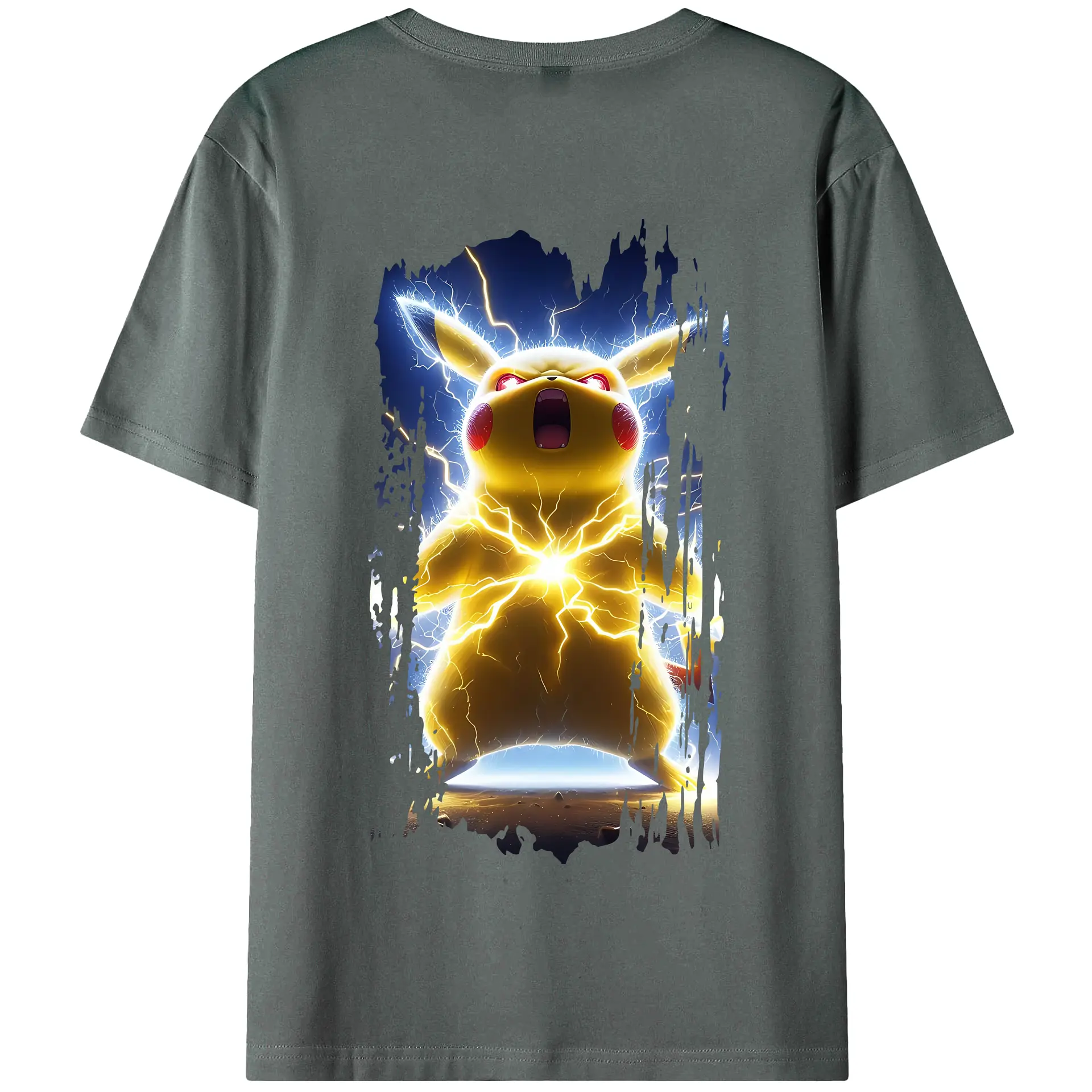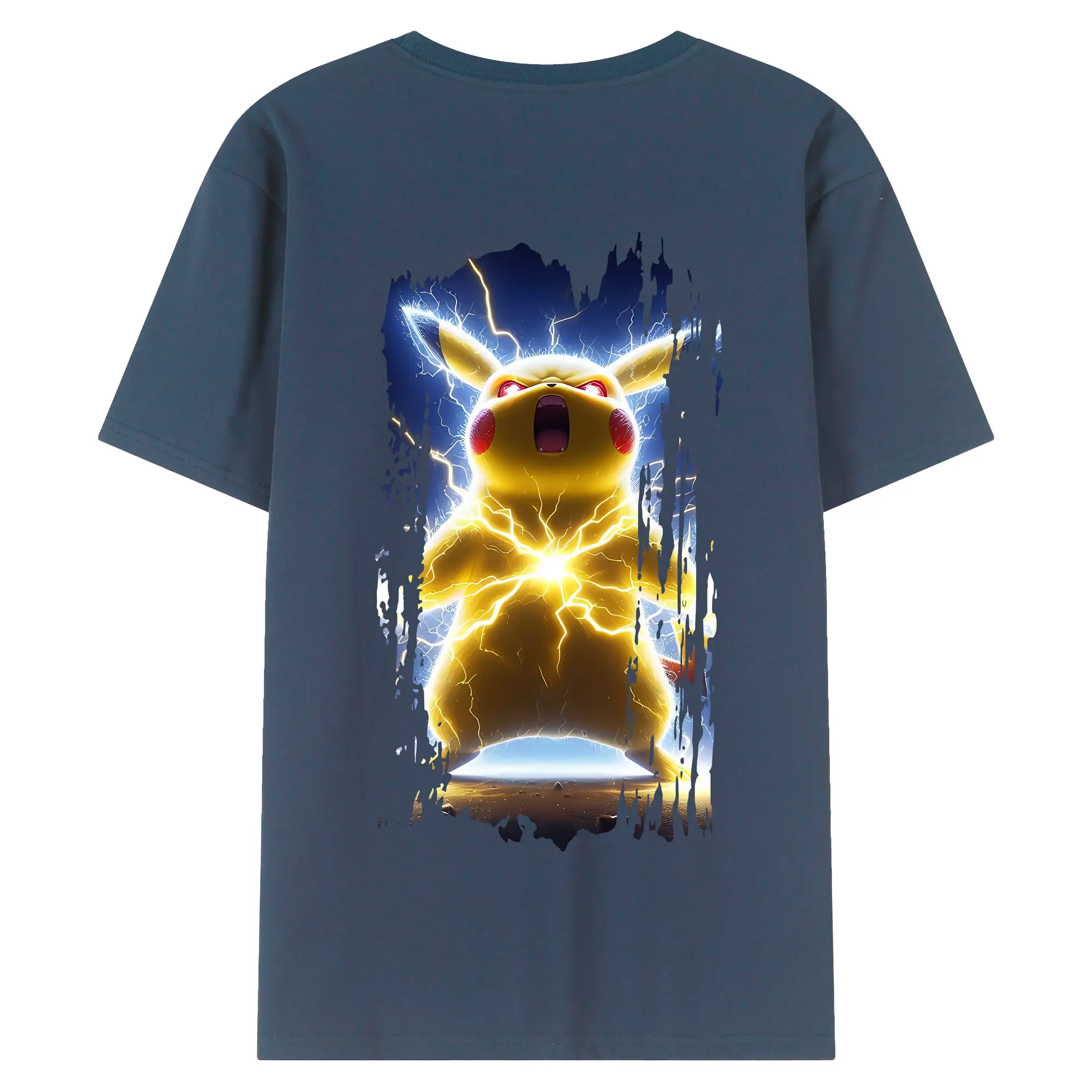 ポケモン グッズ,ピカチュウ - 綿100% ヴィンテージ風 半袖Tシャツ ・ 背面プリント ・ 柔らか肌触り ・ 通気性 快適 ・ スポーツ カジュアル 外出用