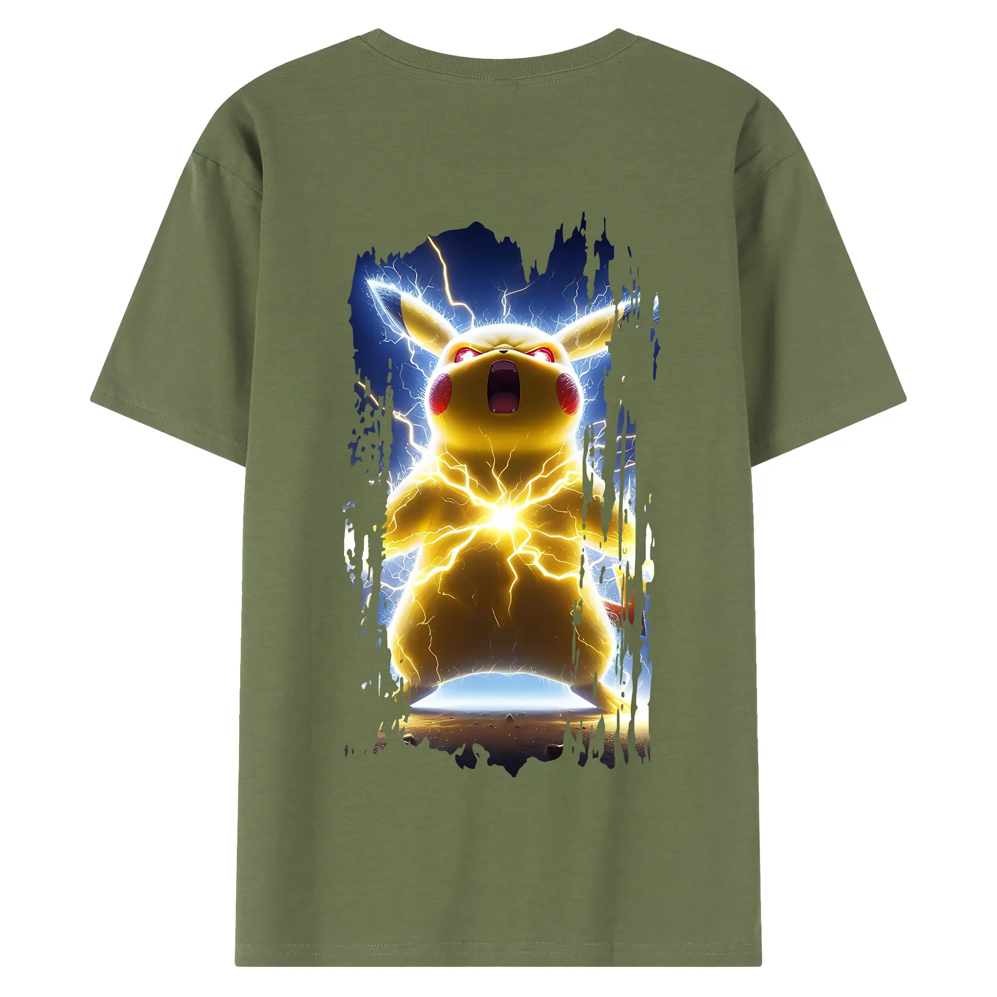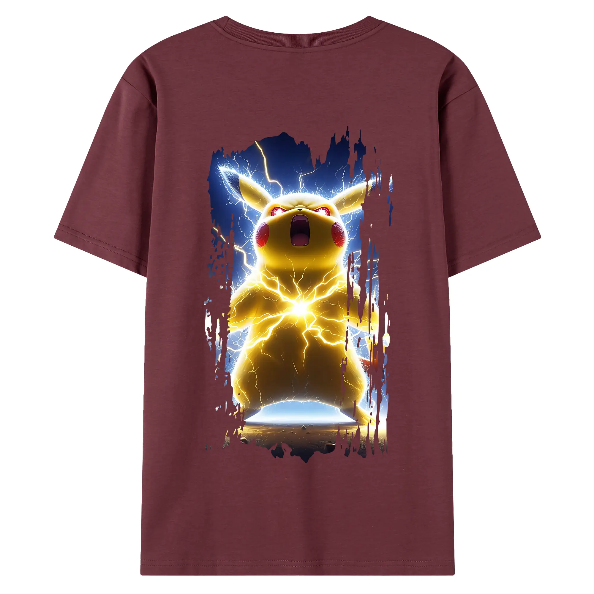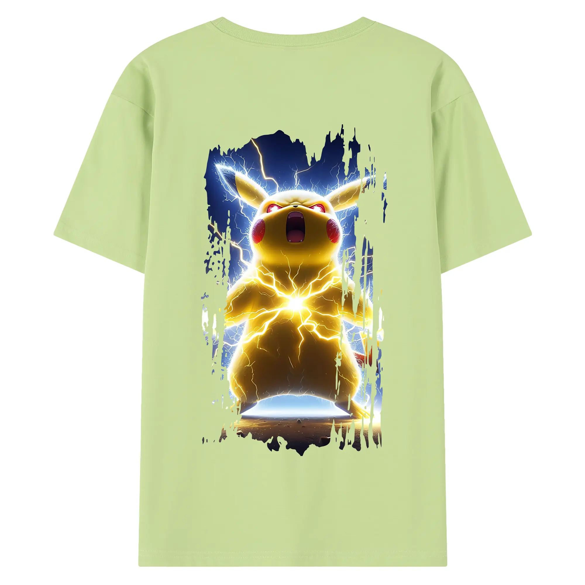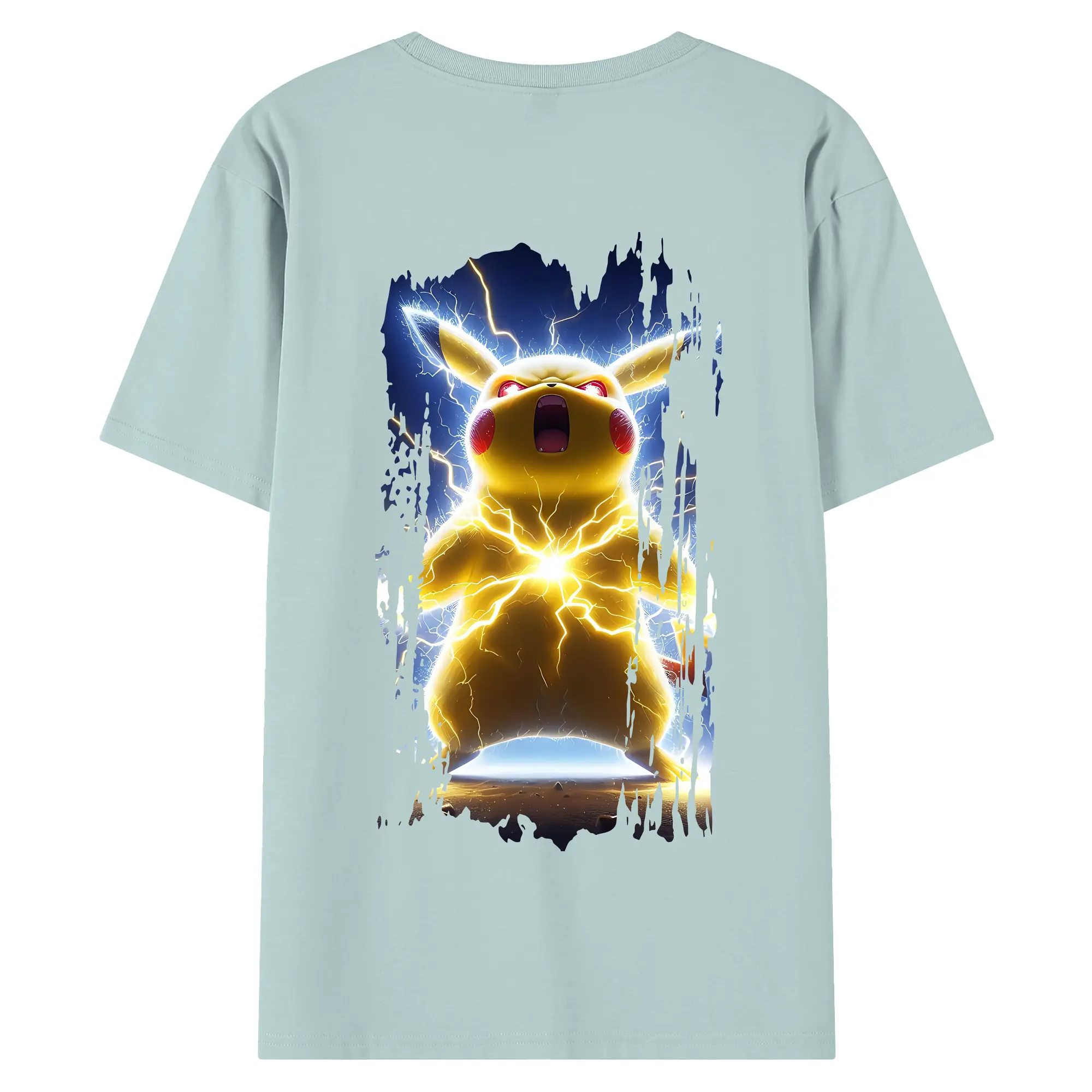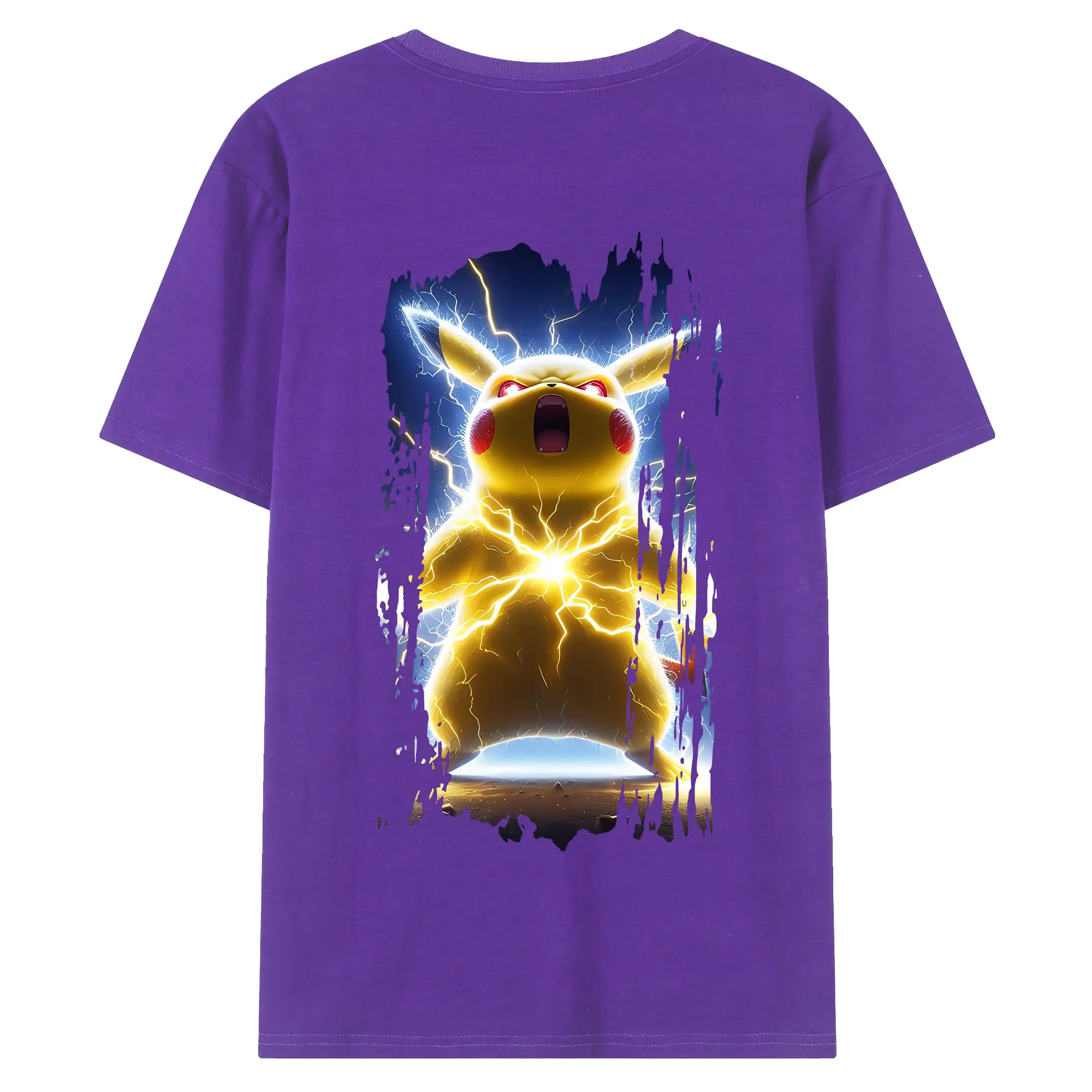 ポケモン グッズ,ピカチュウ - 綿100% ヴィンテージ風 半袖Tシャツ ・ 背面プリント ・ 柔らか肌触り ・ 通気性 快適 ・ スポーツ カジュアル 外出用