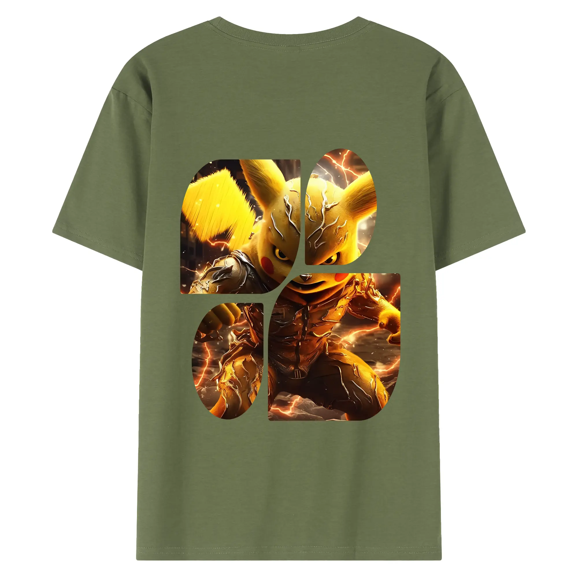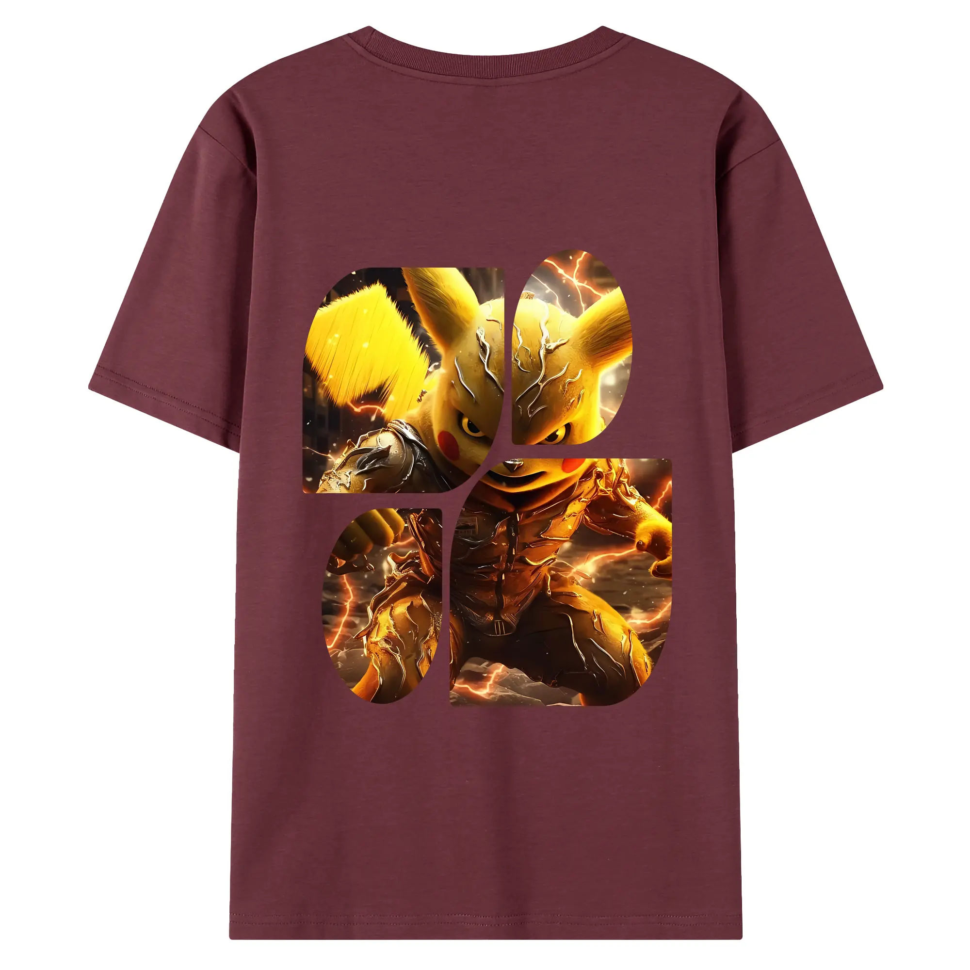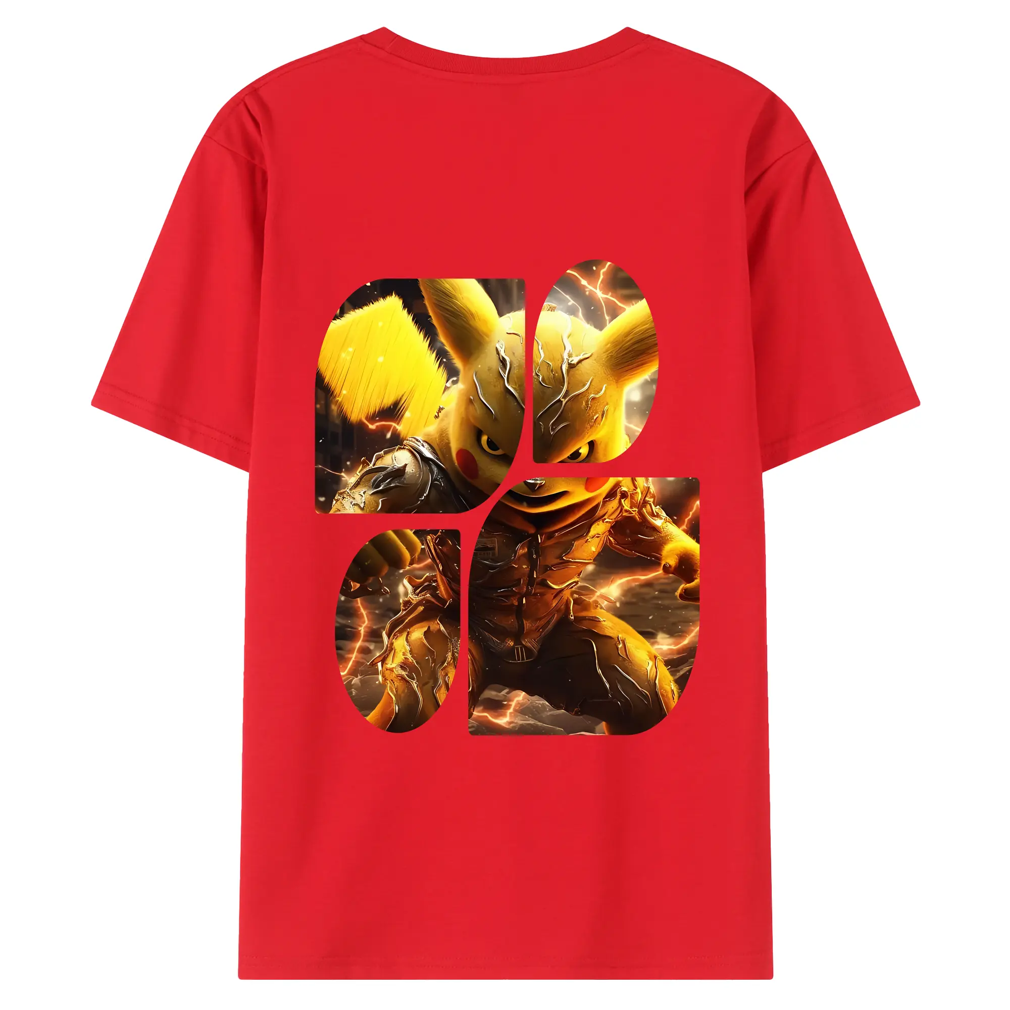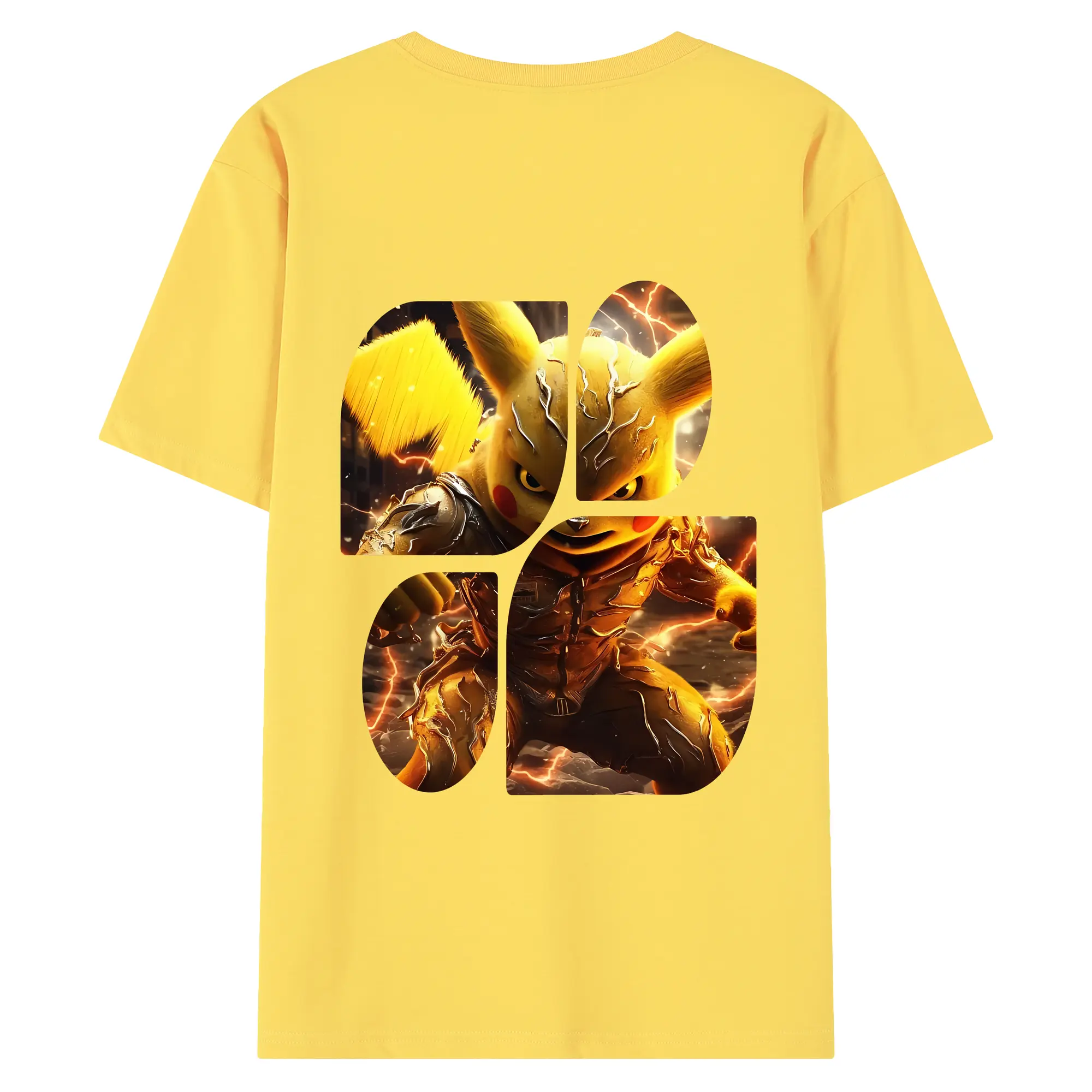 ポケモン グッズ,ピカチュウ - 綿100% ヴィンテージ風 半袖Tシャツ ・ 背面プリント ・ 柔らか肌触り ・ 通気性 快適 ・ スポーツ カジュアル 外出用