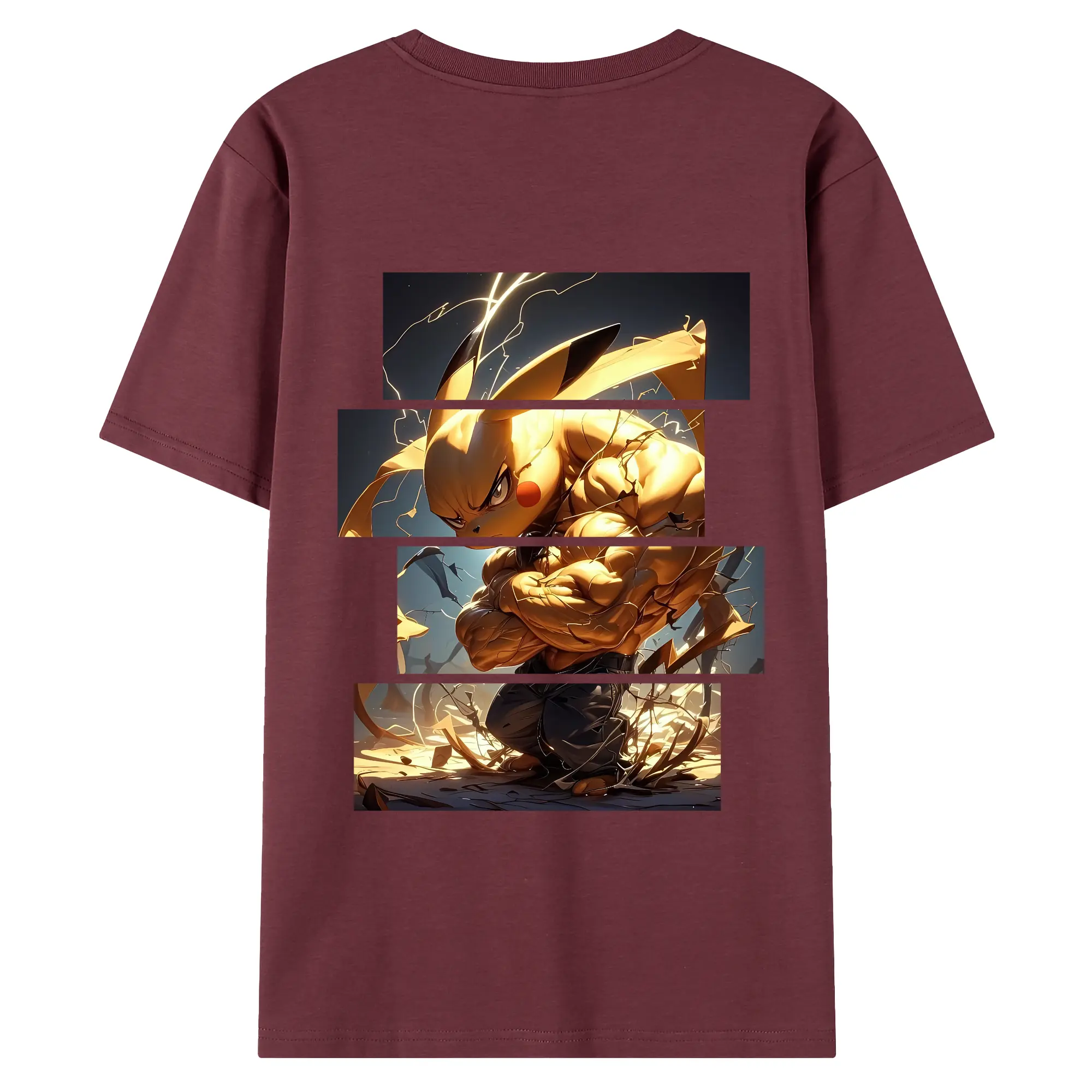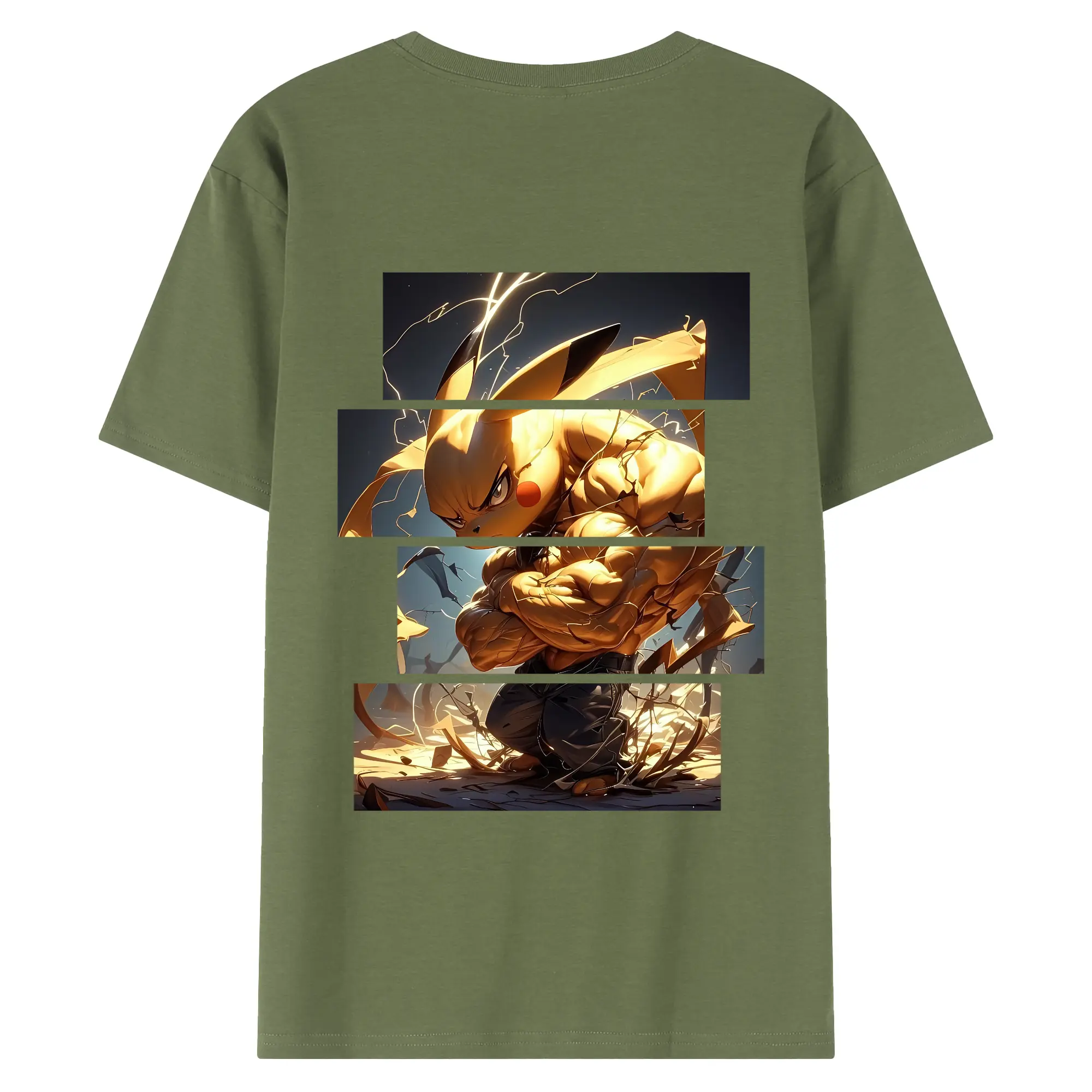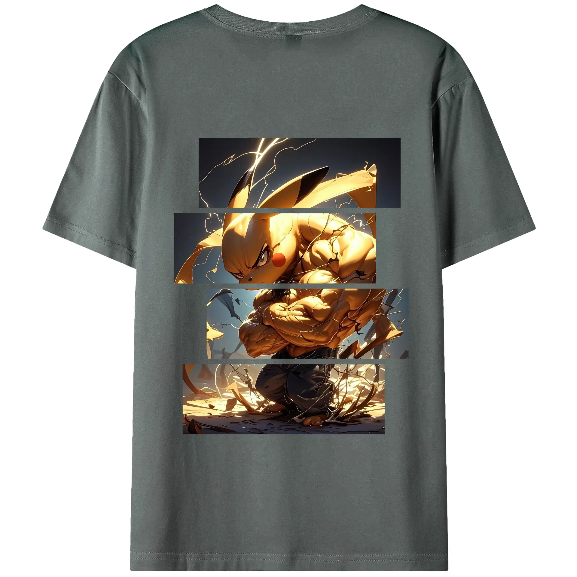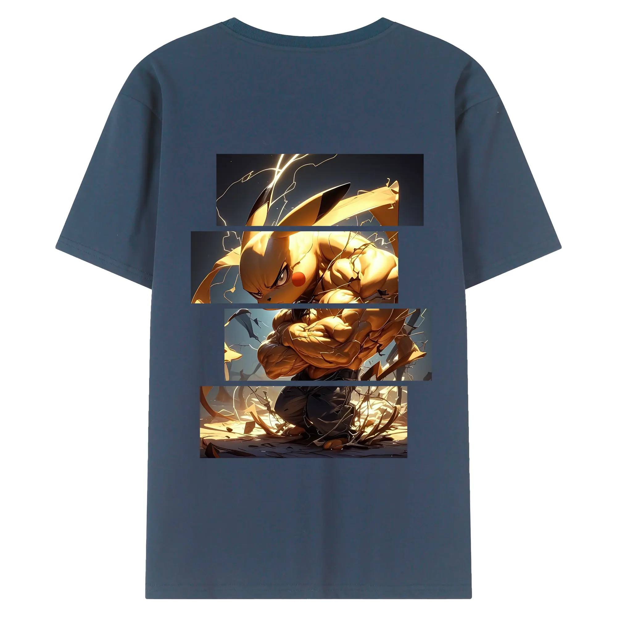 ポケモン グッズ,ピカチュウ - 綿100% ヴィンテージ風 半袖Tシャツ ・ 背面プリント ・ 柔らか肌触り ・ 通気性 快適 ・ スポーツ カジュアル 外出用