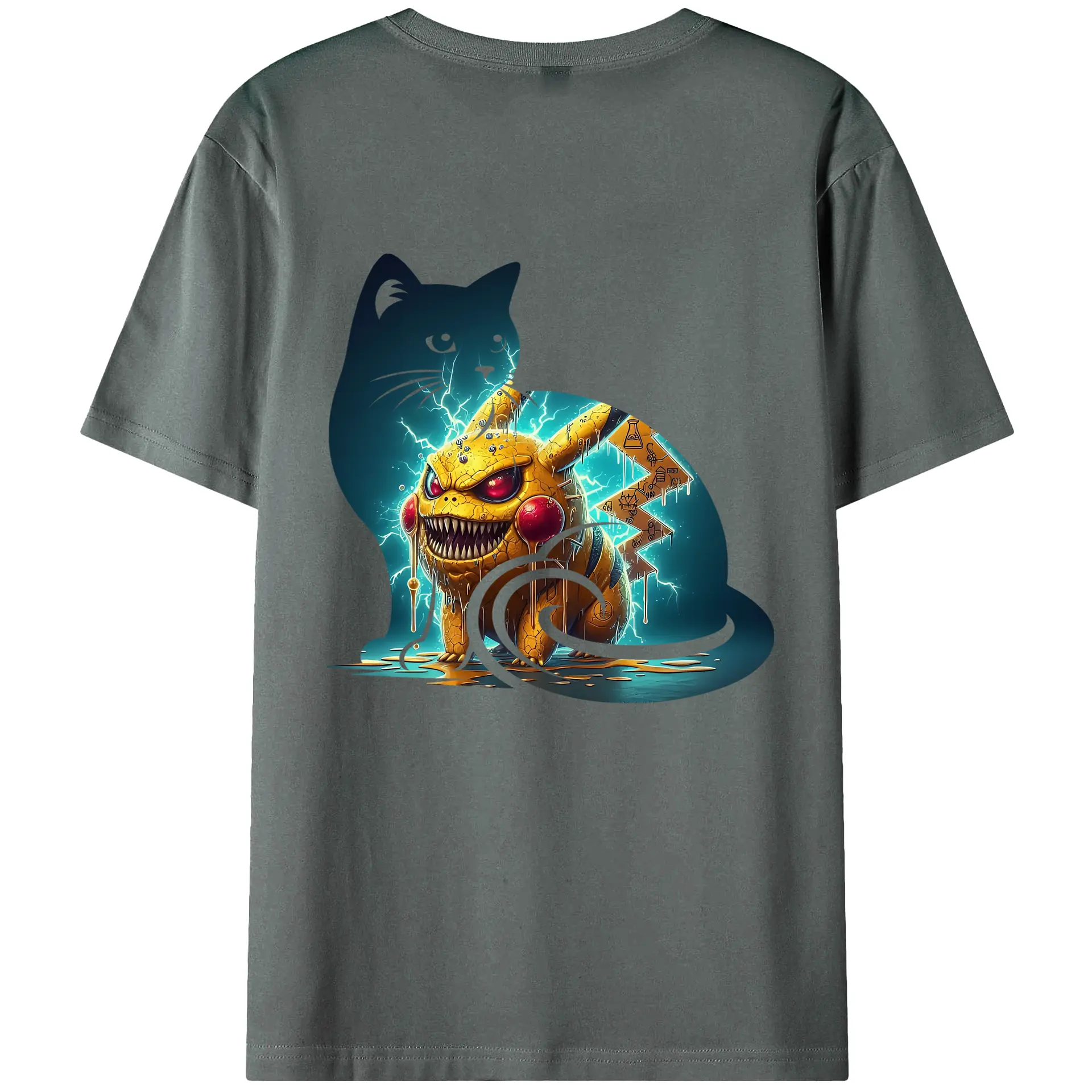 ポケモン グッズ,ピカチュウ - 綿100% ヴィンテージ風 半袖Tシャツ ・ 背面プリント ・ 柔らか肌触り ・ 通気性 快適 ・ スポーツ カジュアル 外出用