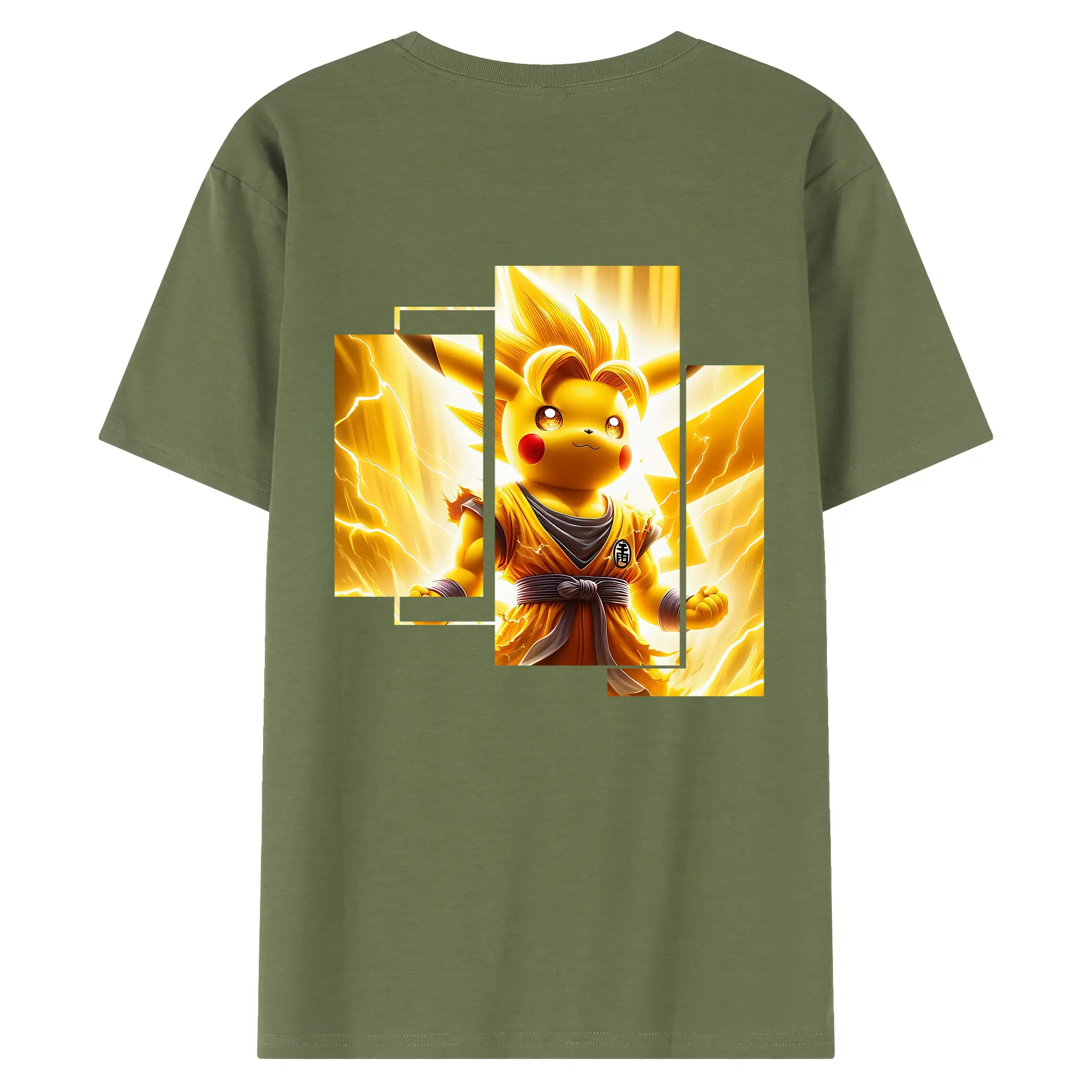 ポケモン グッズ,ピカチュウ - 綿100% ヴィンテージ風 半袖Tシャツ ・ 背面プリント ・ 柔らか肌触り ・ 通気性 快適 ・ スポーツ カジュアル 外出用