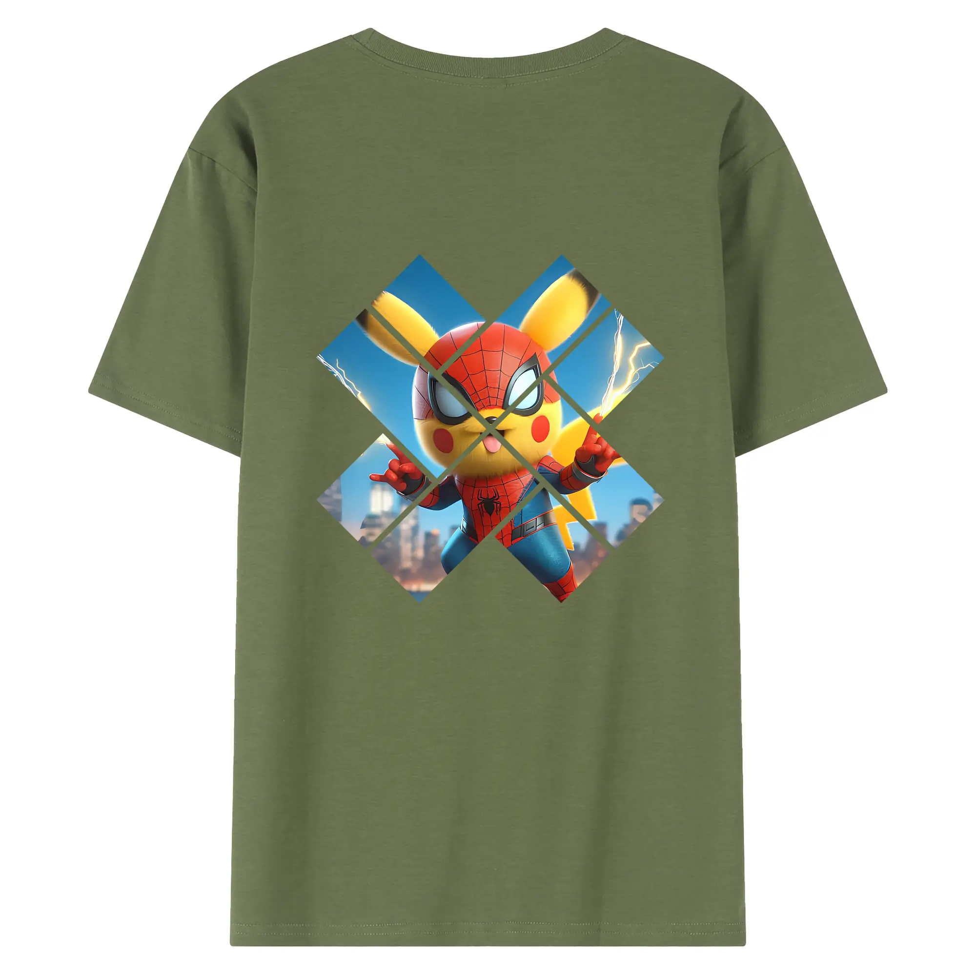 ポケモン グッズ,ピカチュウ - 綿100% ヴィンテージ風 半袖Tシャツ ・ 背面プリント ・ 柔らか肌触り ・ 通気性 快適 ・ スポーツ カジュアル 外出用