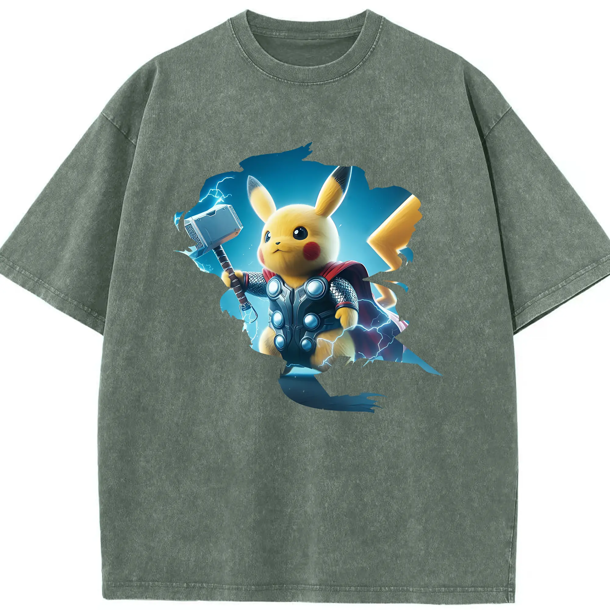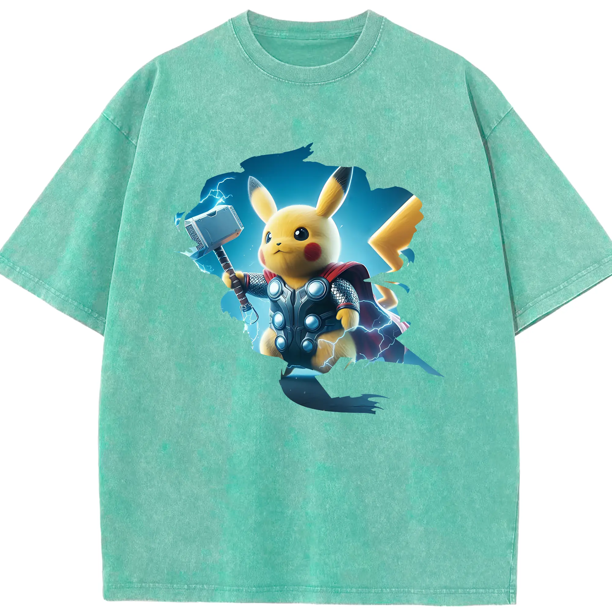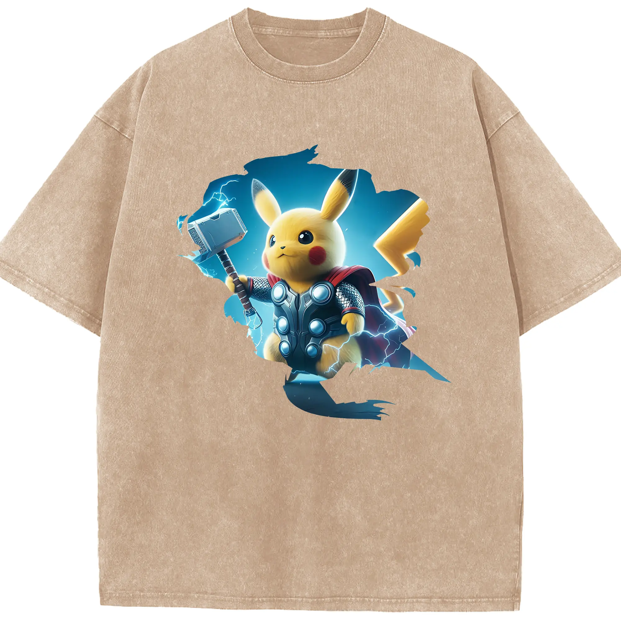 ポケモン グッズ,ピカチュウ - 綿100% ヴィンテージ風 半袖Tシャツ ・ 背面プリント ・ 柔らか肌触り ・ 通気性 快適 ・ スポーツ カジュアル 外出用