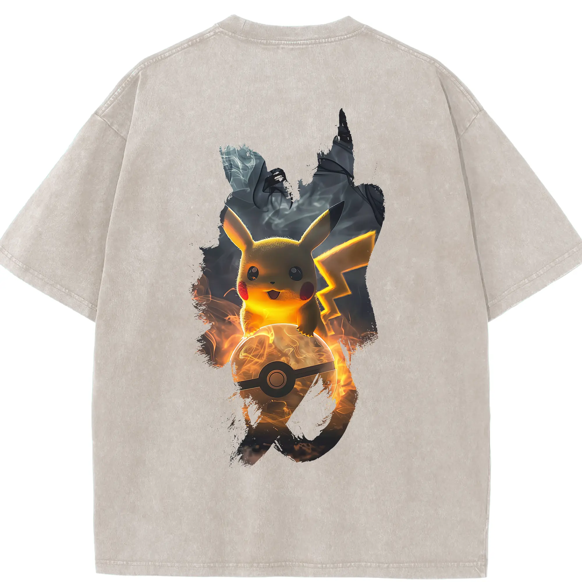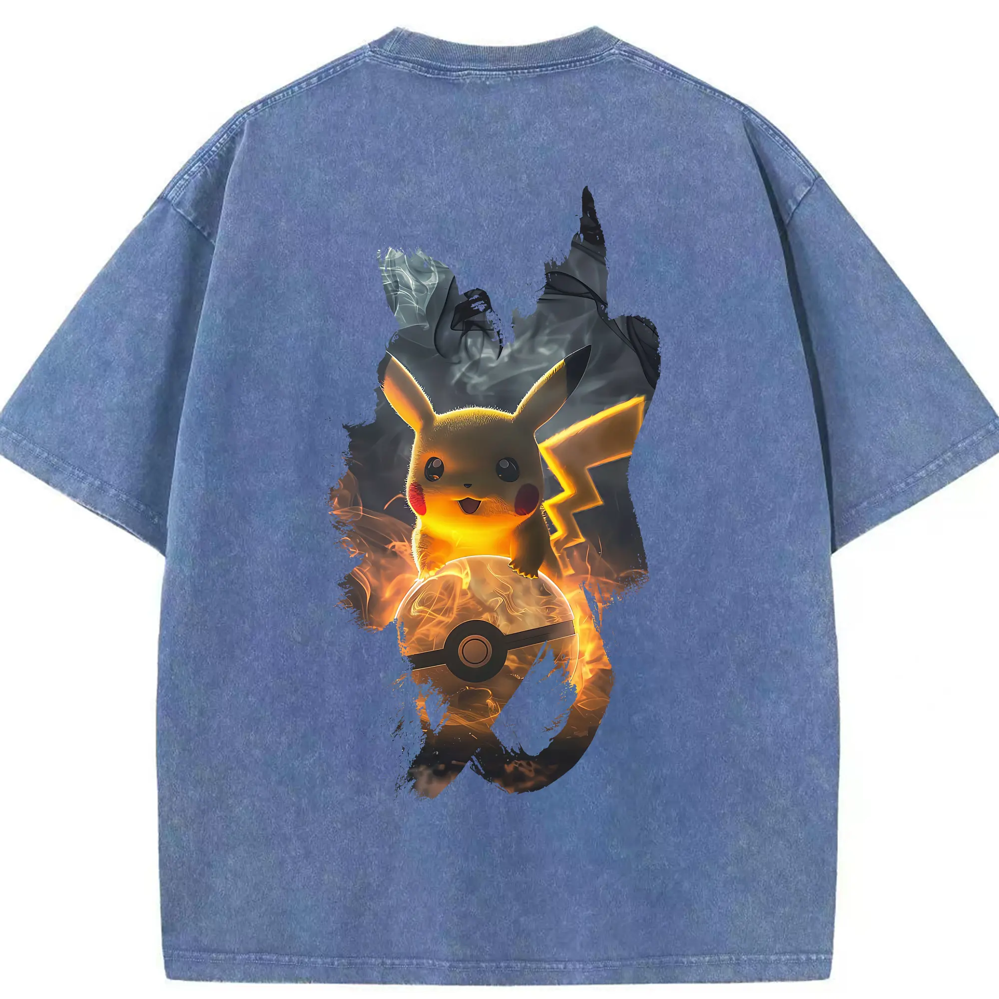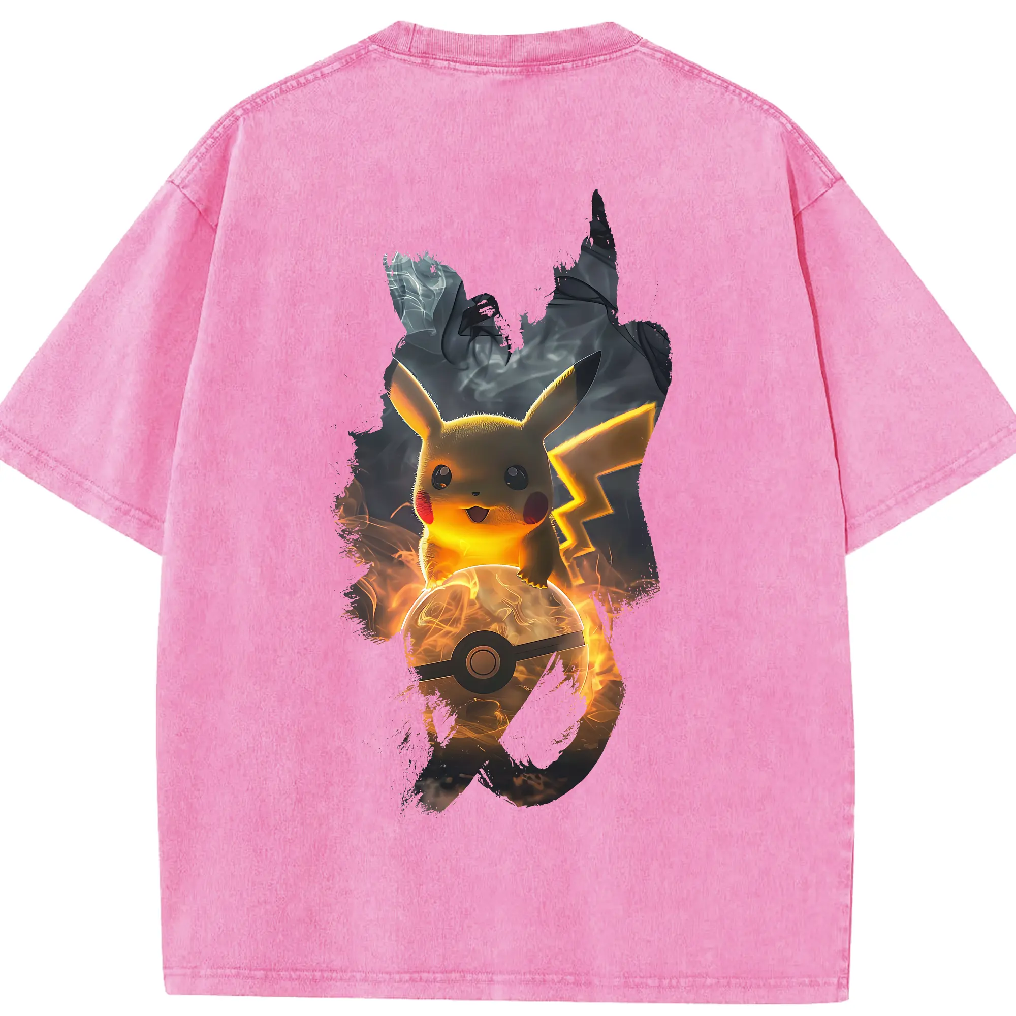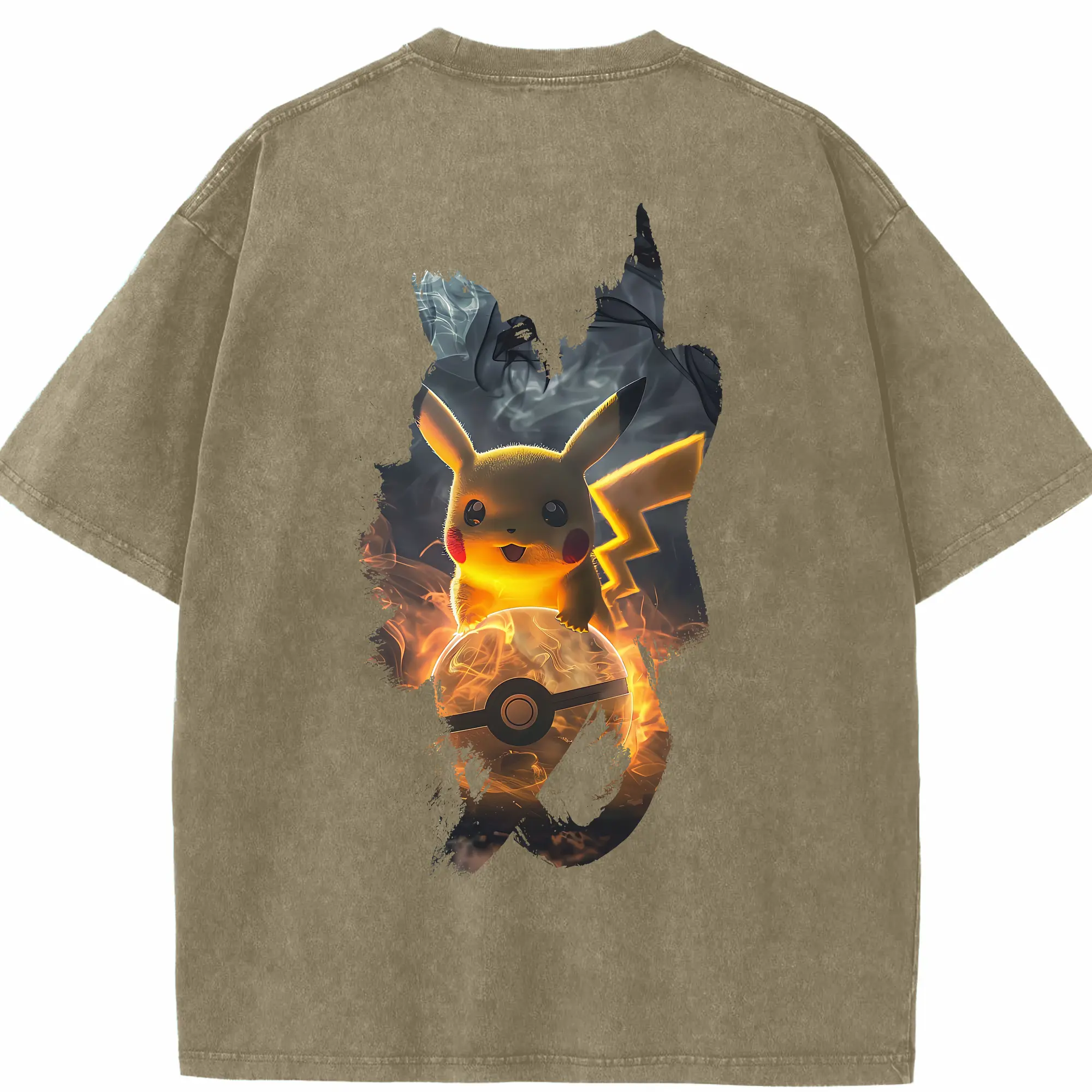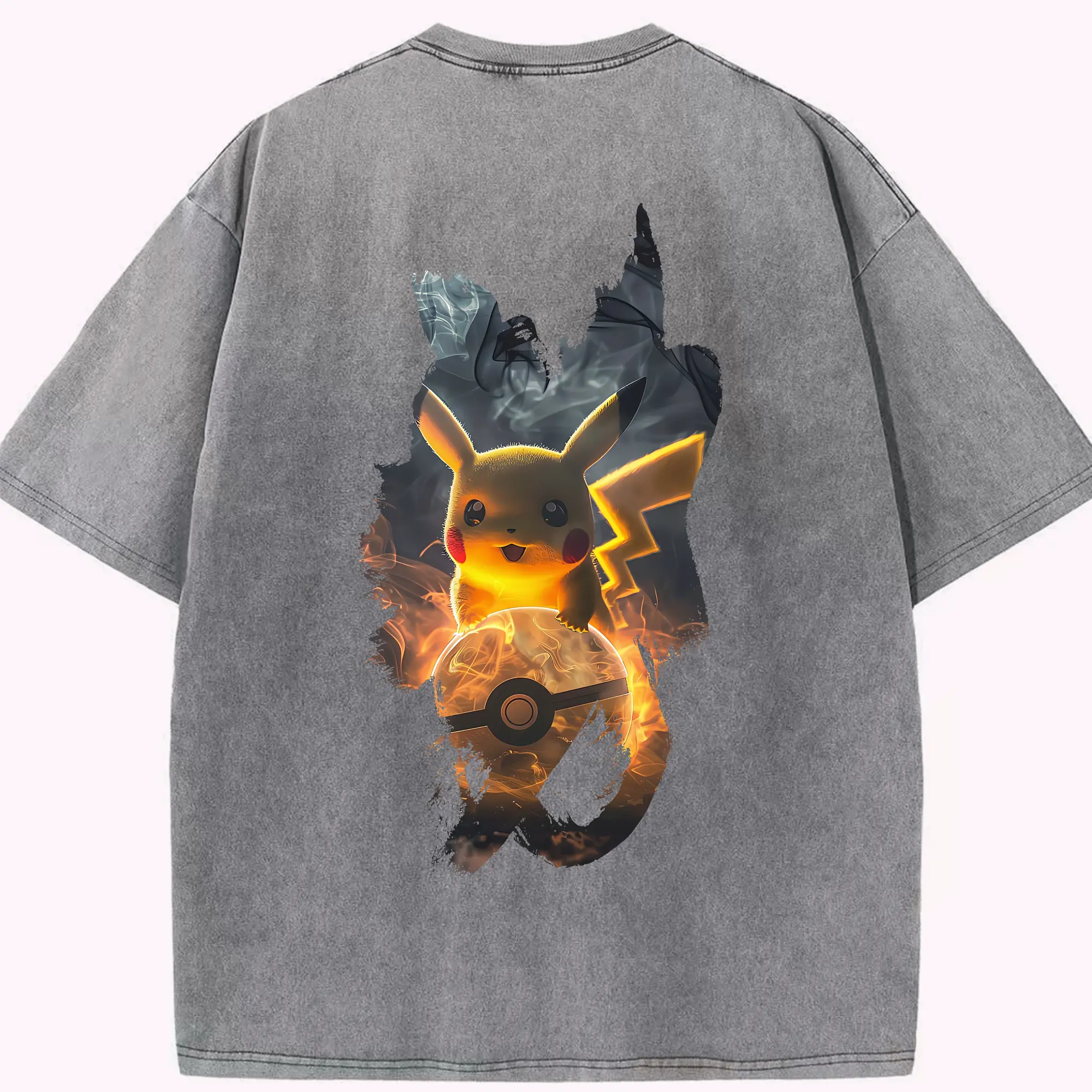 ポケモン グッズ,ピカチュウ - 綿100% ヴィンテージ風 半袖Tシャツ ・ フロントプリント ・ 柔らか肌触り ・ 通気性 快適 ・ スポーツ カジュアル 外出用