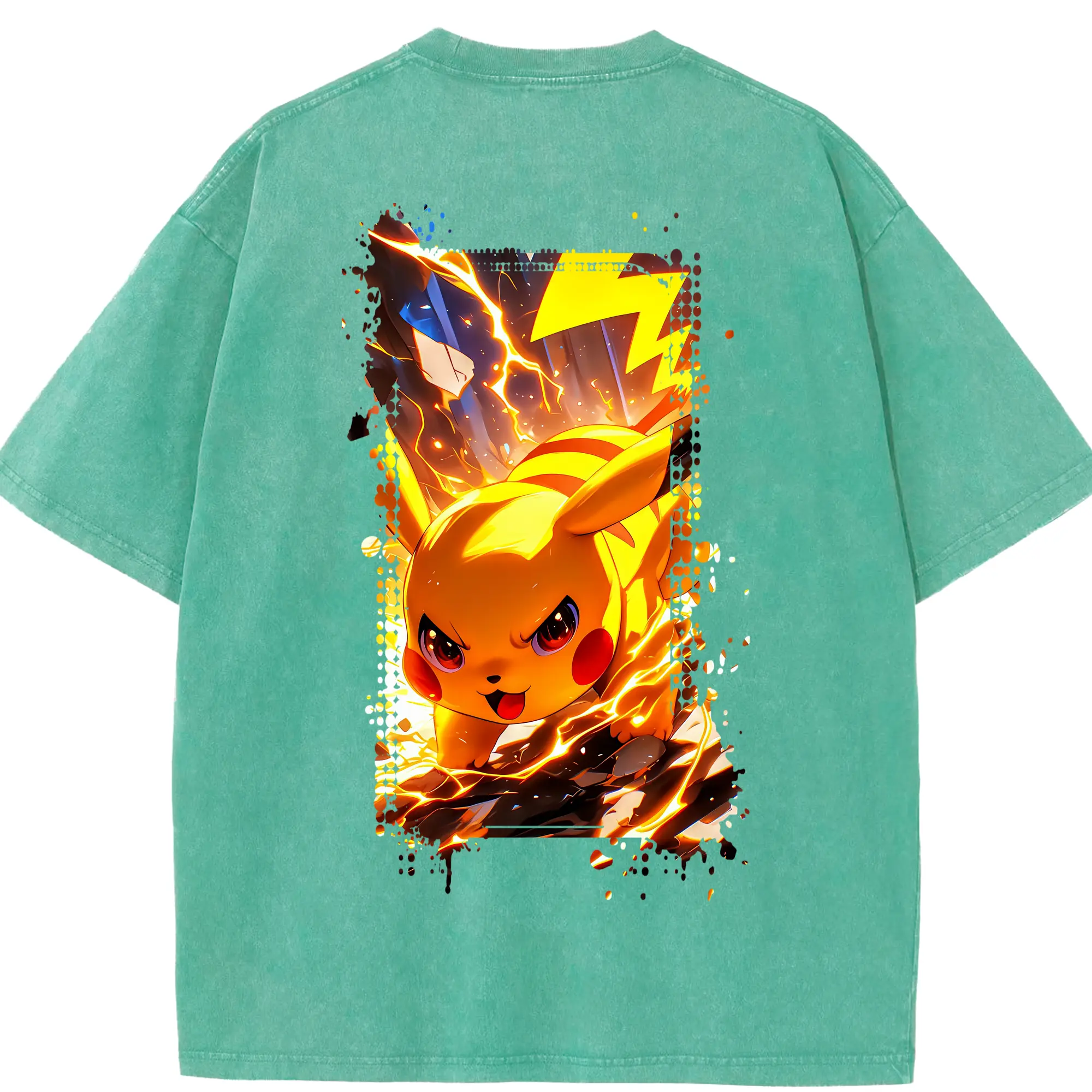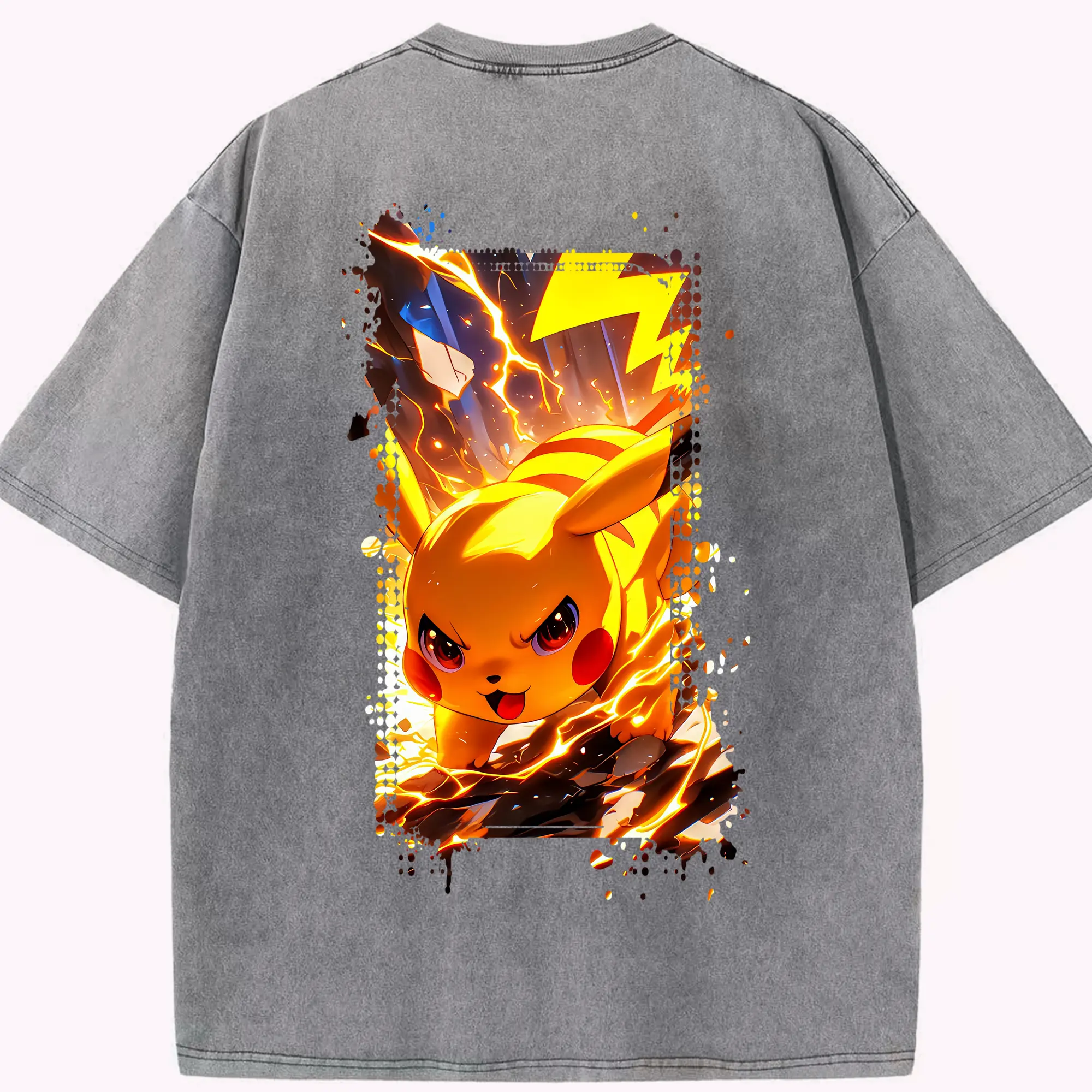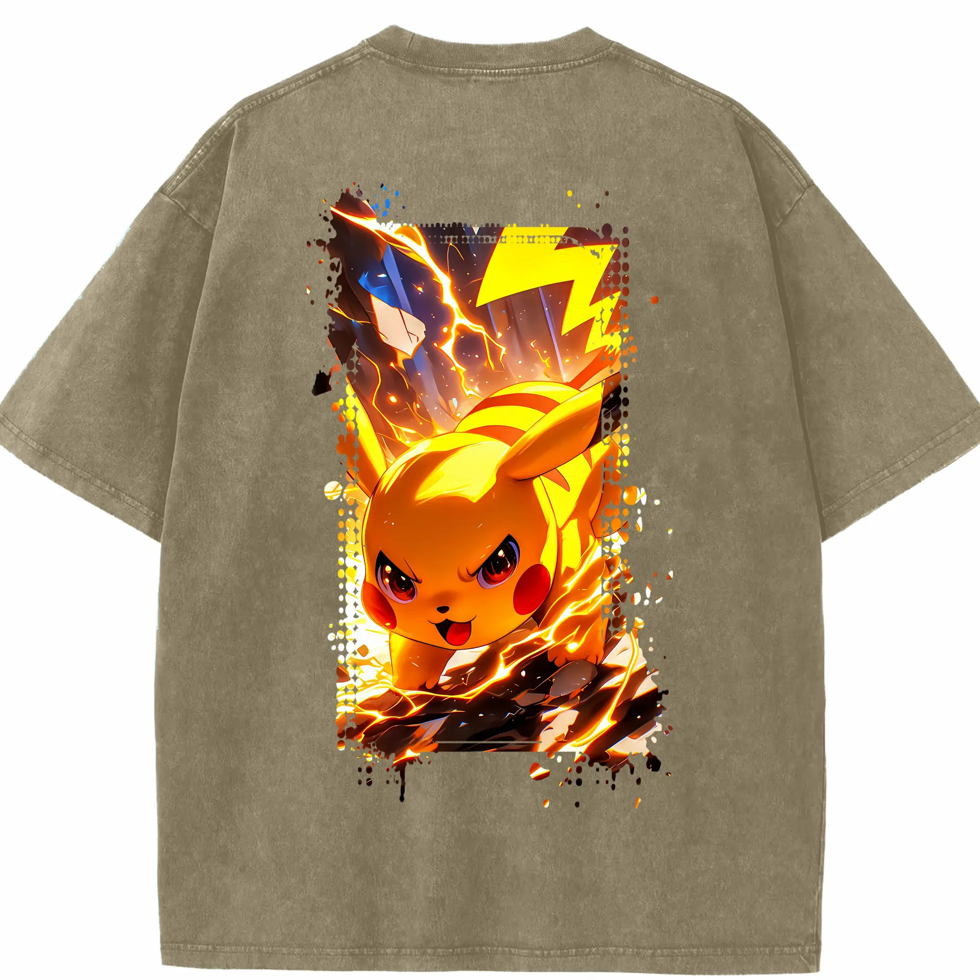 ポケモン グッズ,ピカチュウ - 綿100% ヴィンテージ風 半袖Tシャツ ・ フロントプリント ・ 柔らか肌触り ・ 通気性 快適 ・ スポーツ カジュアル 外出用