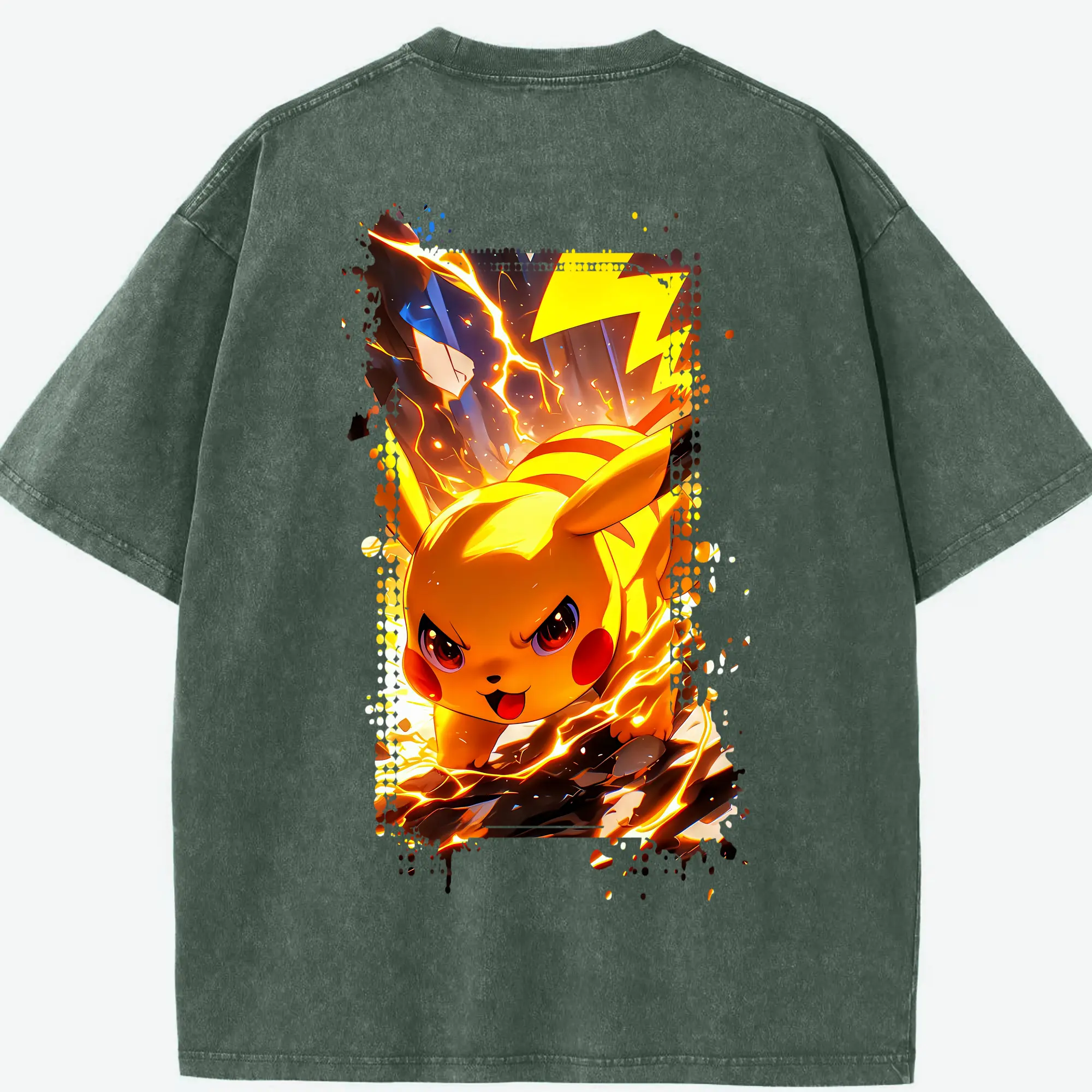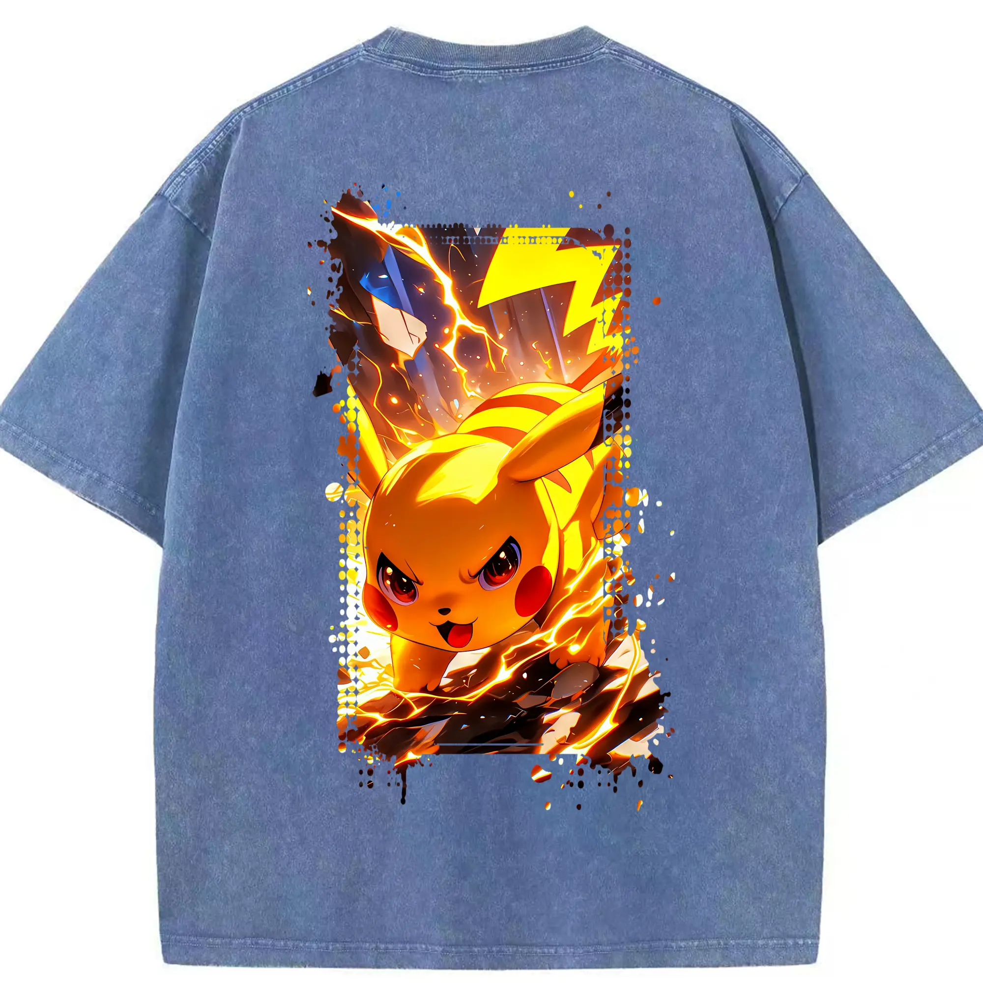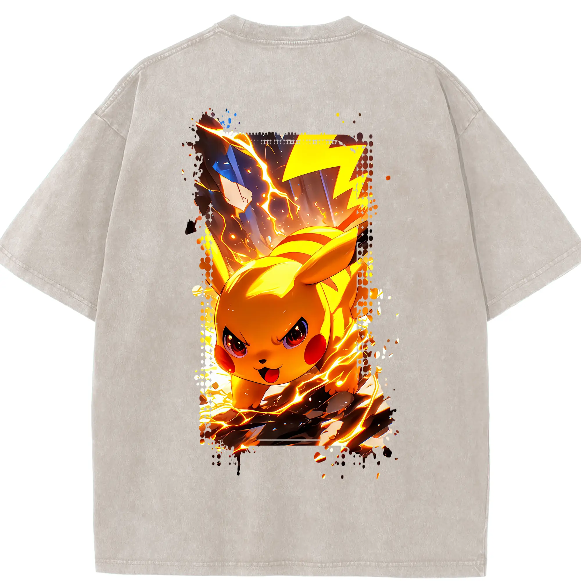 ポケモン グッズ,ピカチュウ - 綿100% ヴィンテージ風 半袖Tシャツ ・ フロントプリント ・ 柔らか肌触り ・ 通気性 快適 ・ スポーツ カジュアル 外出用