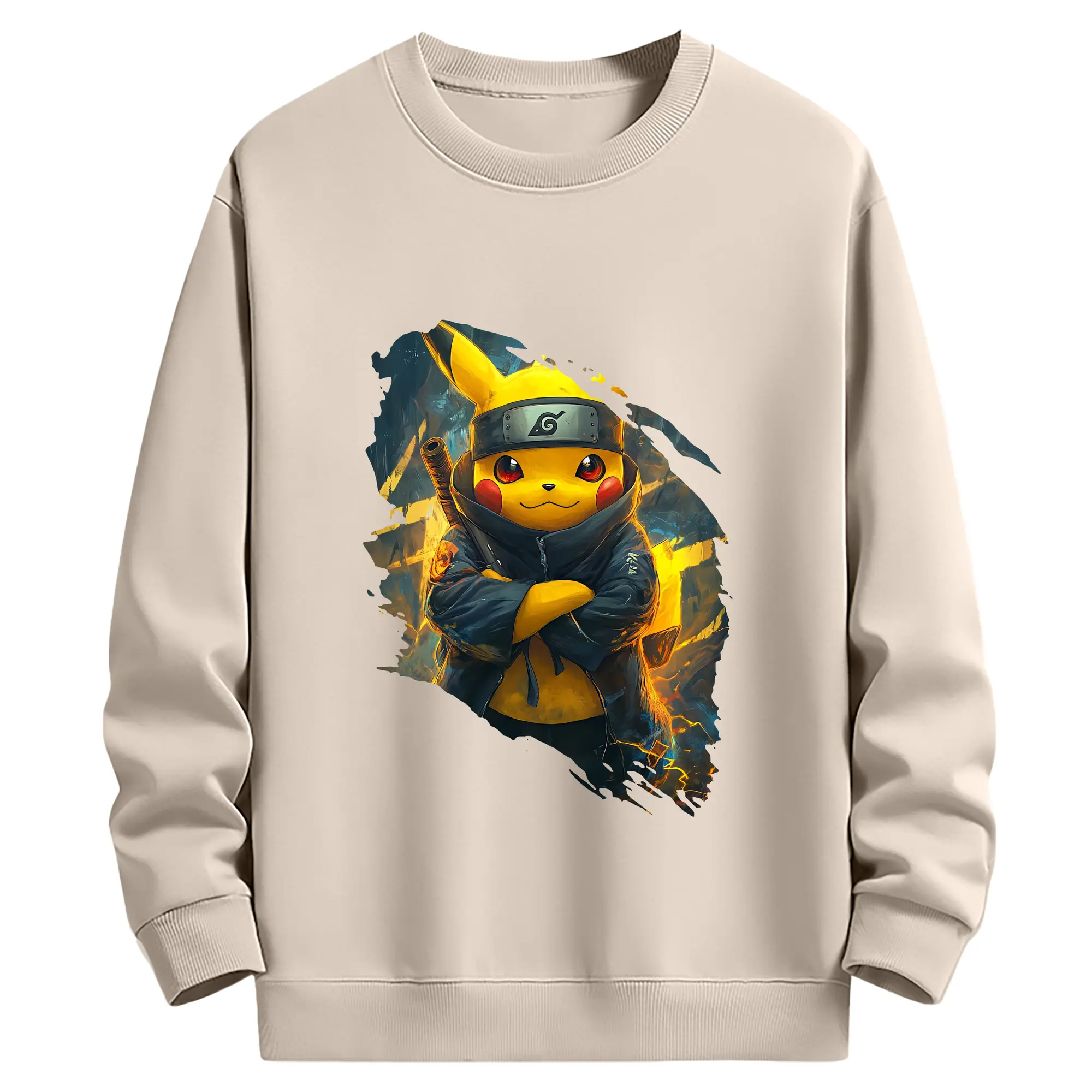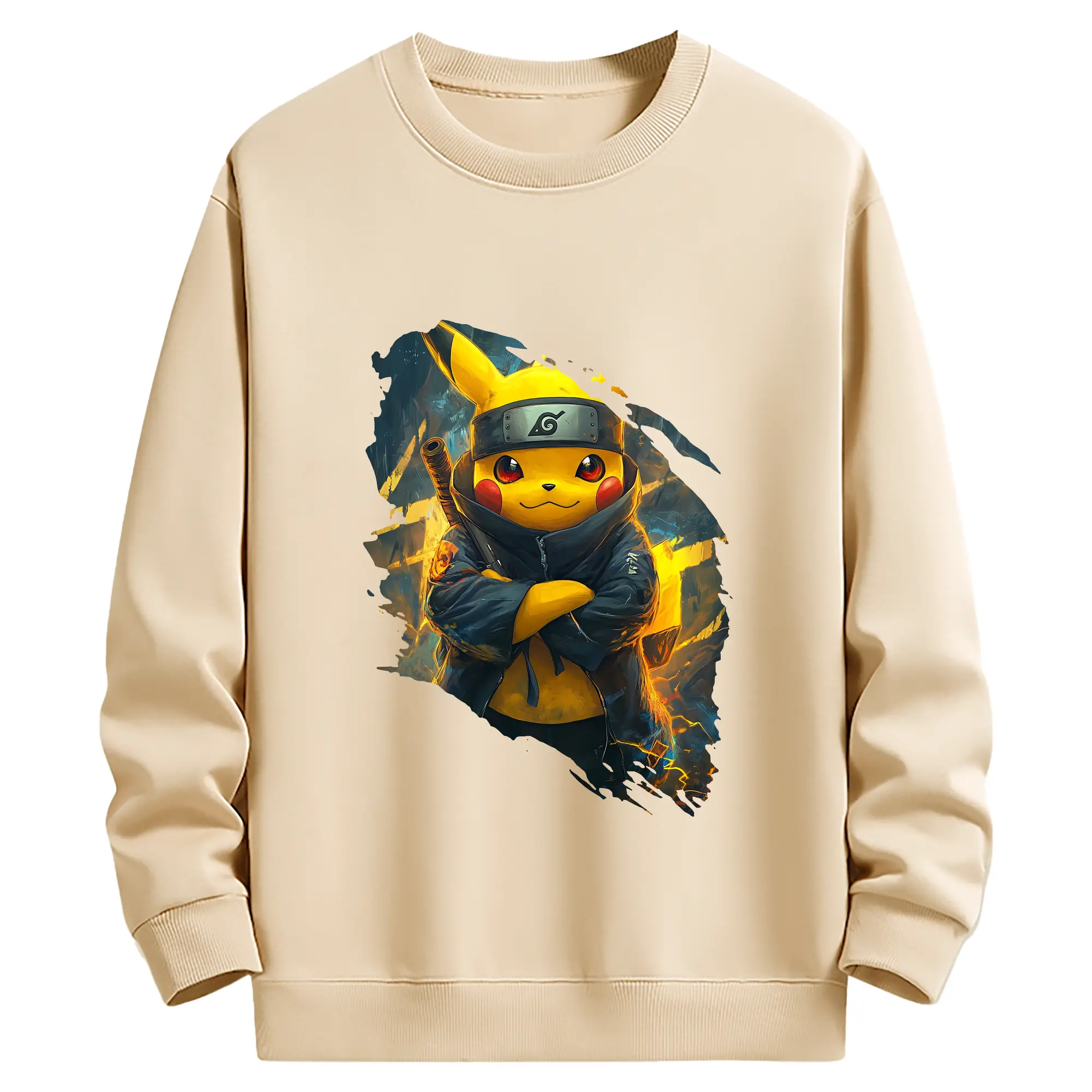 ポケモン グッズ,ピカチュウ - 薄手 クルーネック スウェット 裏毛260g · ポリエステル 春秋向け カジュアル 男女兼用 · トレーナー デイリー スポーツ 散歩に最適