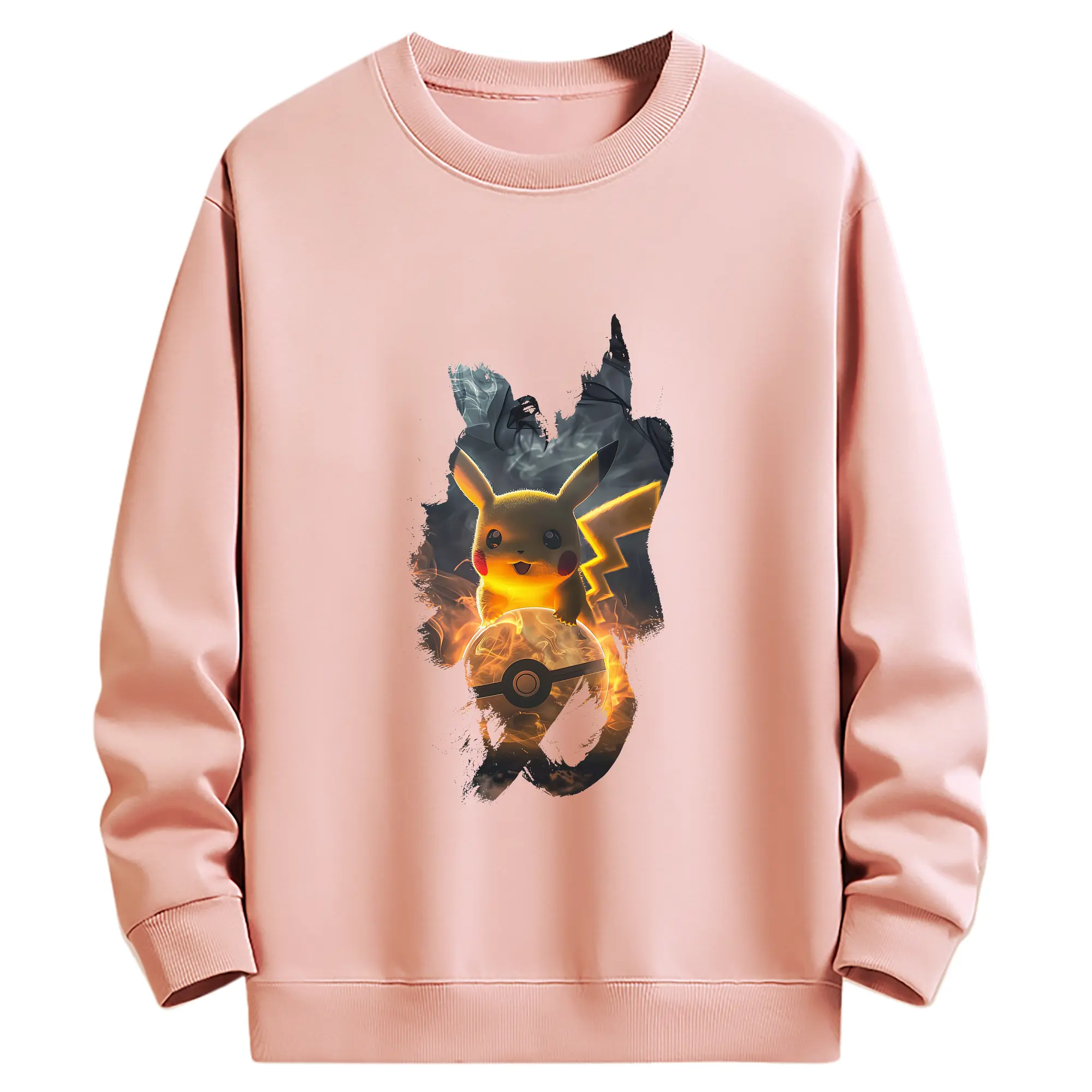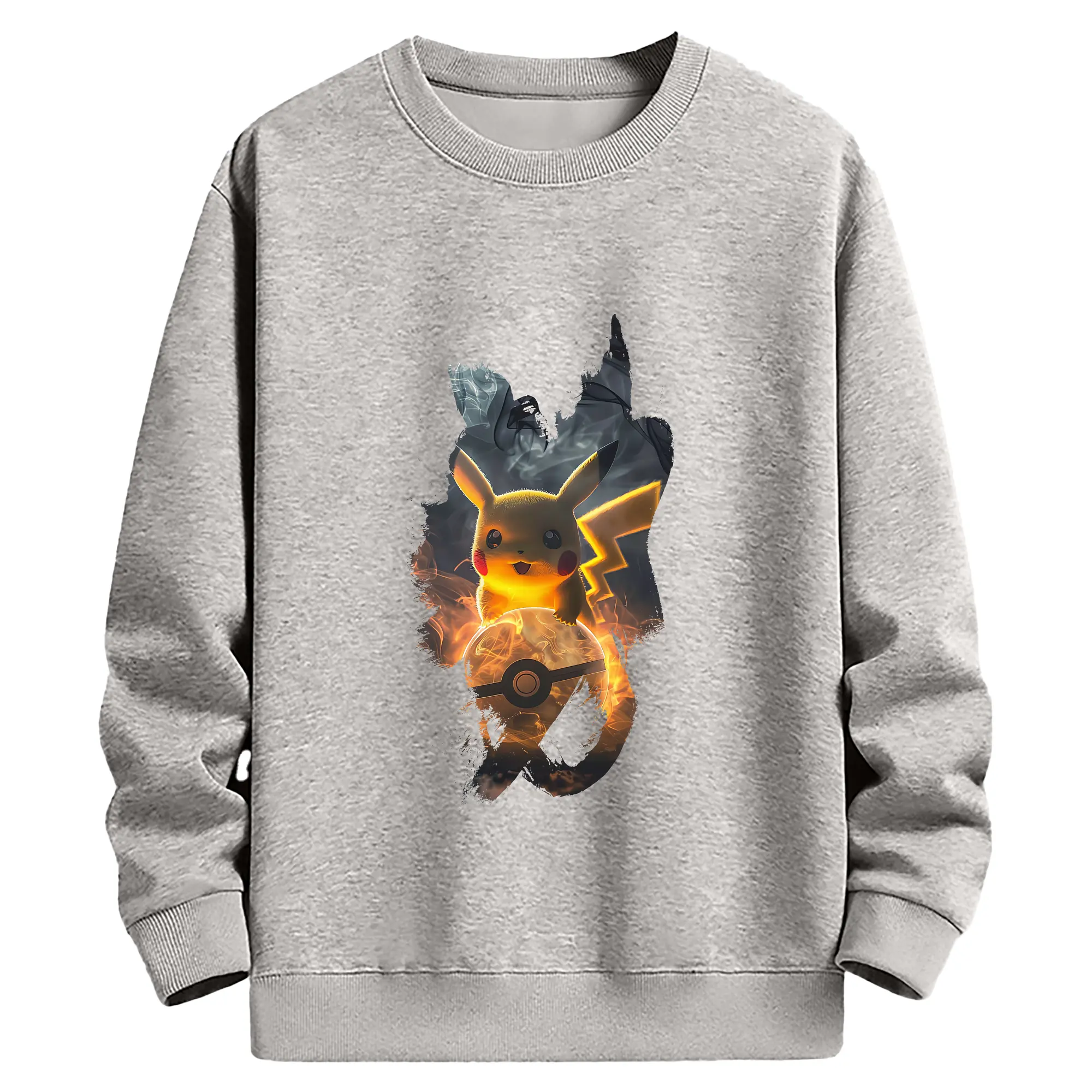 ポケモン グッズ,ピカチュウ - 薄手 クルーネック スウェット 裏毛260g · ポリエステル 春秋向け カジュアル 男女兼用 · トレーナー デイリー スポーツ 散歩に最適