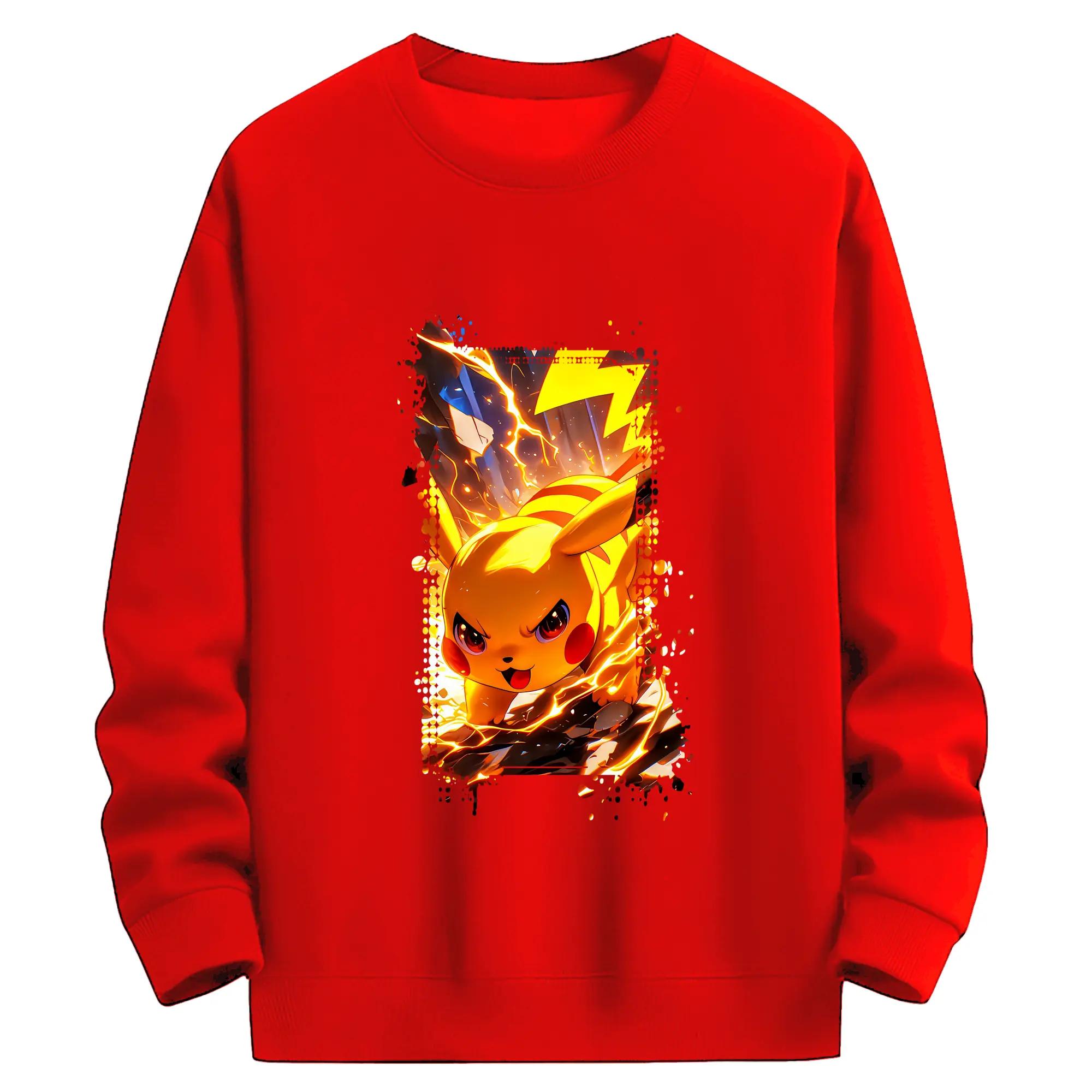 ポケモン グッズ,ピカチュウ - 薄手 クルーネック スウェット 裏毛260g · ポリエステル 春秋向け カジュアル 男女兼用 · トレーナー デイリー スポーツ 散歩に最適