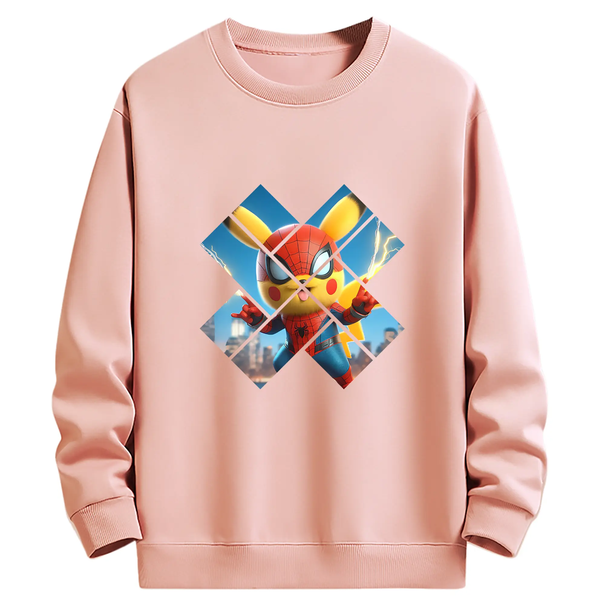 ポケモン グッズ,ピカチュウ - 薄手 クルーネック スウェット 裏毛260g · ポリエステル 春秋向け カジュアル 男女兼用 · トレーナー デイリー スポーツ 散歩に最適