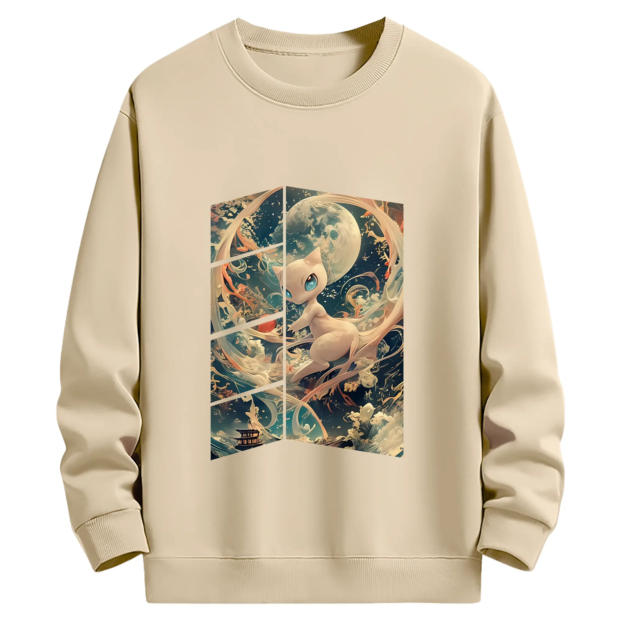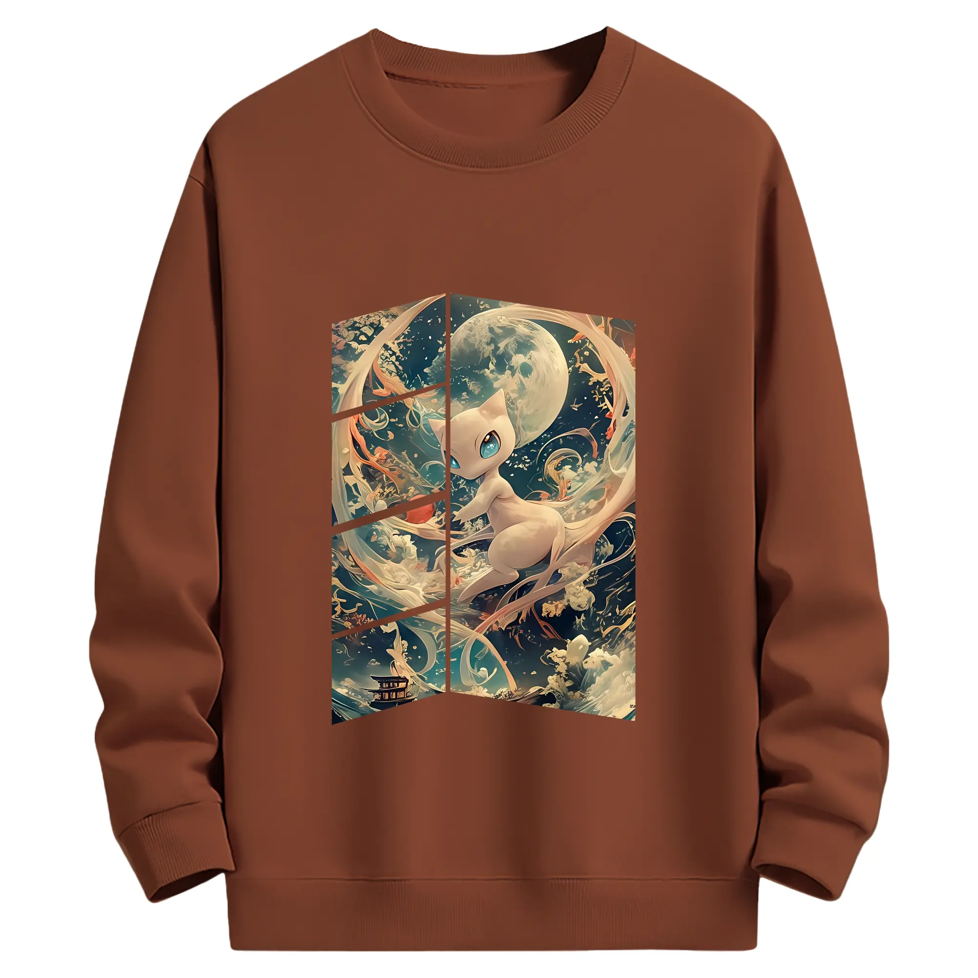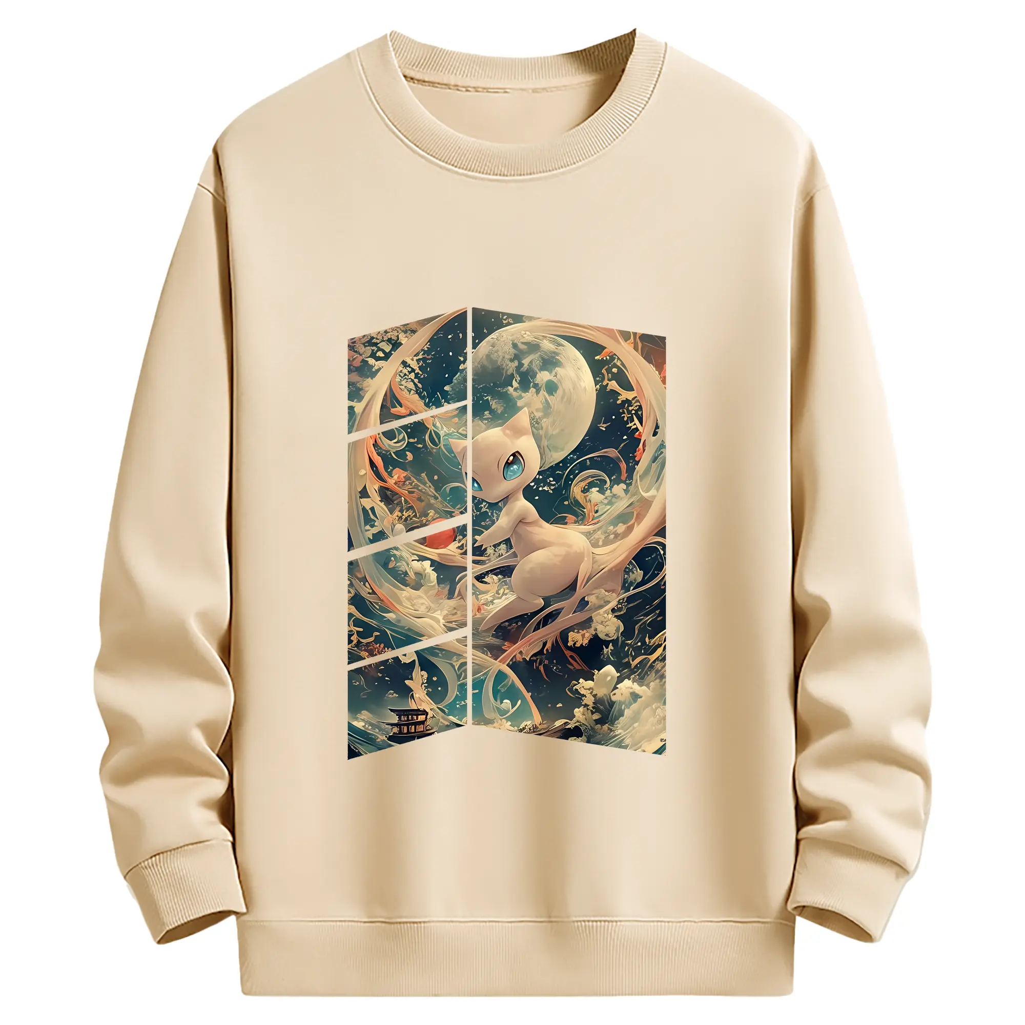 ポケモン グッズ,ミュウ - 薄手 クルーネック スウェット 裏毛260g · ポリエステル 春秋向け カジュアル 男女兼用 · トレーナー デイリー スポーツ 散歩に最適
