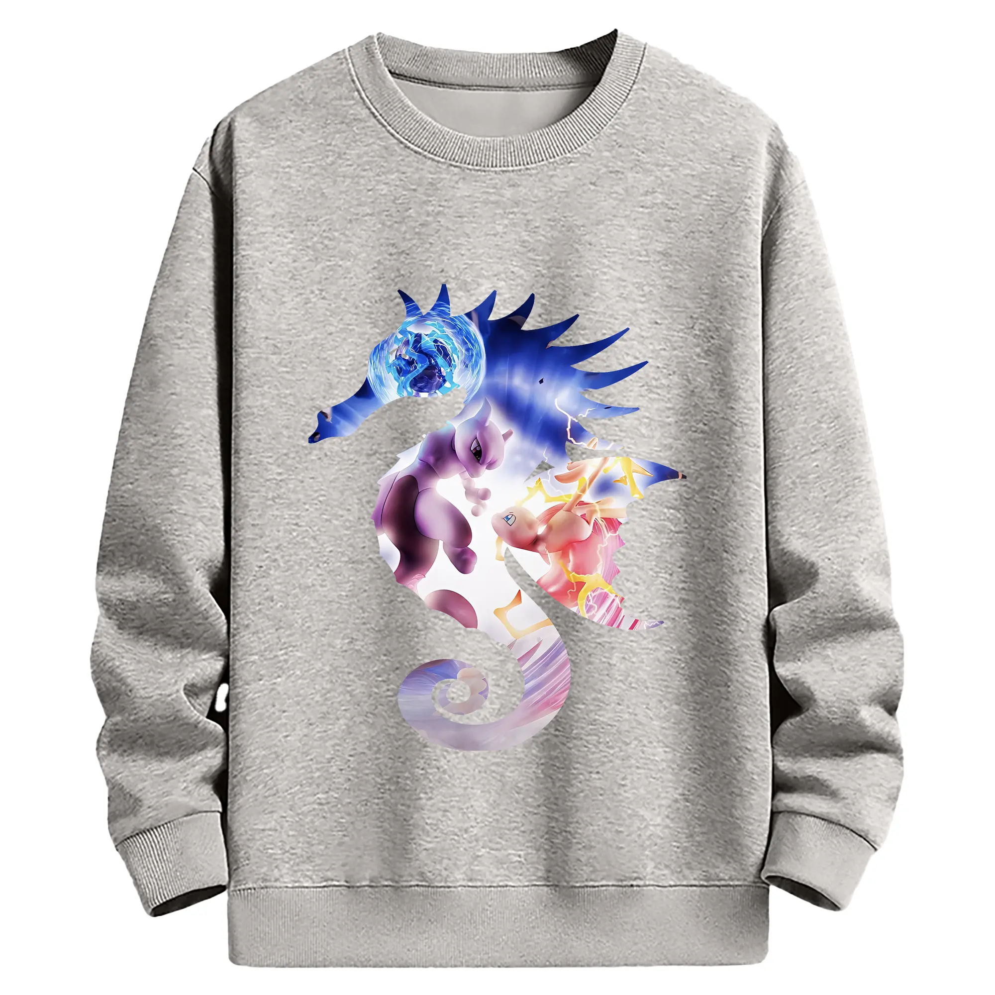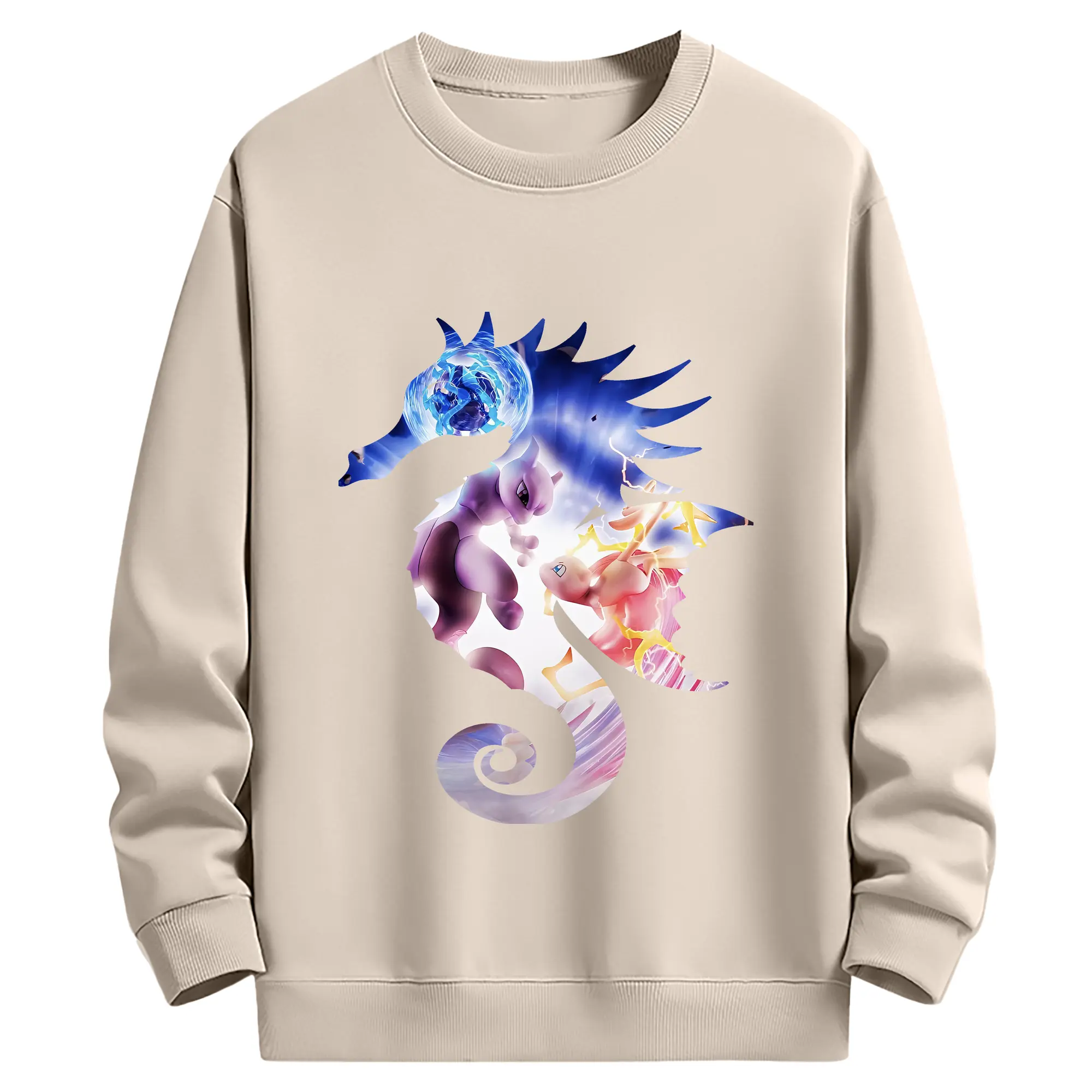 ポケモン グッズ,ミュウ - 薄手 クルーネック スウェット 裏毛260g · ポリエステル 春秋向け カジュアル 男女兼用 · トレーナー デイリー スポーツ 散歩に最適