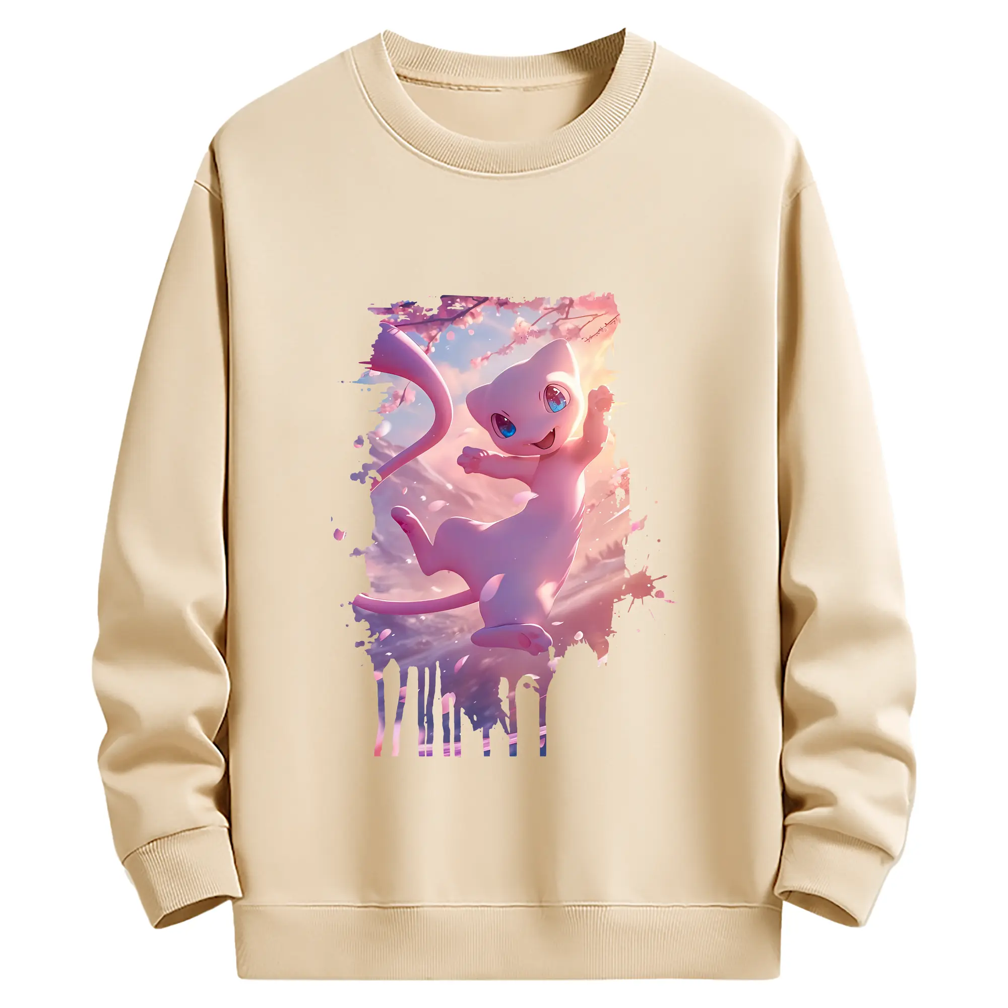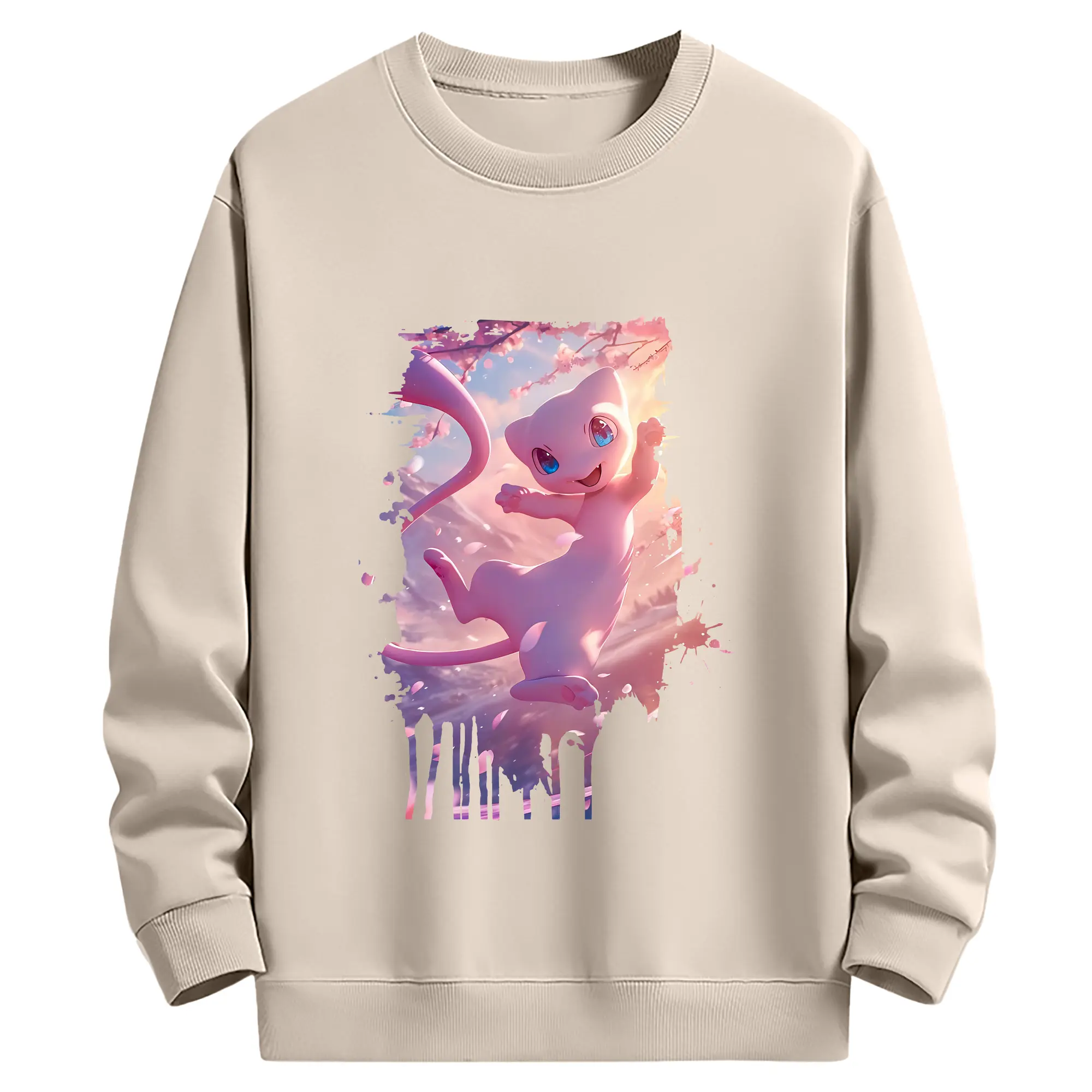 ポケモン グッズ,ミュウ - 薄手 クルーネック スウェット 裏毛260g · ポリエステル 春秋向け カジュアル 男女兼用 · トレーナー デイリー スポーツ 散歩に最適