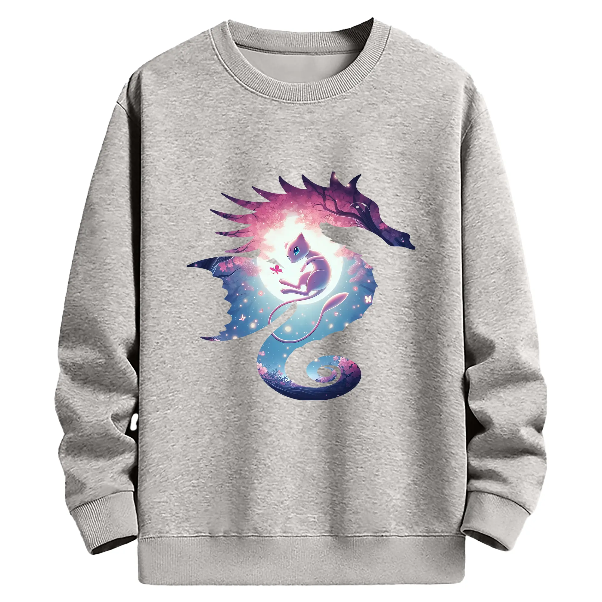 ポケモン グッズ,ミュウ - 薄手 クルーネック スウェット 裏毛260g · ポリエステル 春秋向け カジュアル 男女兼用 · トレーナー デイリー スポーツ 散歩に最適