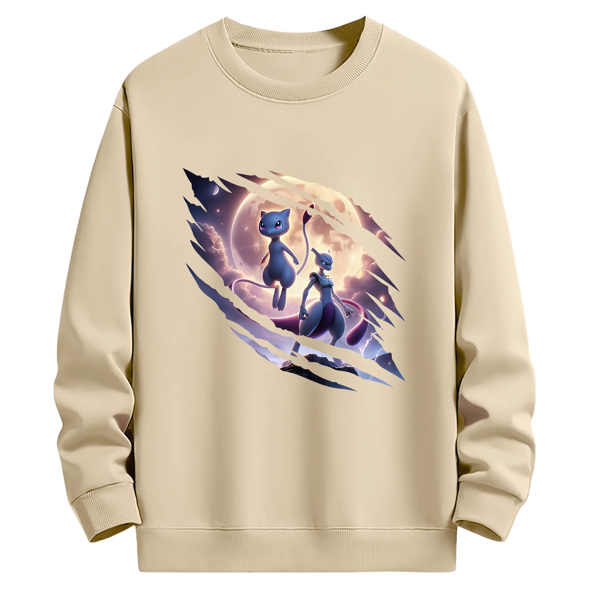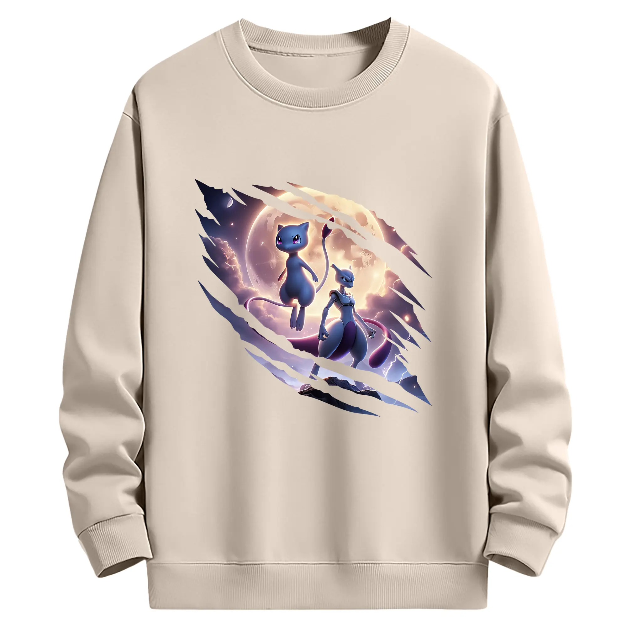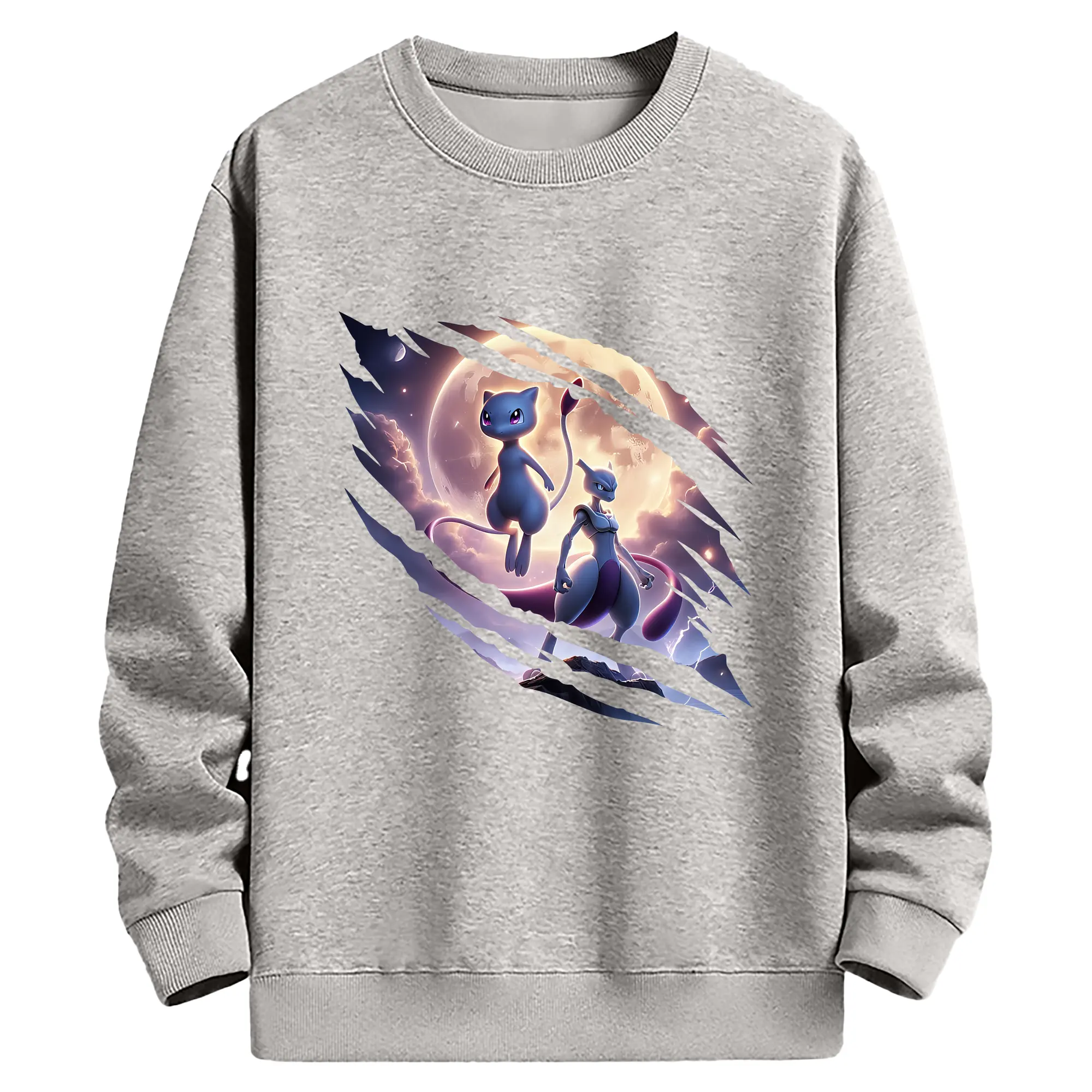 ポケモン グッズ,ミュウ - 薄手 クルーネック スウェット 裏毛260g · ポリエステル 春秋向け カジュアル 男女兼用 · トレーナー デイリー スポーツ 散歩に最適