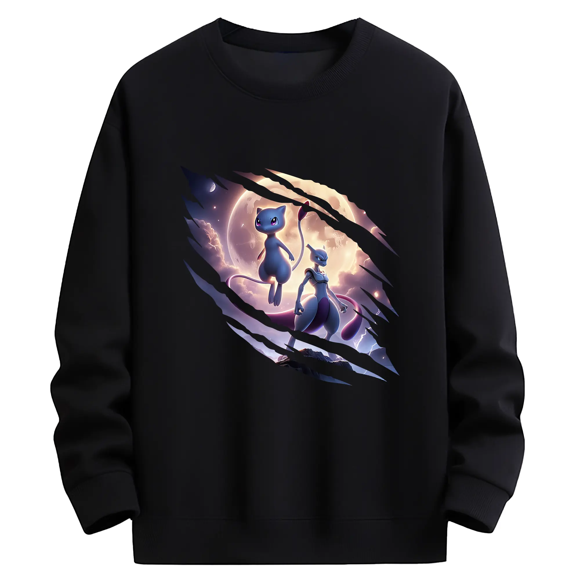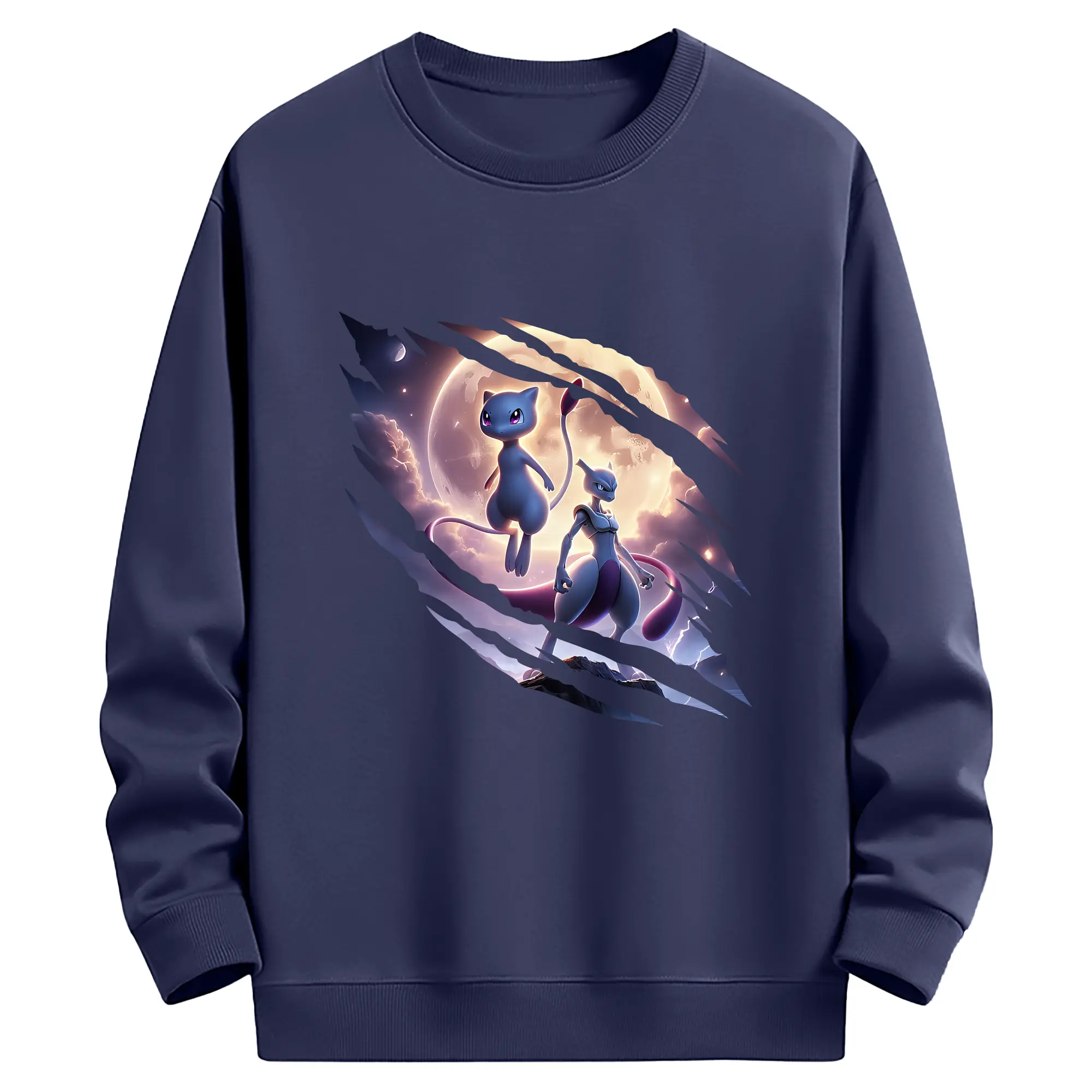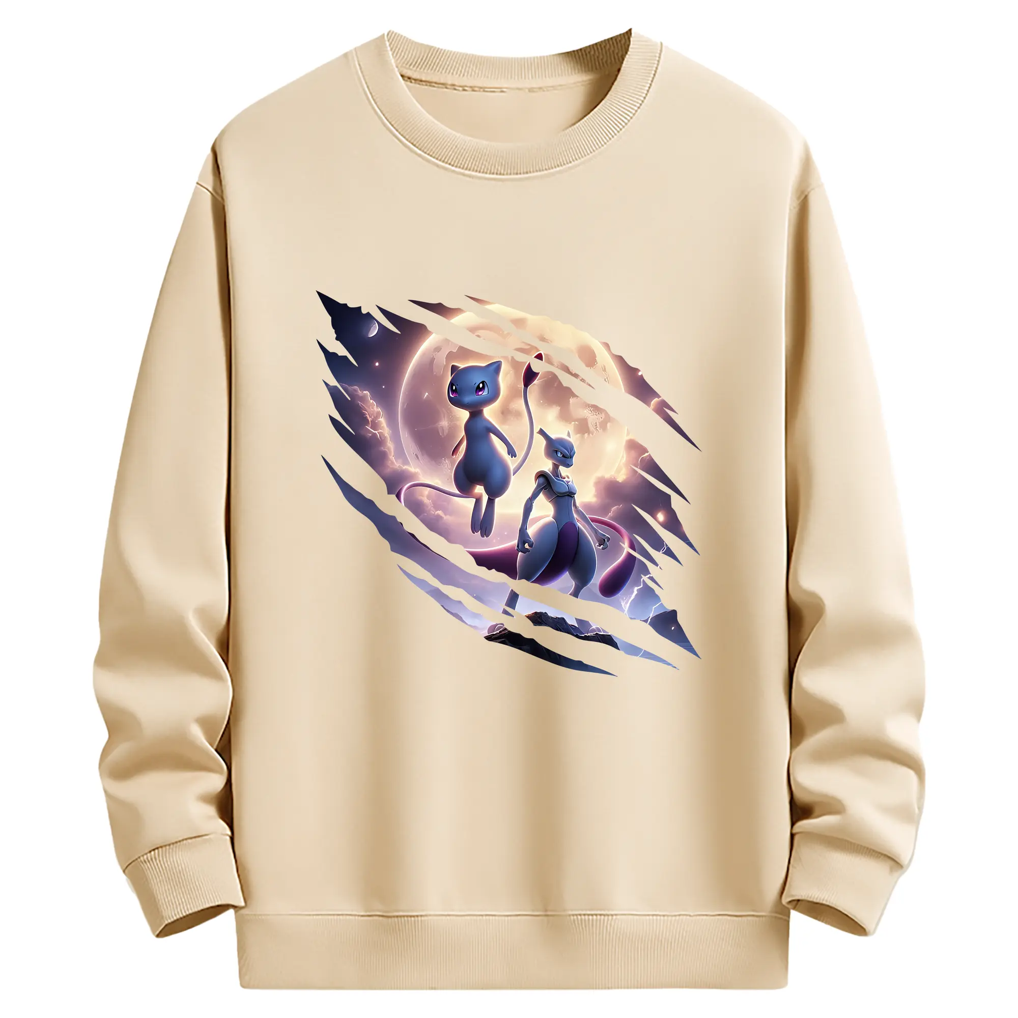 ポケモン グッズ,ミュウ - 薄手 クルーネック スウェット 裏毛260g · ポリエステル 春秋向け カジュアル 男女兼用 · トレーナー デイリー スポーツ 散歩に最適