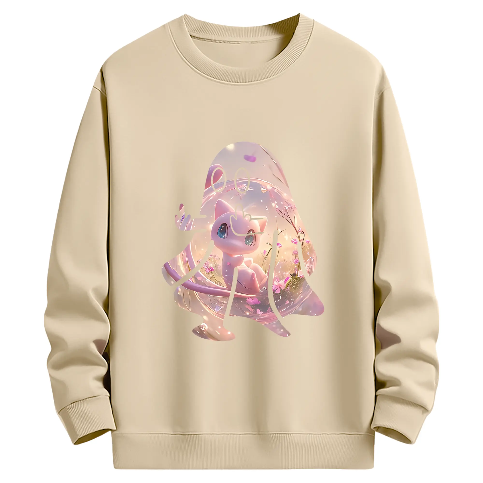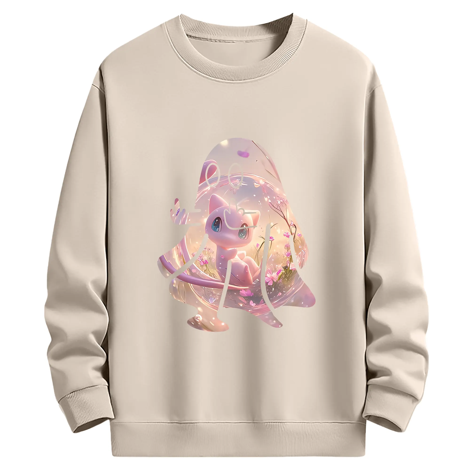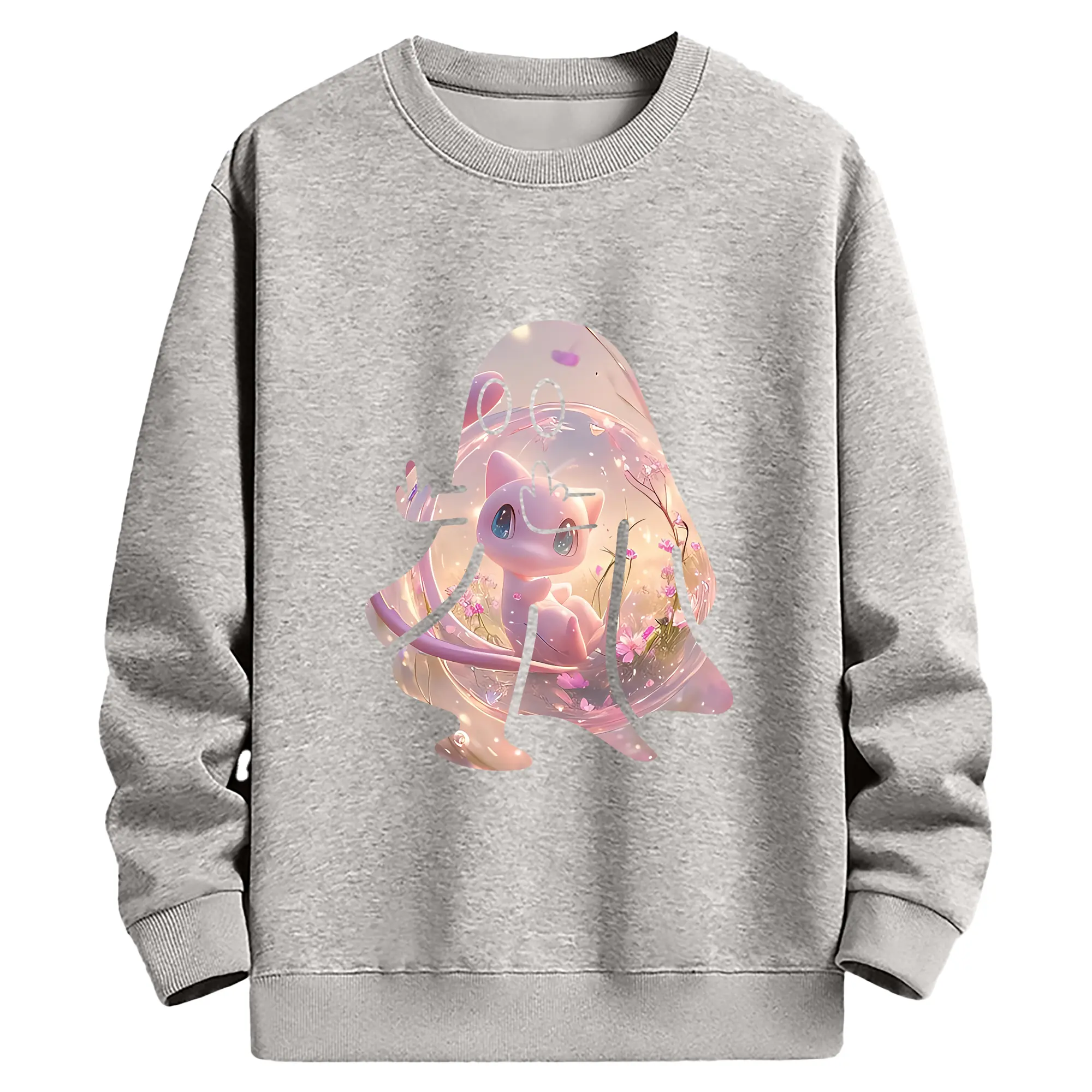 ポケモン グッズ,ミュウ - 薄手 クルーネック スウェット 裏毛260g · ポリエステル 春秋向け カジュアル 男女兼用 · トレーナー デイリー スポーツ 散歩に最適