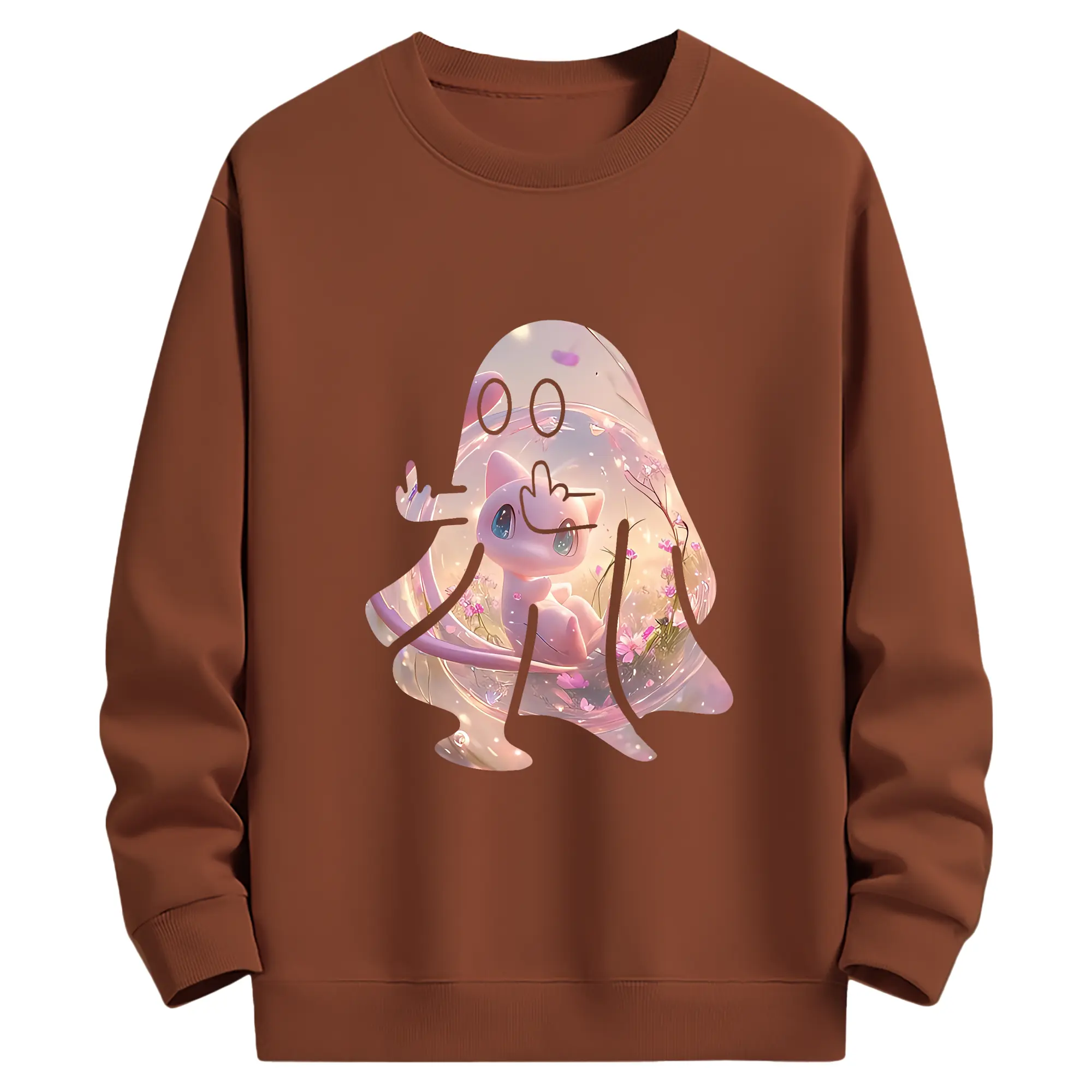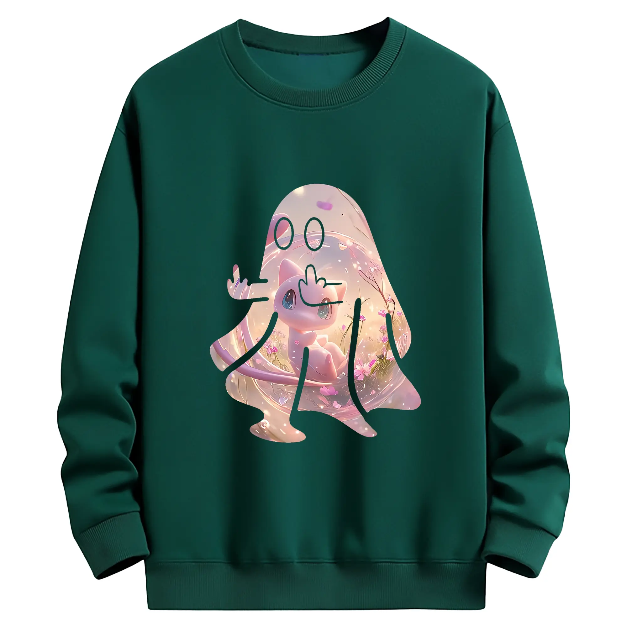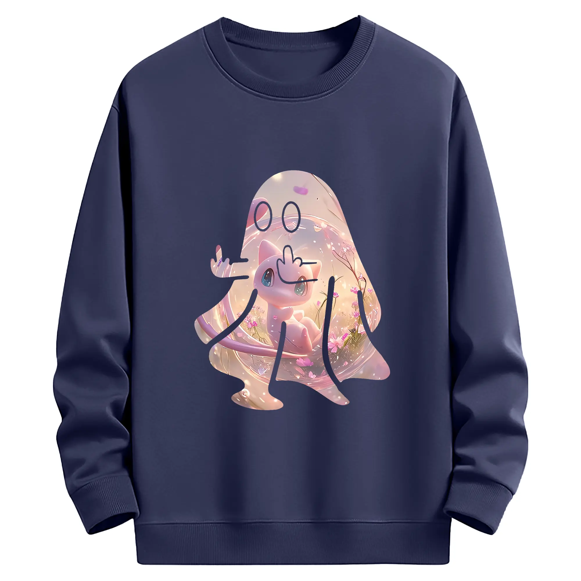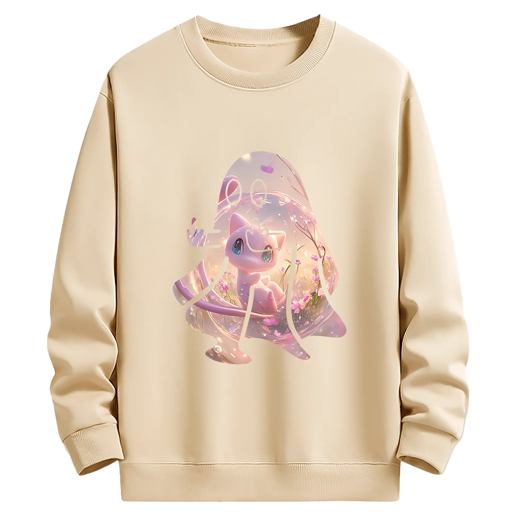 ポケモン グッズ,ミュウ - 薄手 クルーネック スウェット 裏毛260g · ポリエステル 春秋向け カジュアル 男女兼用 · トレーナー デイリー スポーツ 散歩に最適