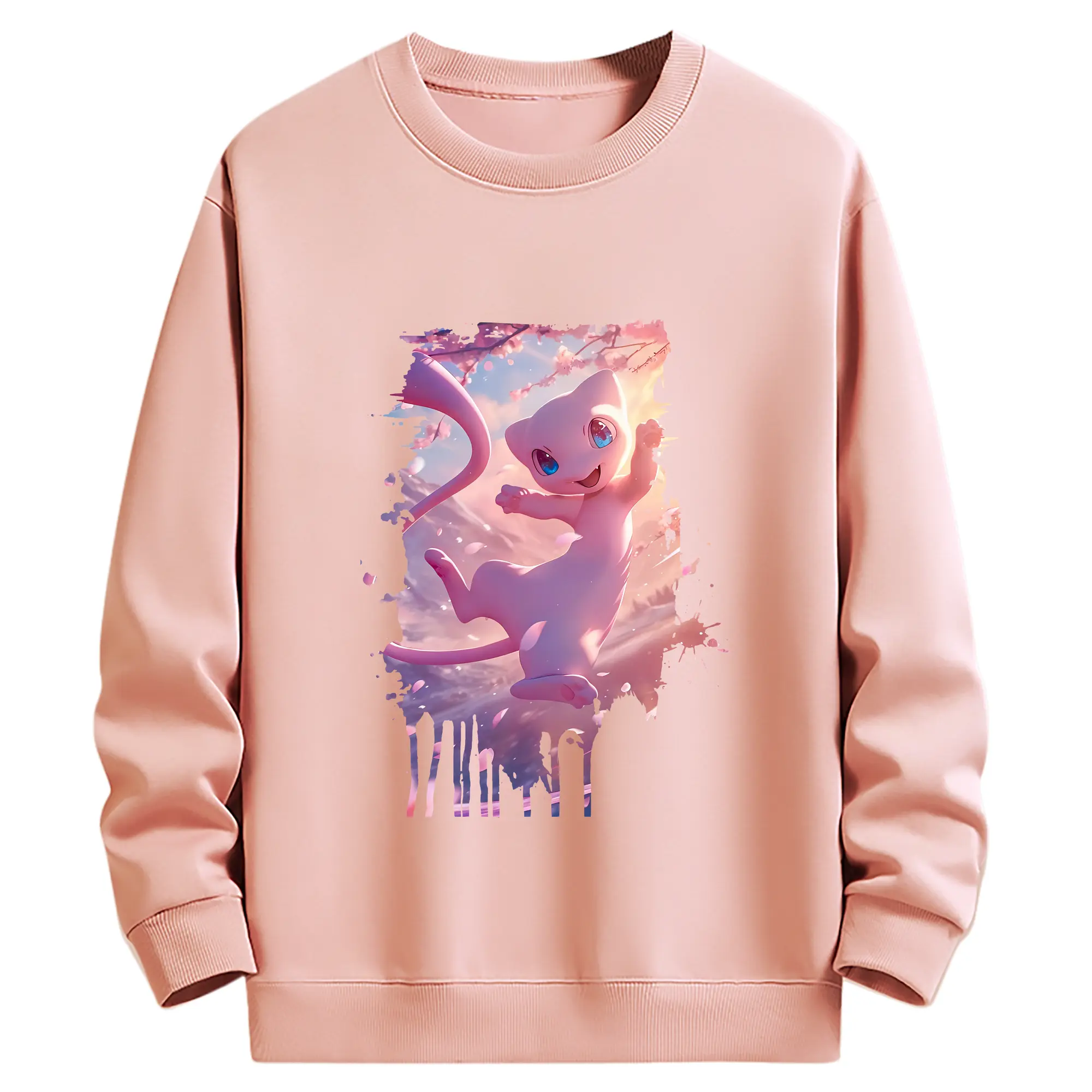 ポケモン グッズ,ミュウ - 薄手 クルーネック スウェット 裏毛260g · ポリエステル 春秋向け カジュアル 男女兼用 · トレーナー デイリー スポーツ 散歩に最適