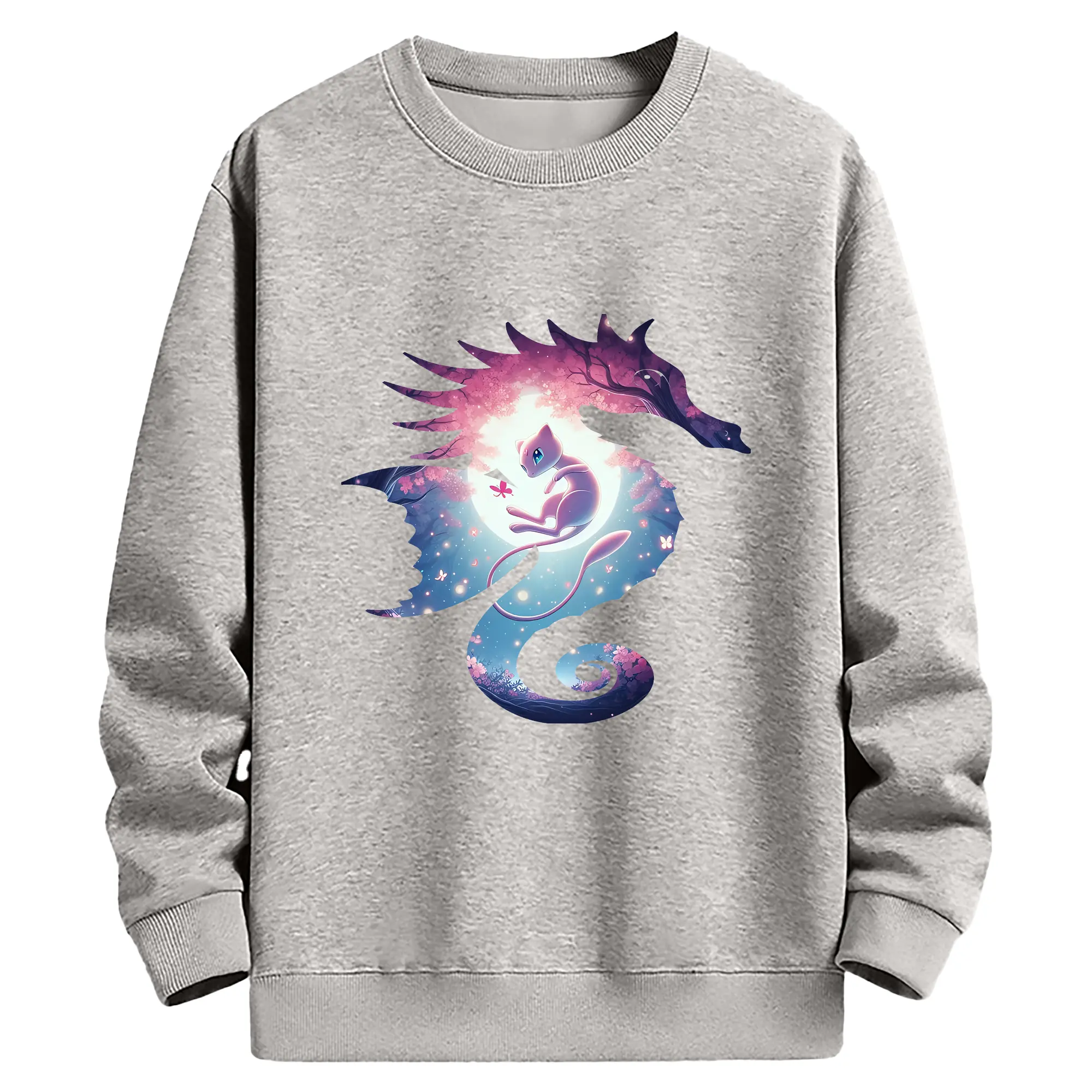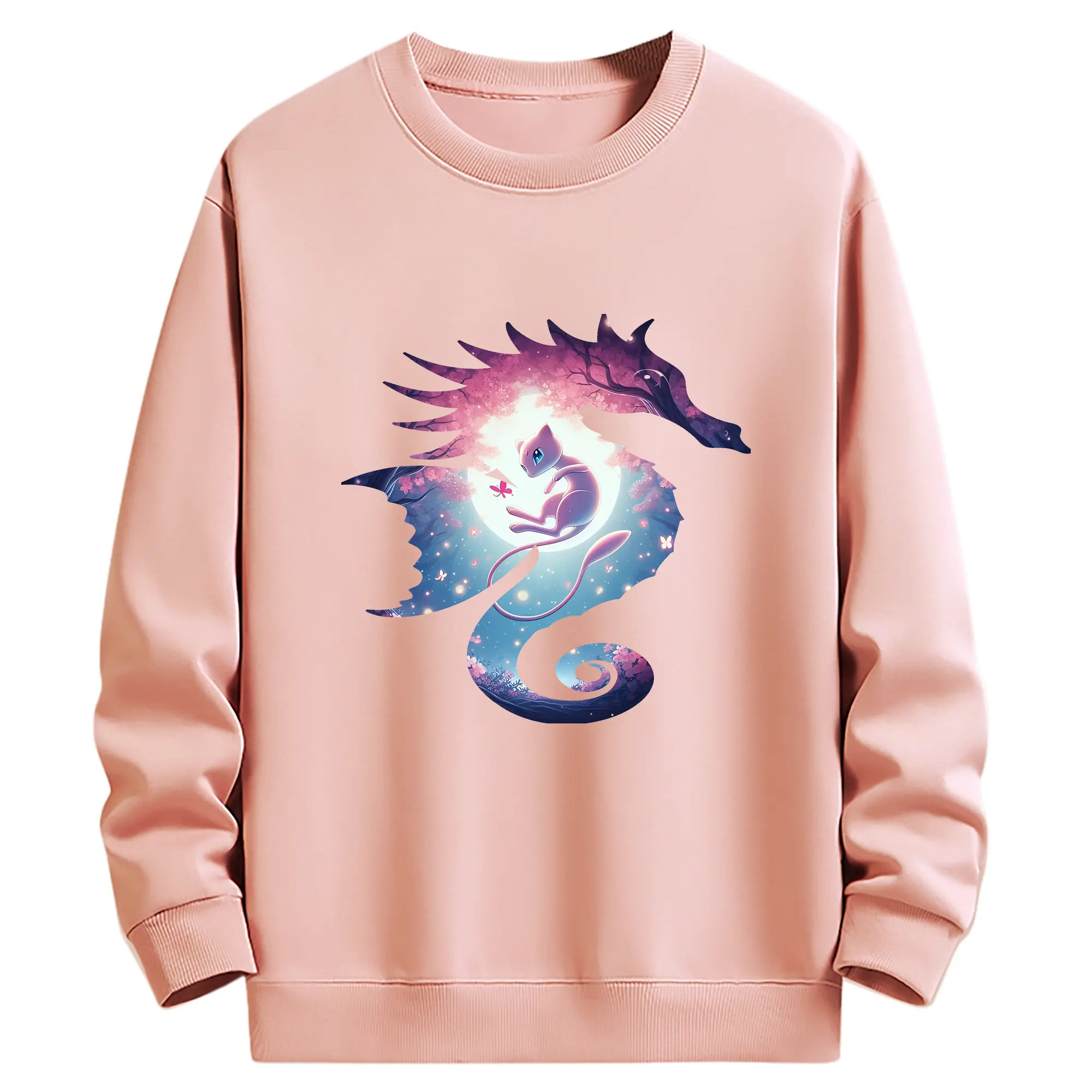 ポケモン グッズ,ミュウ - 薄手 クルーネック スウェット 裏毛260g · ポリエステル 春秋向け カジュアル 男女兼用 · トレーナー デイリー スポーツ 散歩に最適