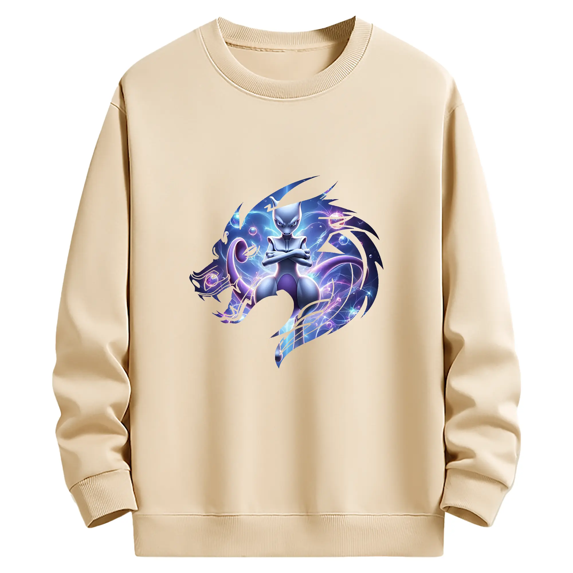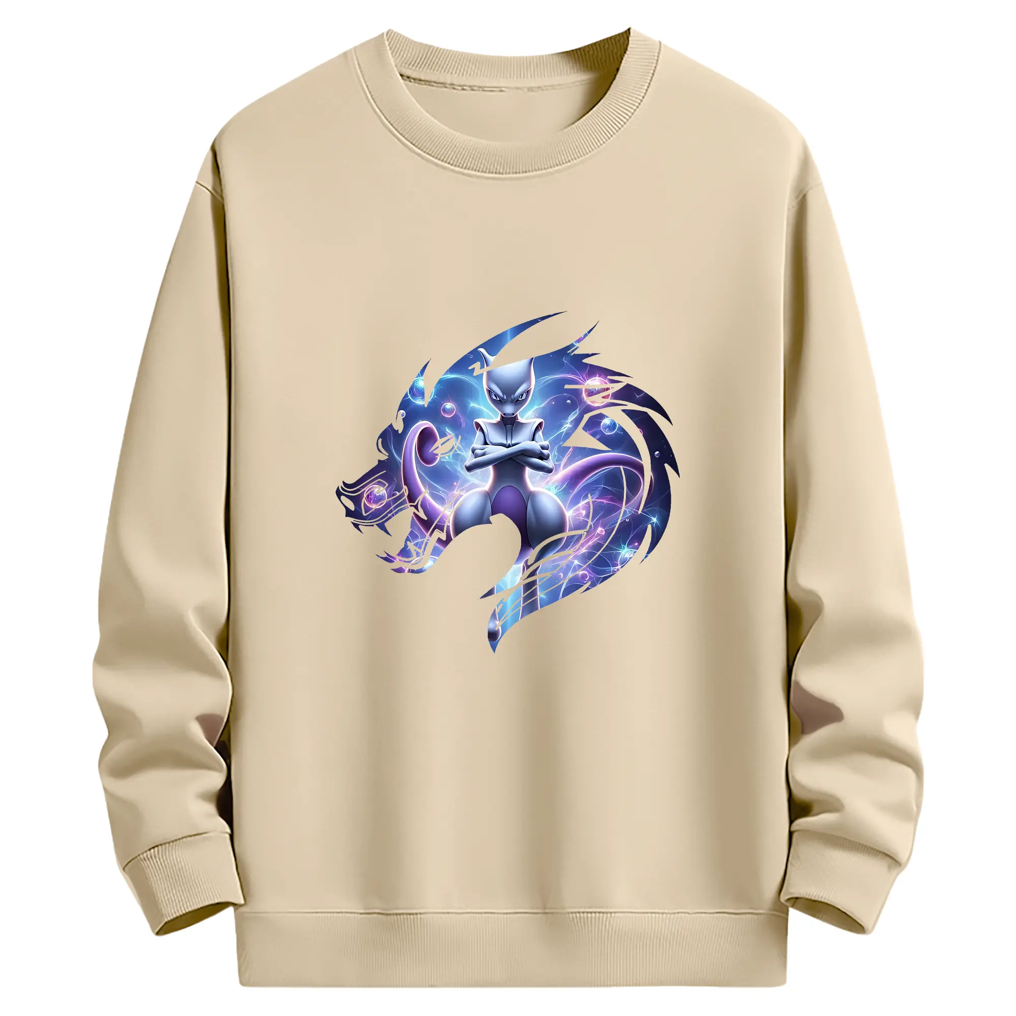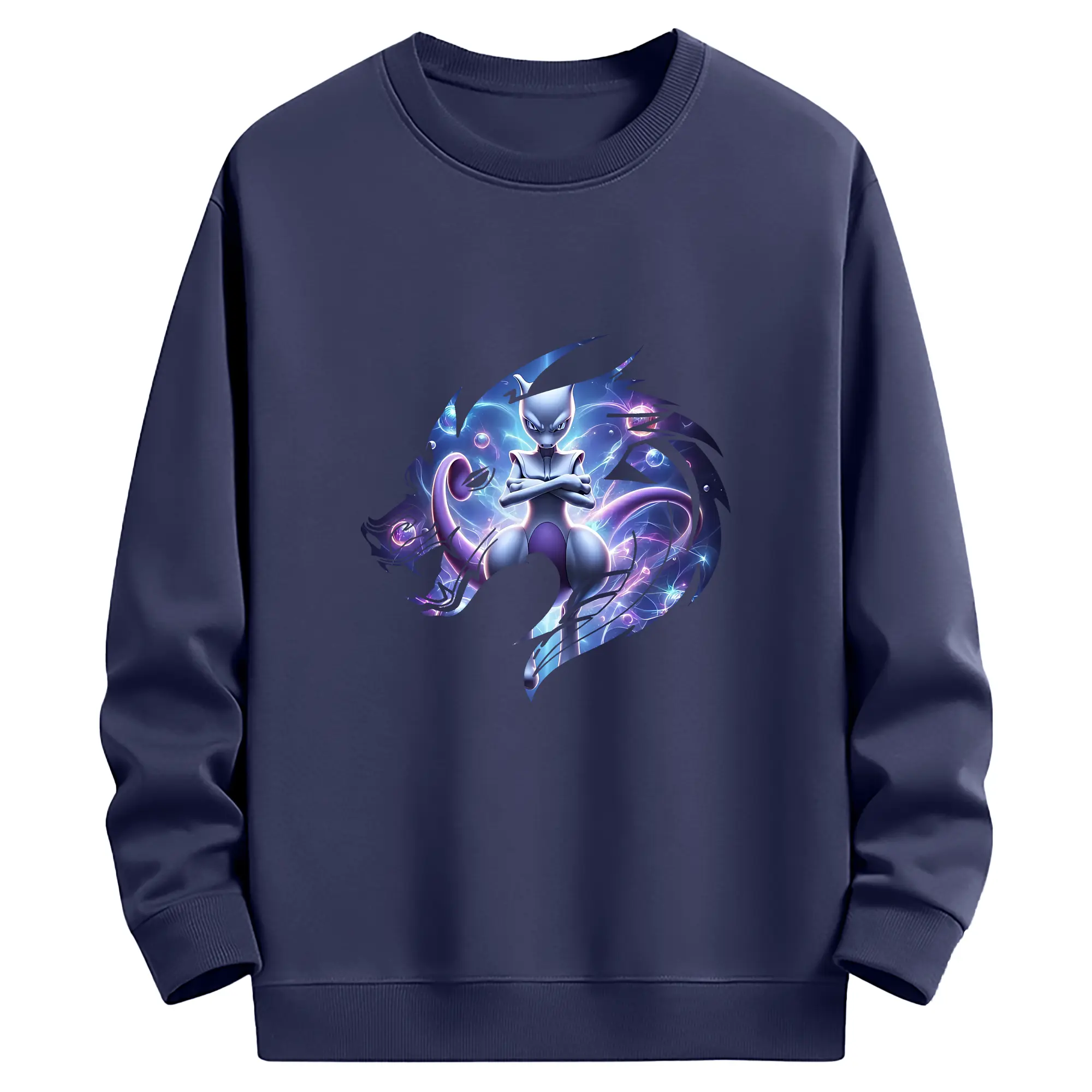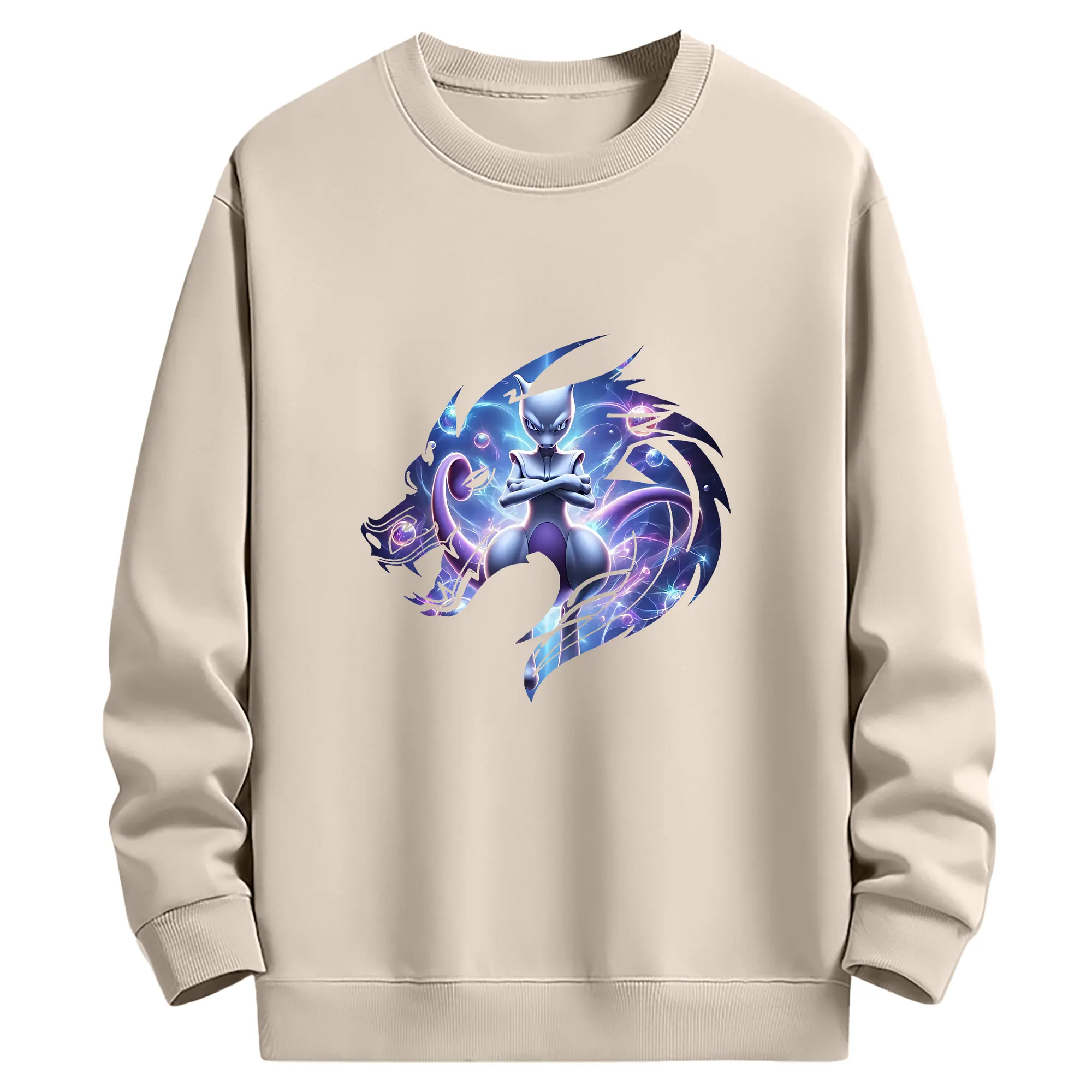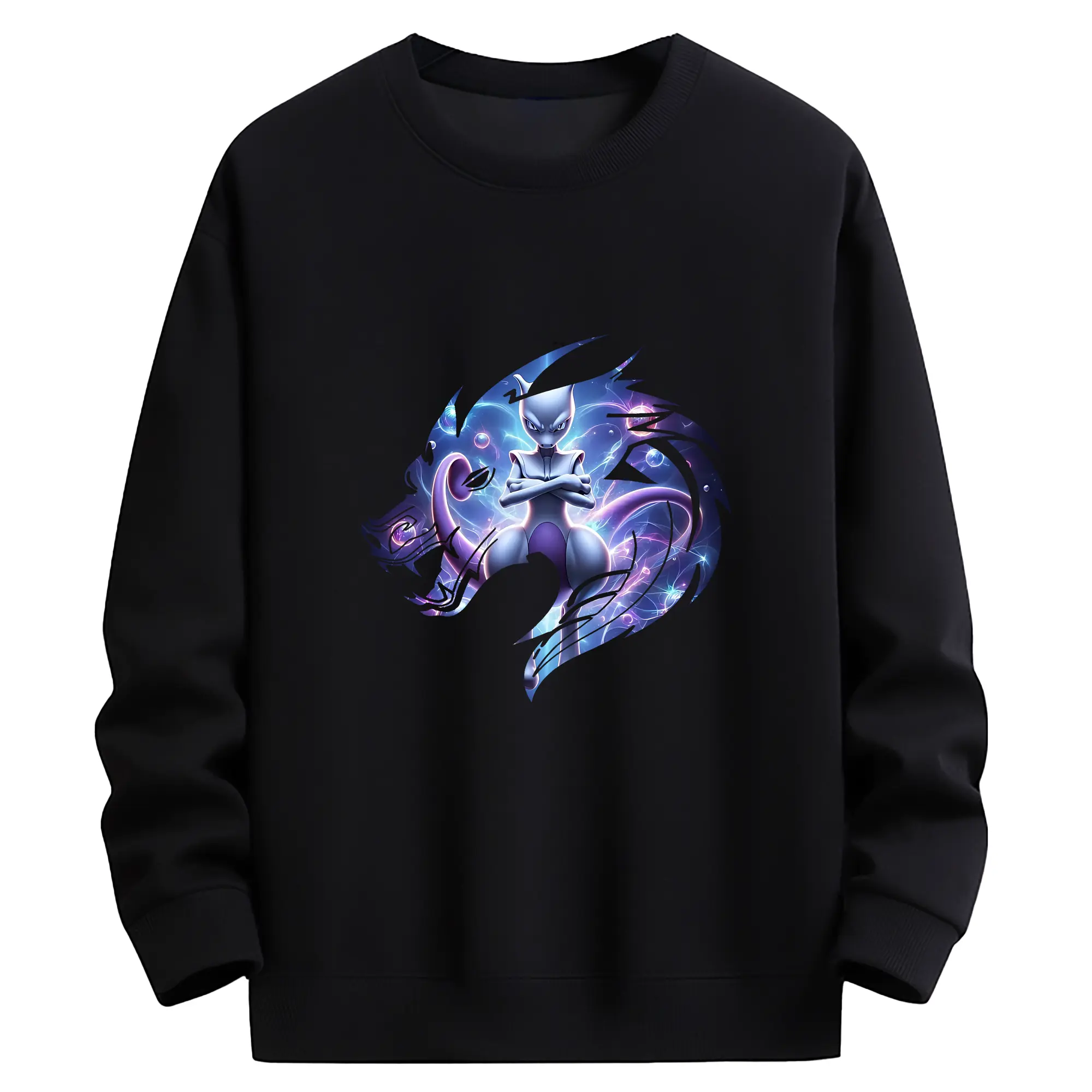 ポケモン グッズ,ミュウツー - 薄手 クルーネック スウェット 裏毛260g · ポリエステル 春秋向け カジュアル 男女兼用 · トレーナー デイリー スポーツ 散歩に最適