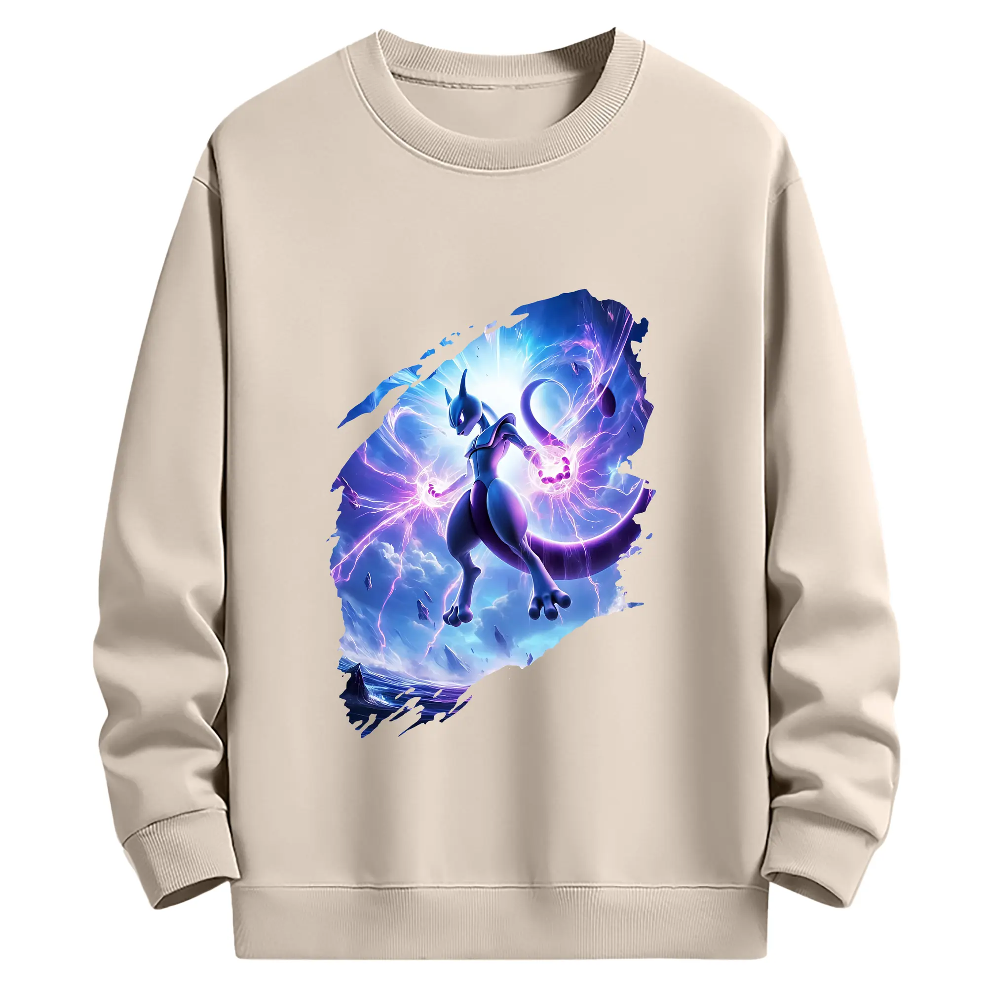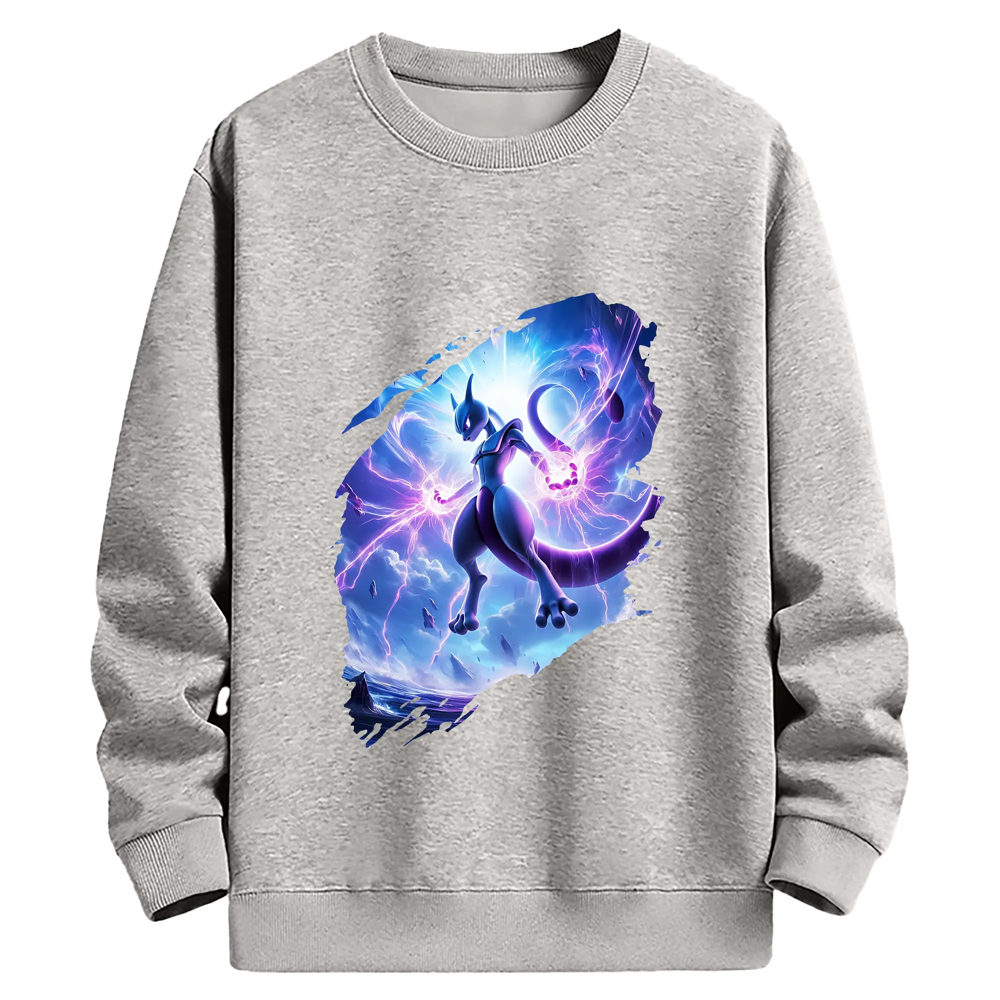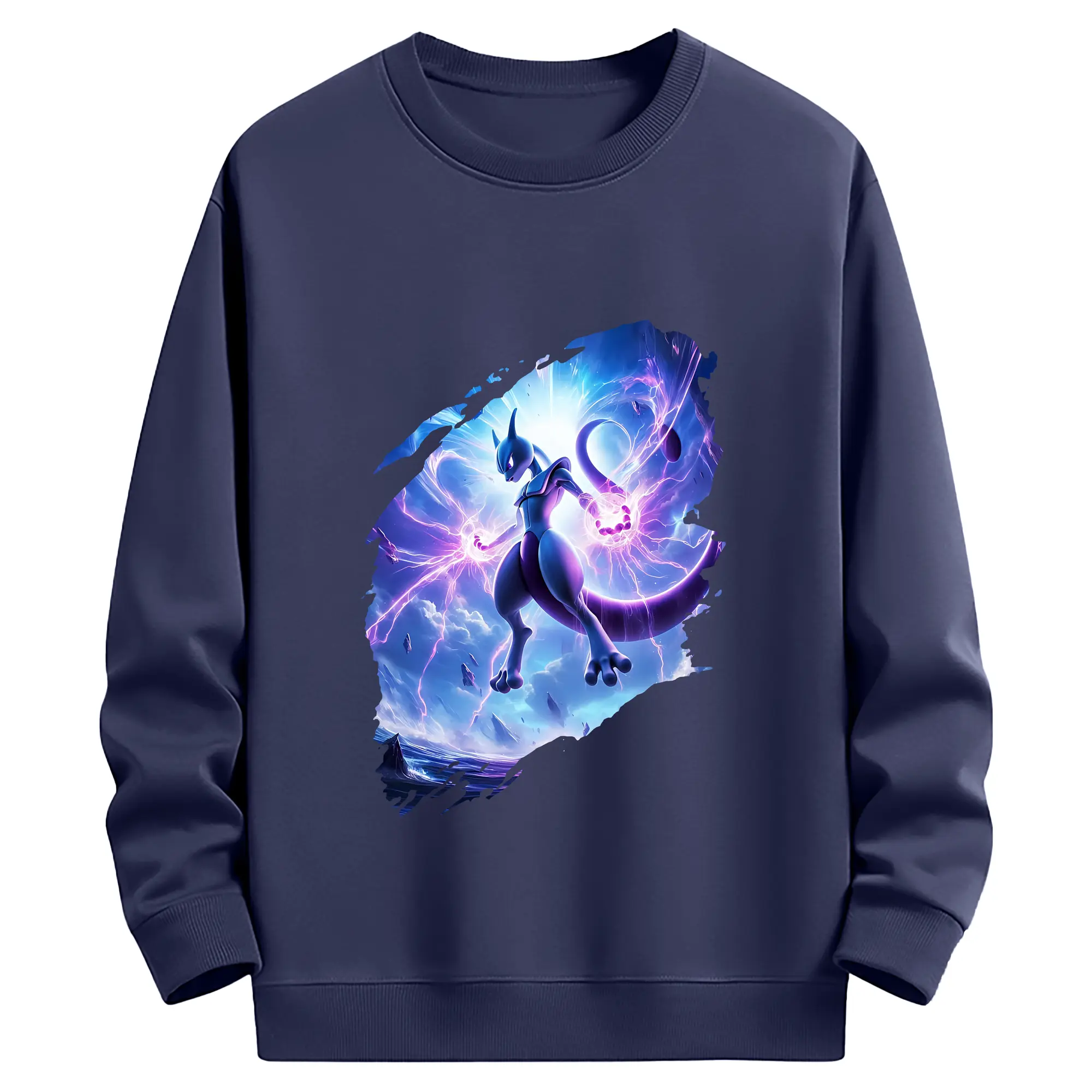 ポケモン グッズ,ミュウツー - 薄手 クルーネック スウェット 裏毛260g · ポリエステル 春秋向け カジュアル 男女兼用 · トレーナー デイリー スポーツ 散歩に最適