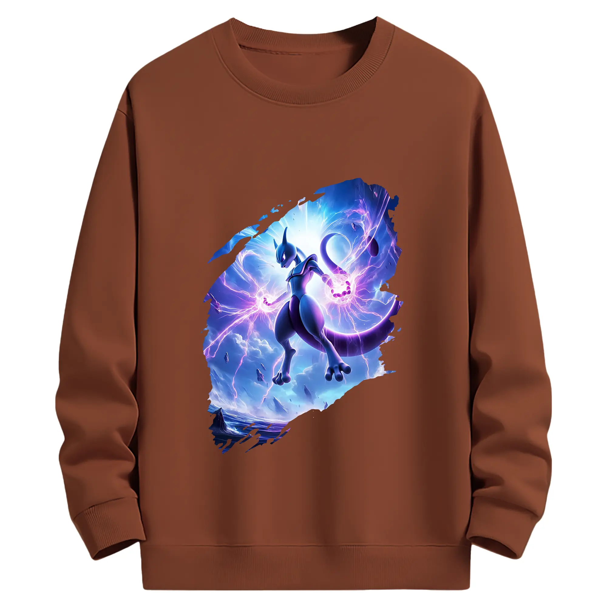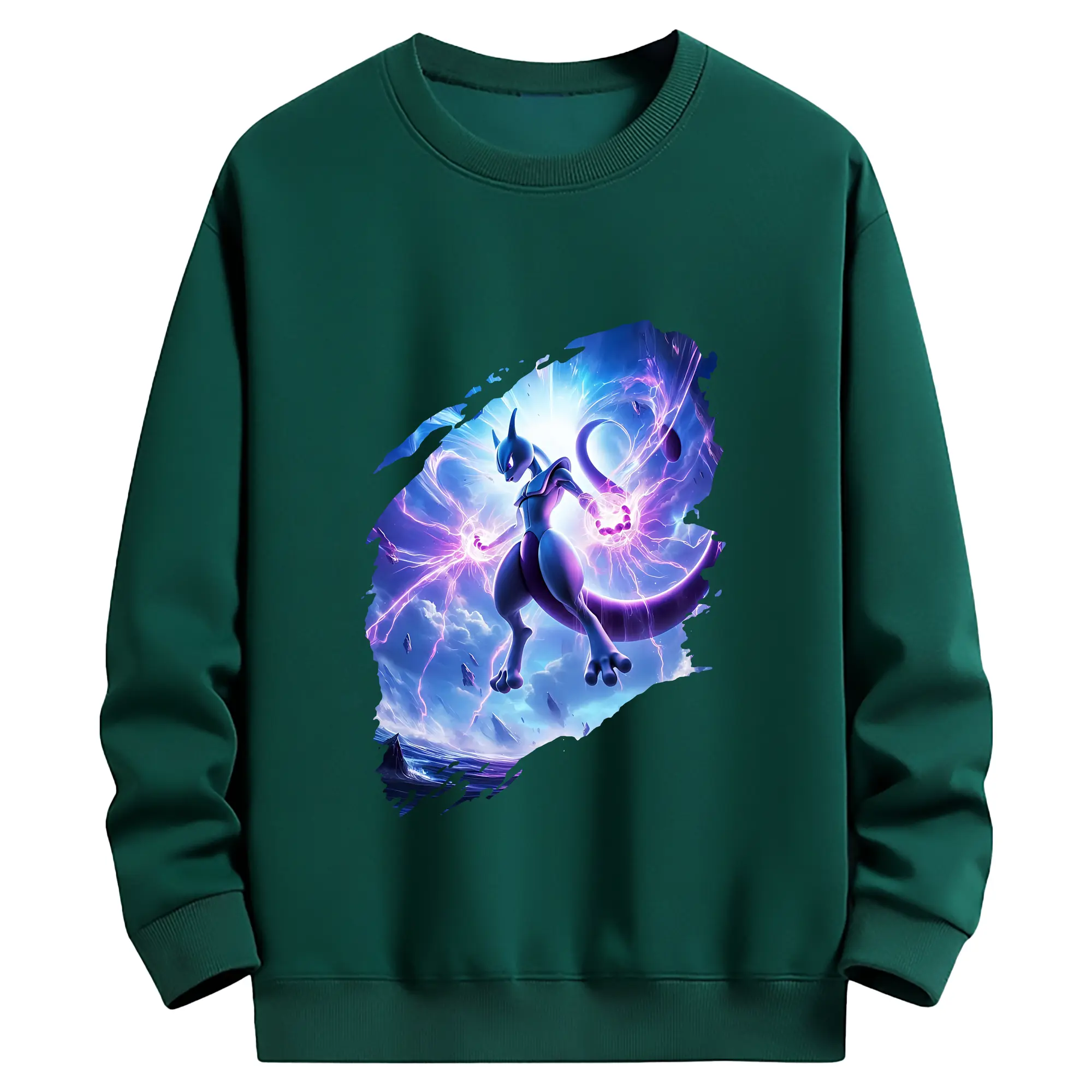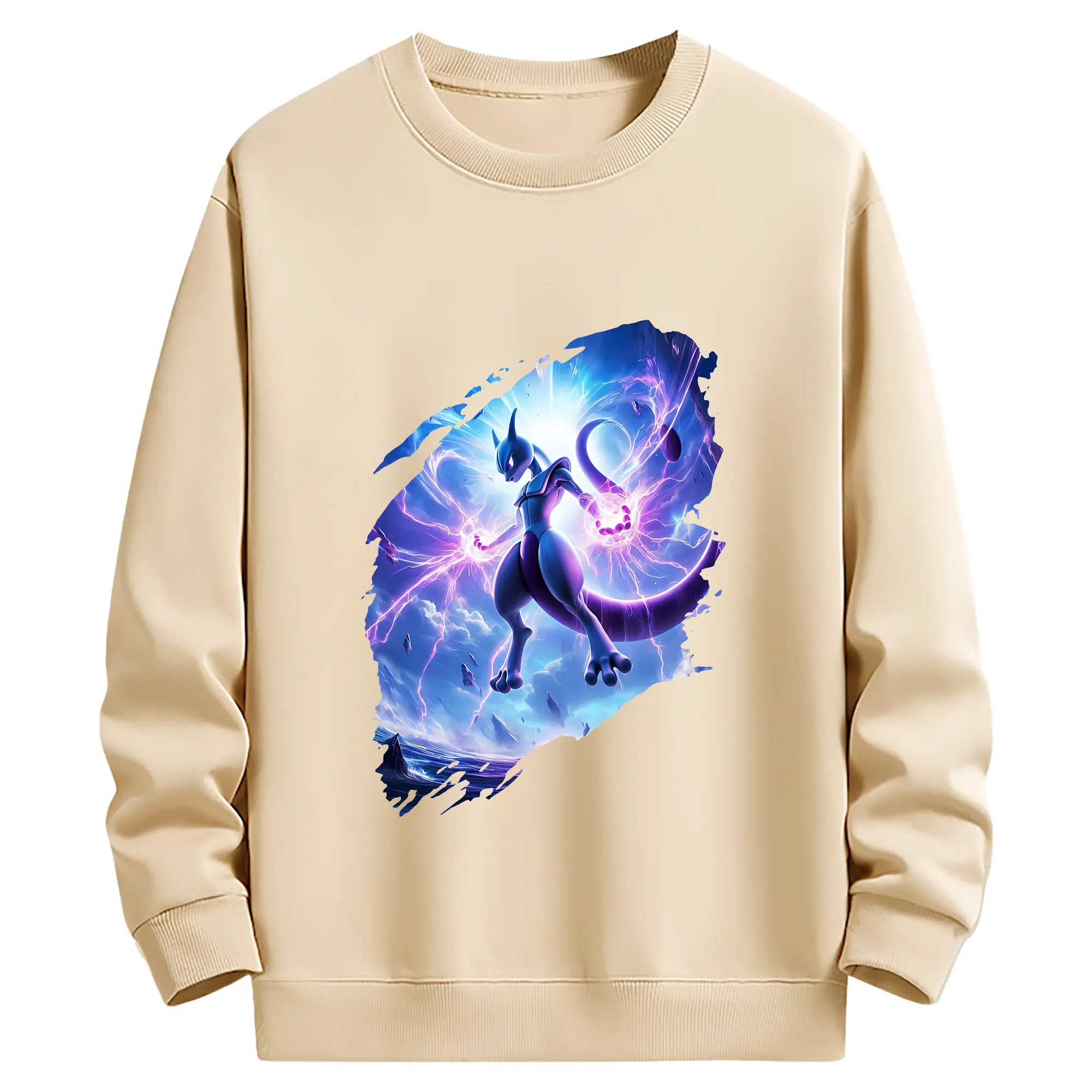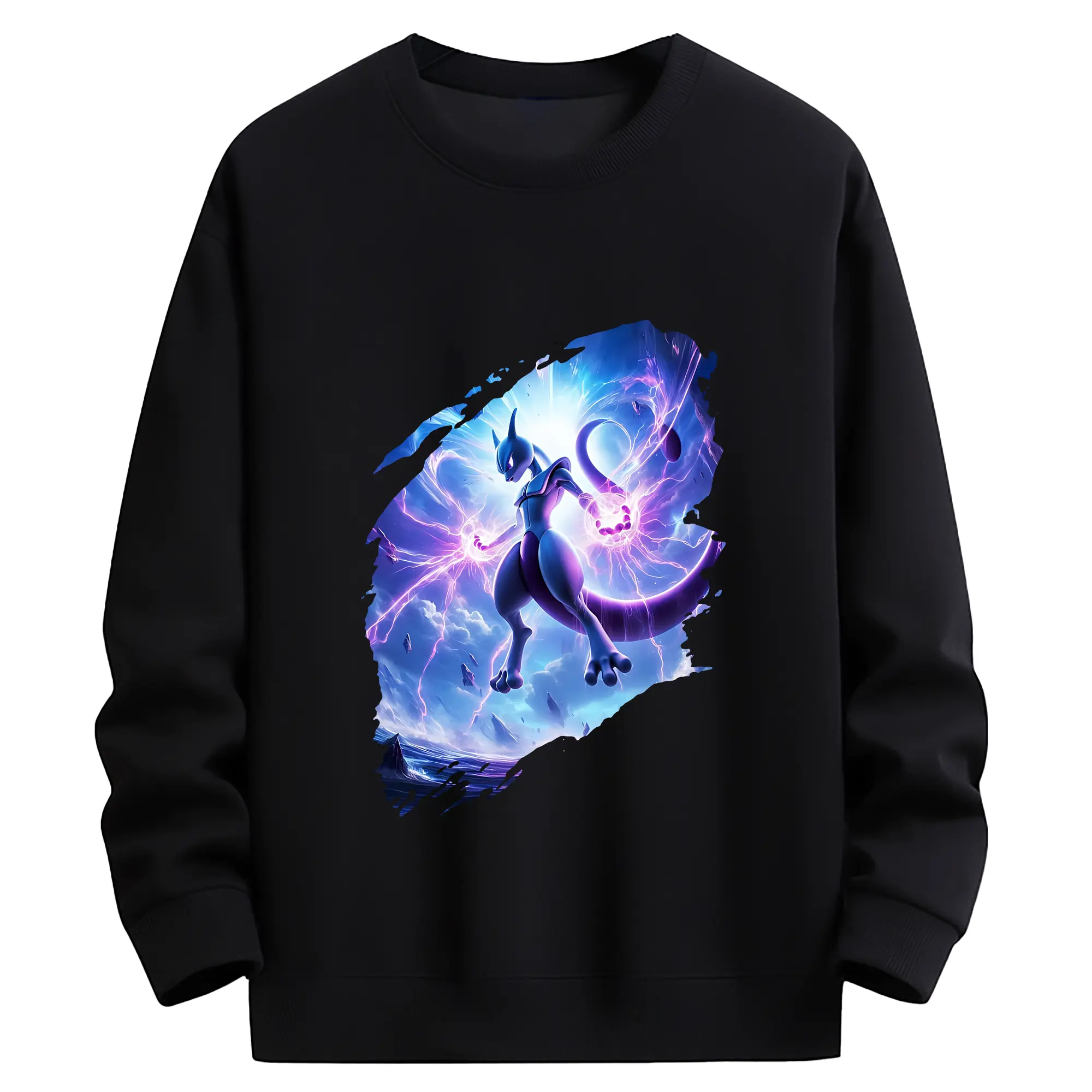ポケモン グッズ,ミュウツー - 薄手 クルーネック スウェット 裏毛260g · ポリエステル 春秋向け カジュアル 男女兼用 · トレーナー デイリー スポーツ 散歩に最適