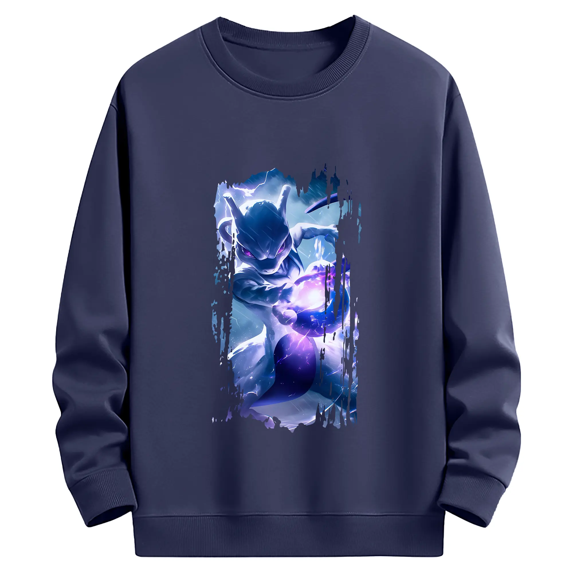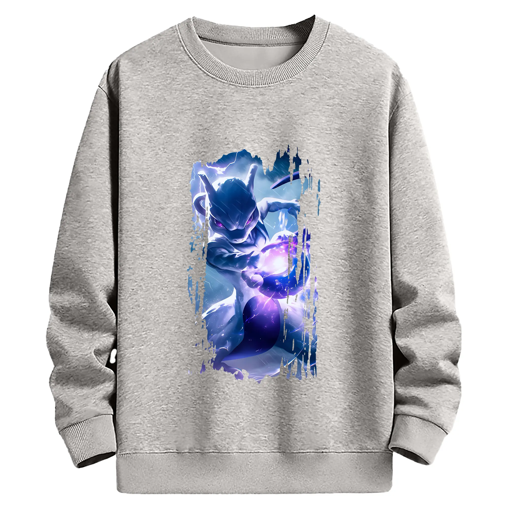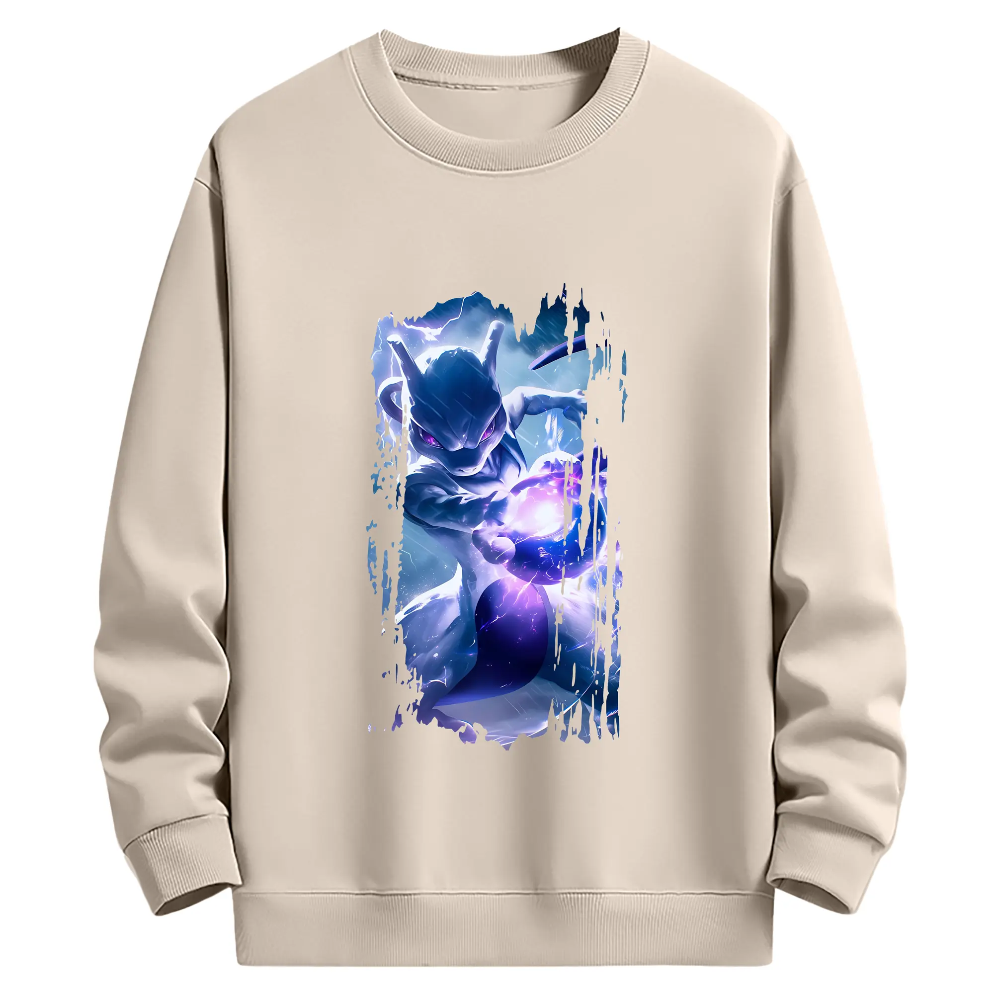 ポケモン グッズ,ミュウツー - 薄手 クルーネック スウェット 裏毛260g · ポリエステル 春秋向け カジュアル 男女兼用 · トレーナー デイリー スポーツ 散歩に最適