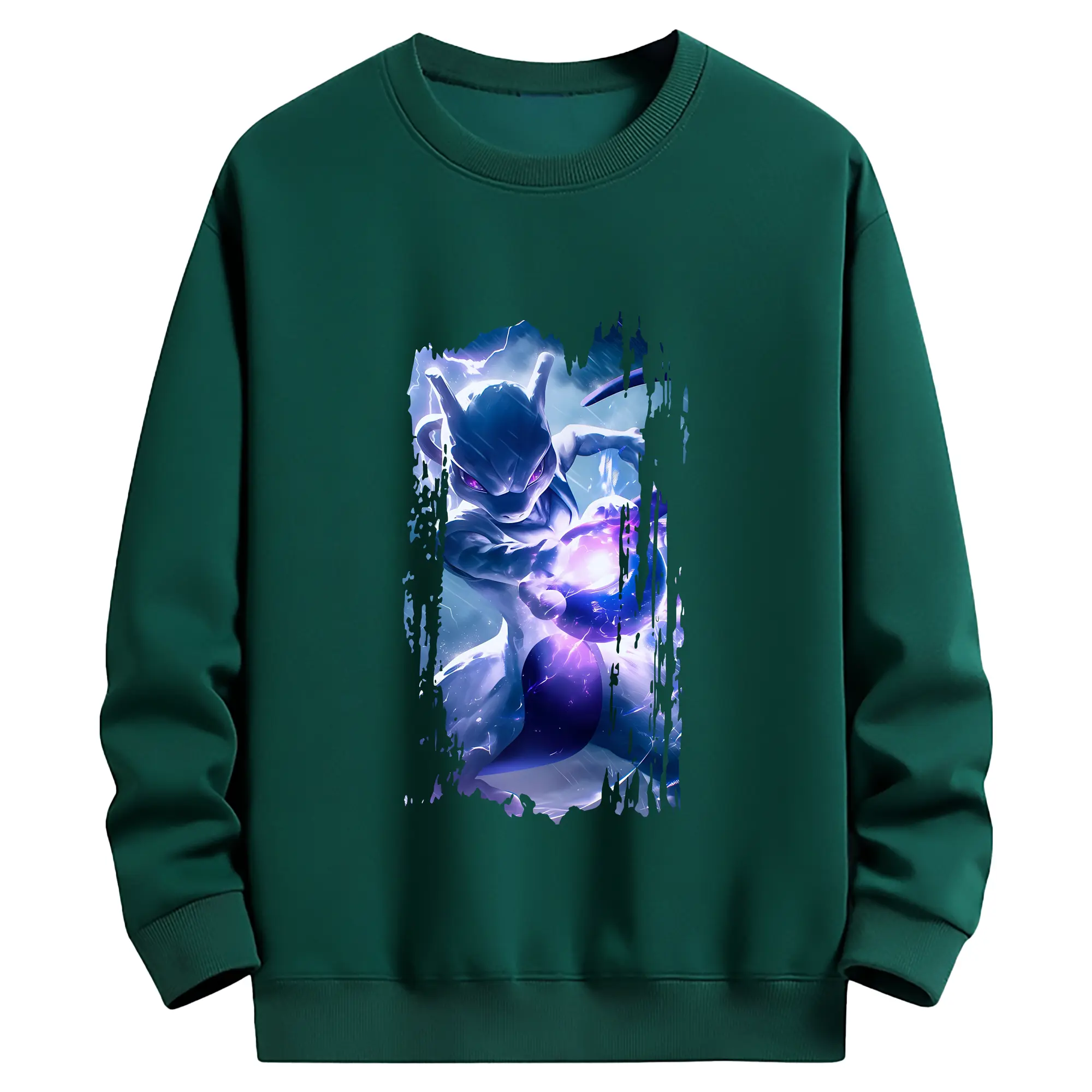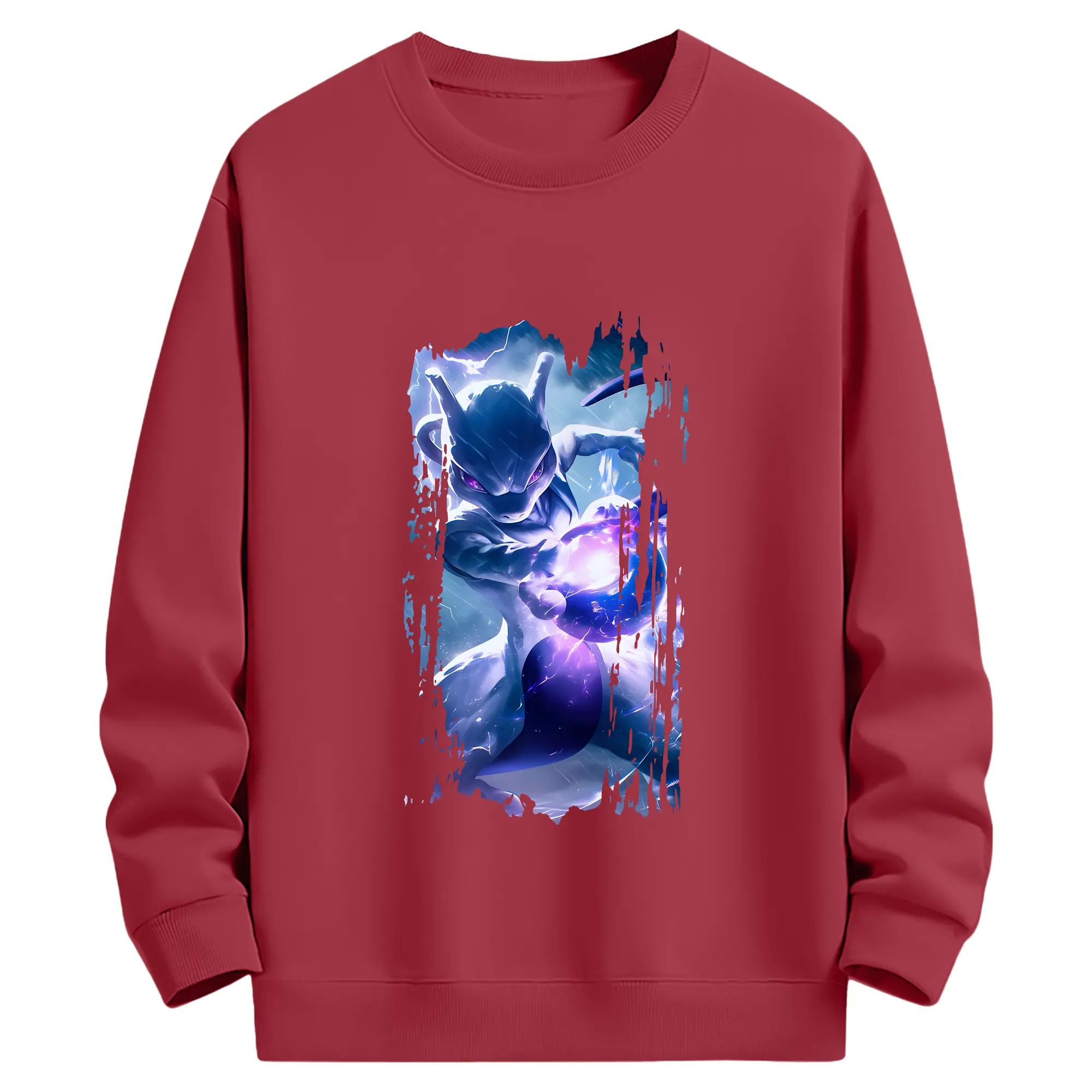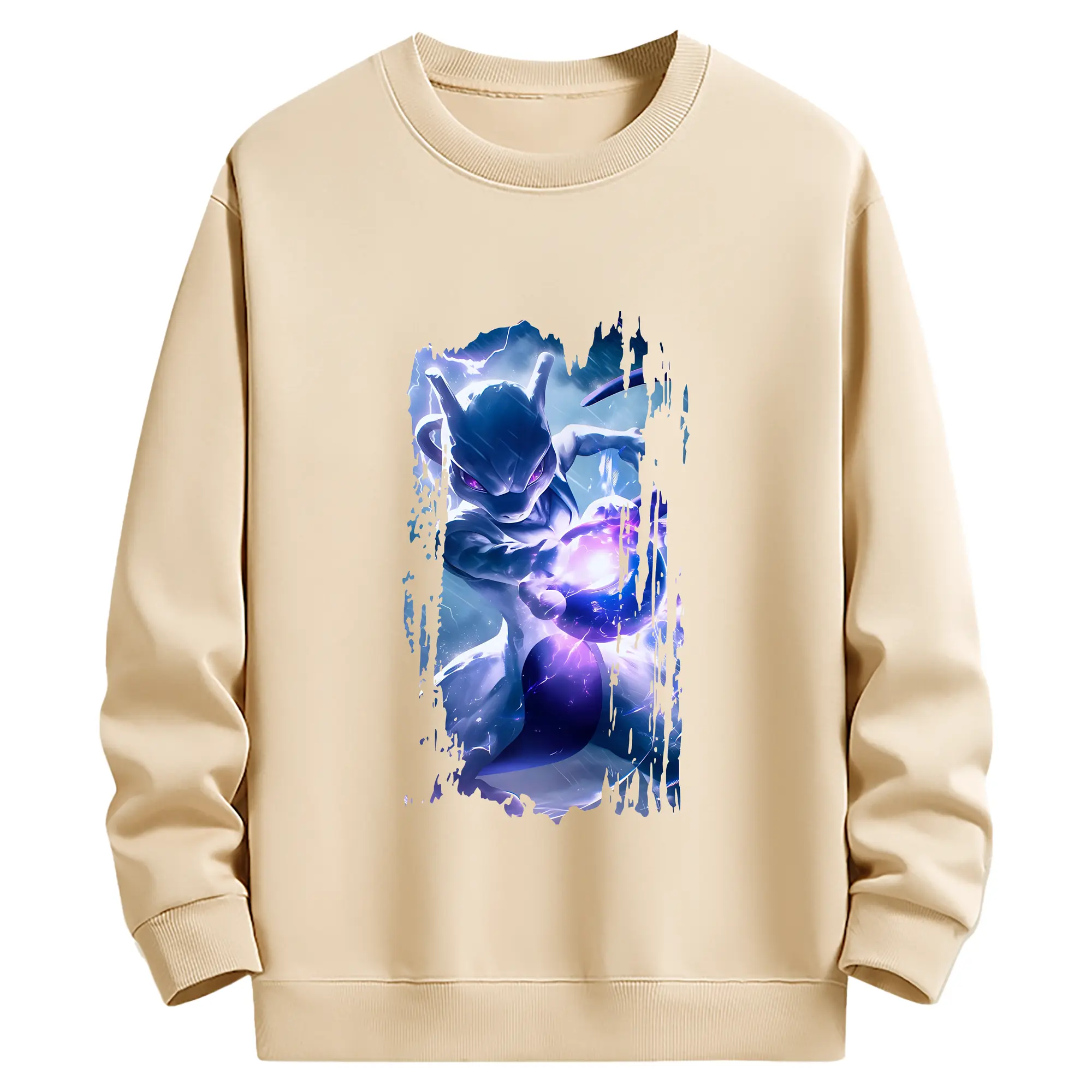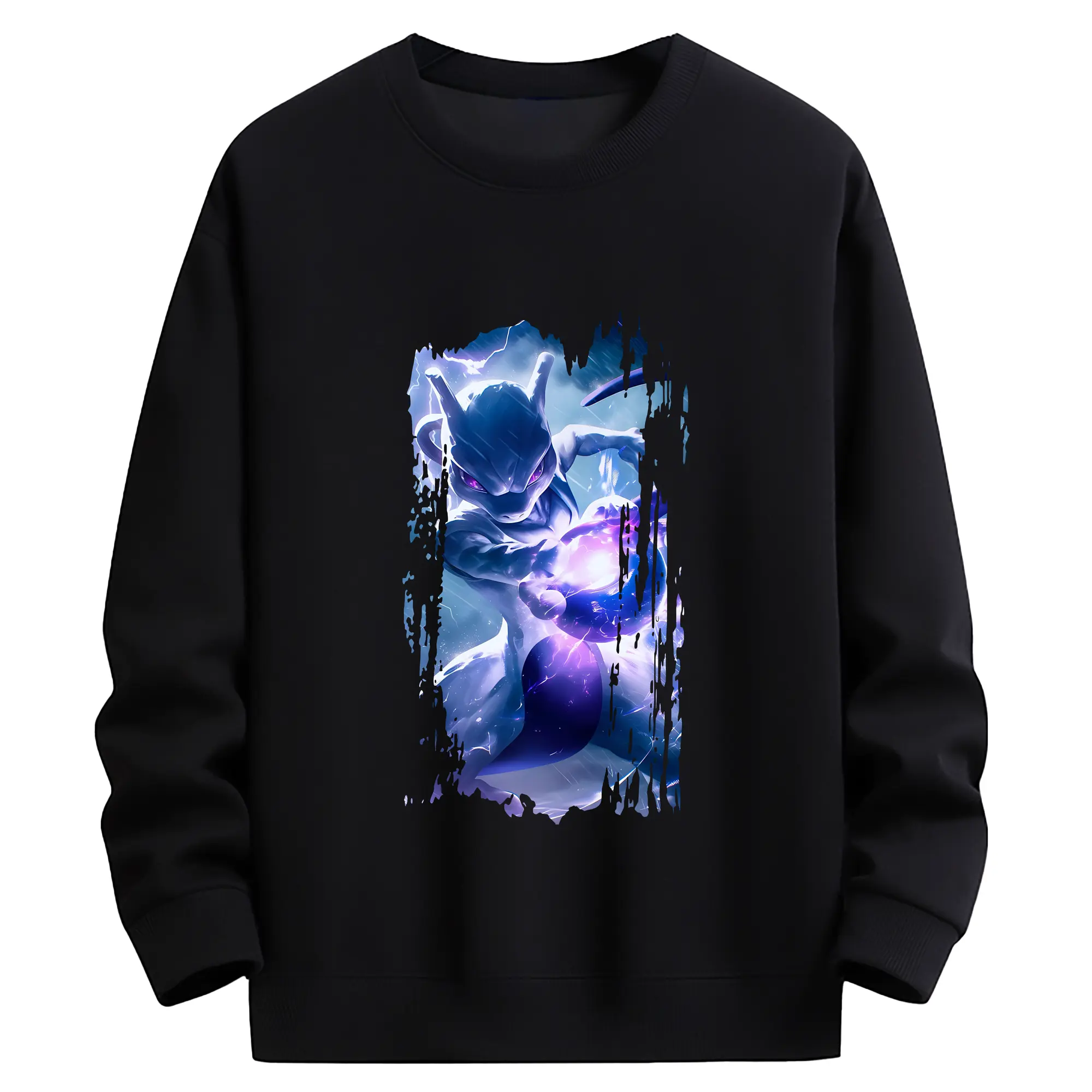 ポケモン グッズ,ミュウツー - 薄手 クルーネック スウェット 裏毛260g · ポリエステル 春秋向け カジュアル 男女兼用 · トレーナー デイリー スポーツ 散歩に最適