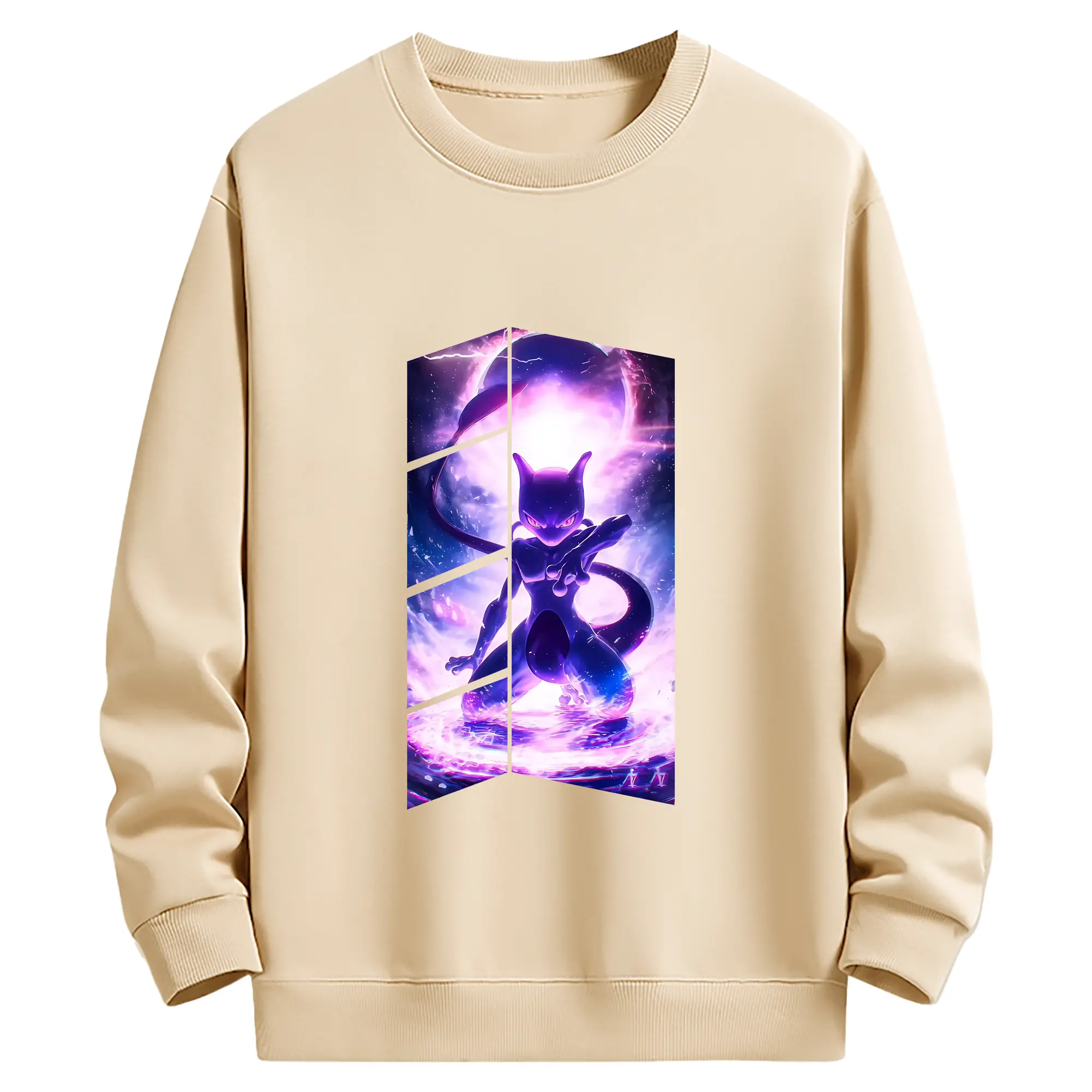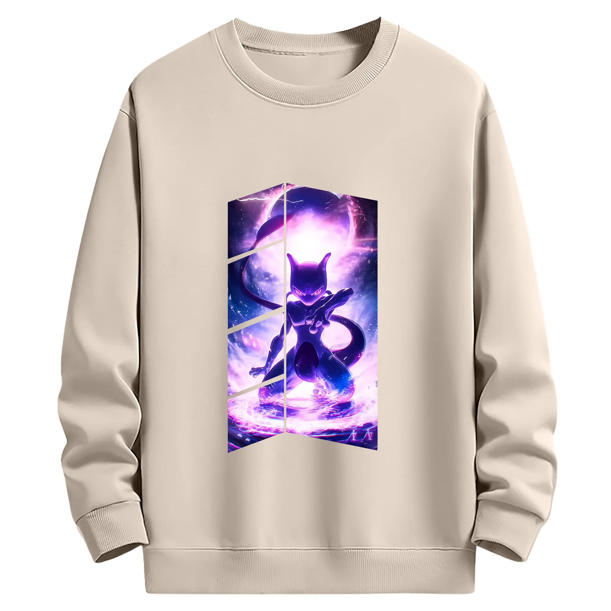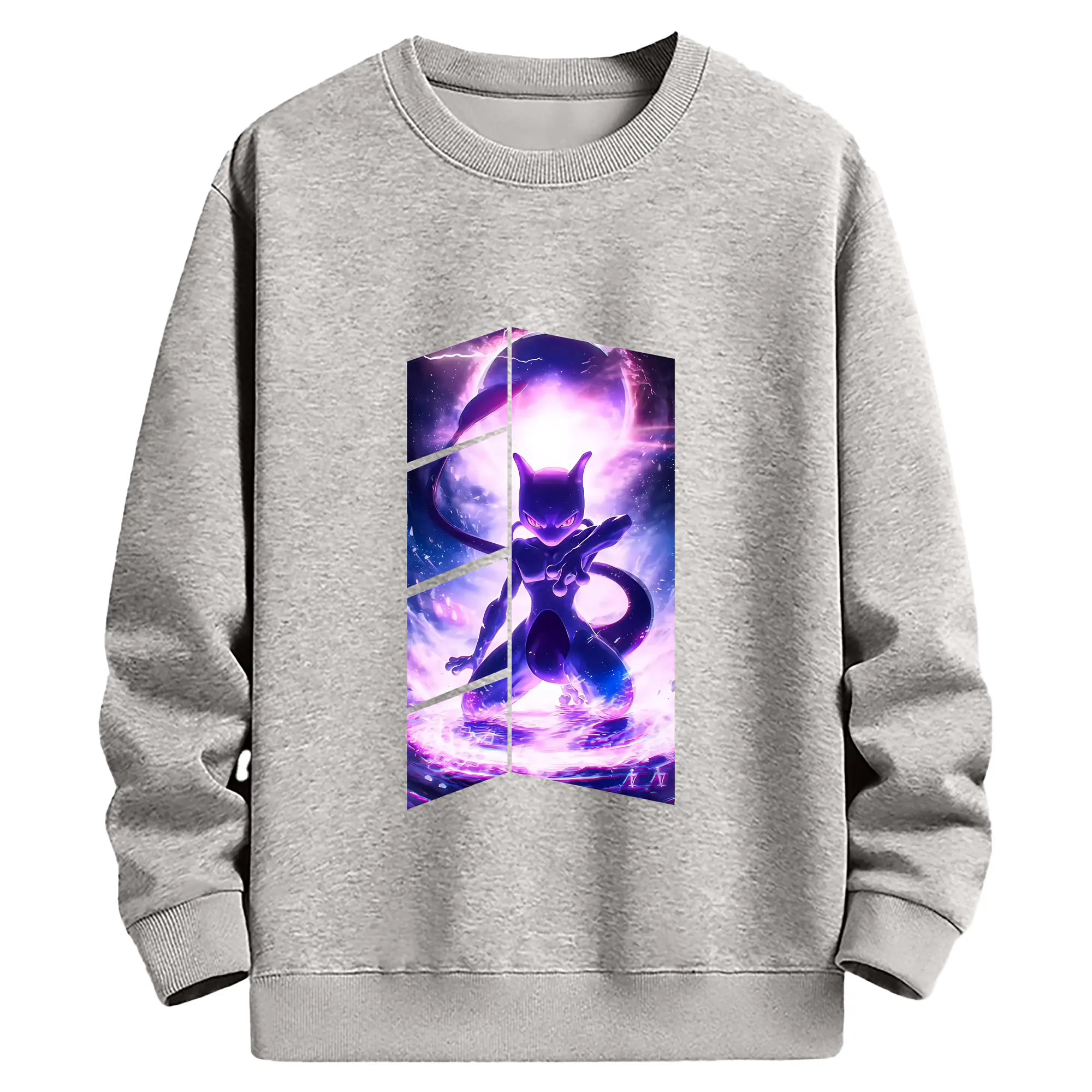 ポケモン グッズ,ミュウツー - 薄手 クルーネック スウェット 裏毛260g · ポリエステル 春秋向け カジュアル 男女兼用 · トレーナー デイリー スポーツ 散歩に最適