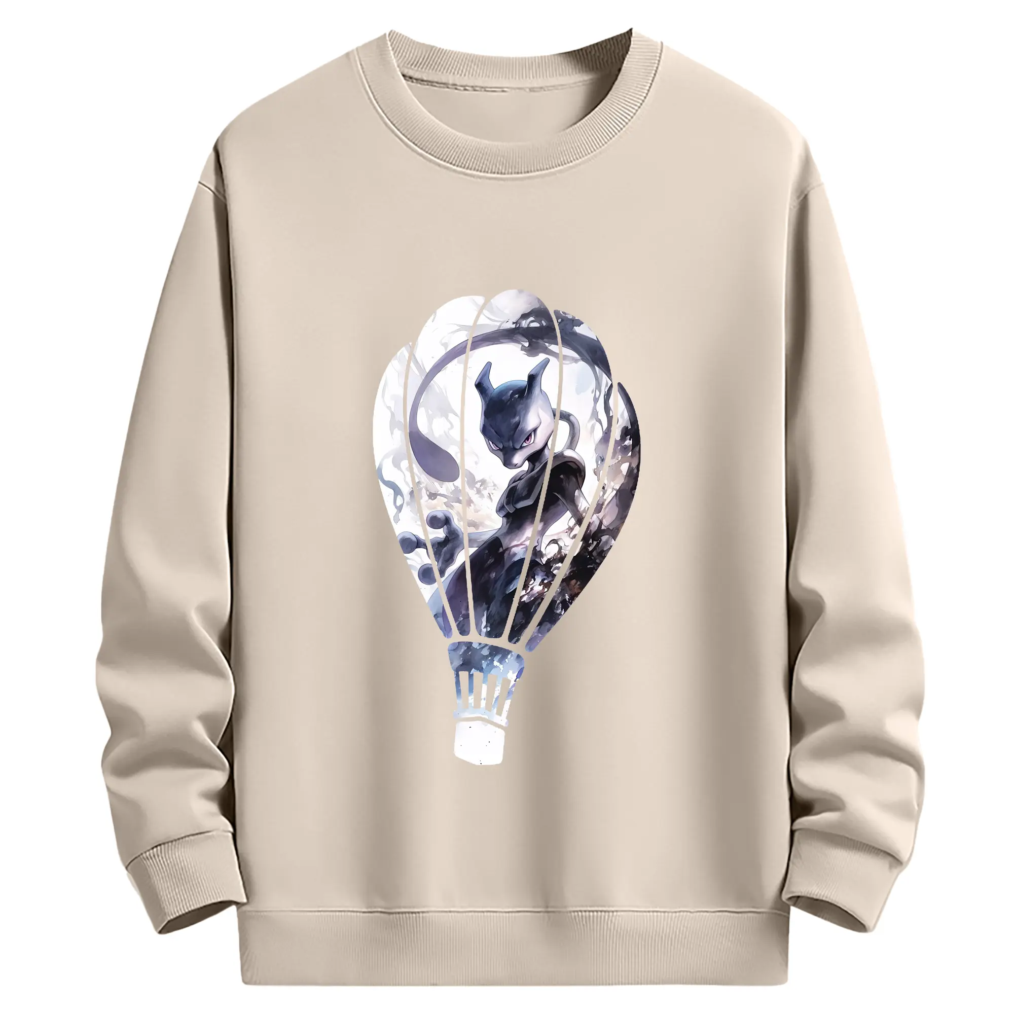 ポケモン グッズ,ミュウツー - 薄手 クルーネック スウェット 裏毛260g · ポリエステル 春秋向け カジュアル 男女兼用 · トレーナー デイリー スポーツ 散歩に最適