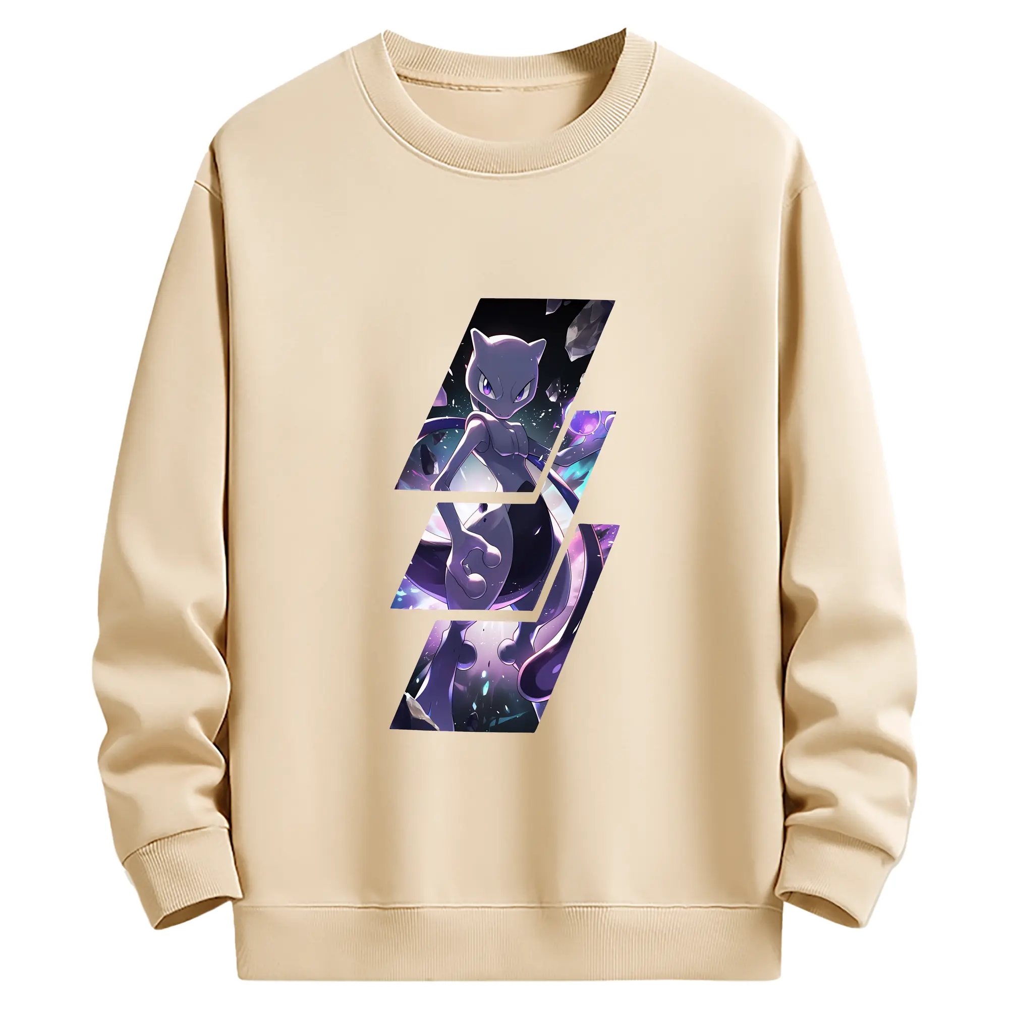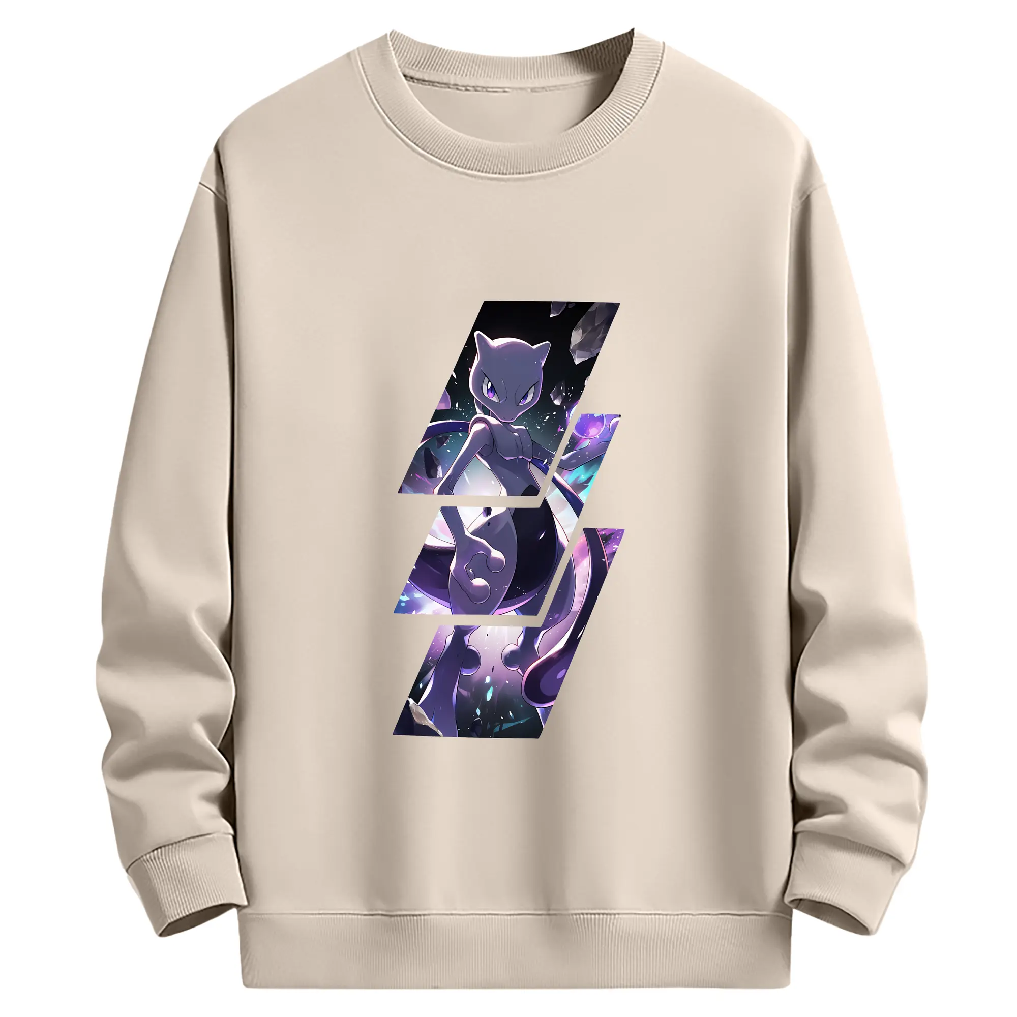 ポケモン グッズ,ミュウツー - 薄手 クルーネック スウェット 裏毛260g · ポリエステル 春秋向け カジュアル 男女兼用 · トレーナー デイリー スポーツ 散歩に最適