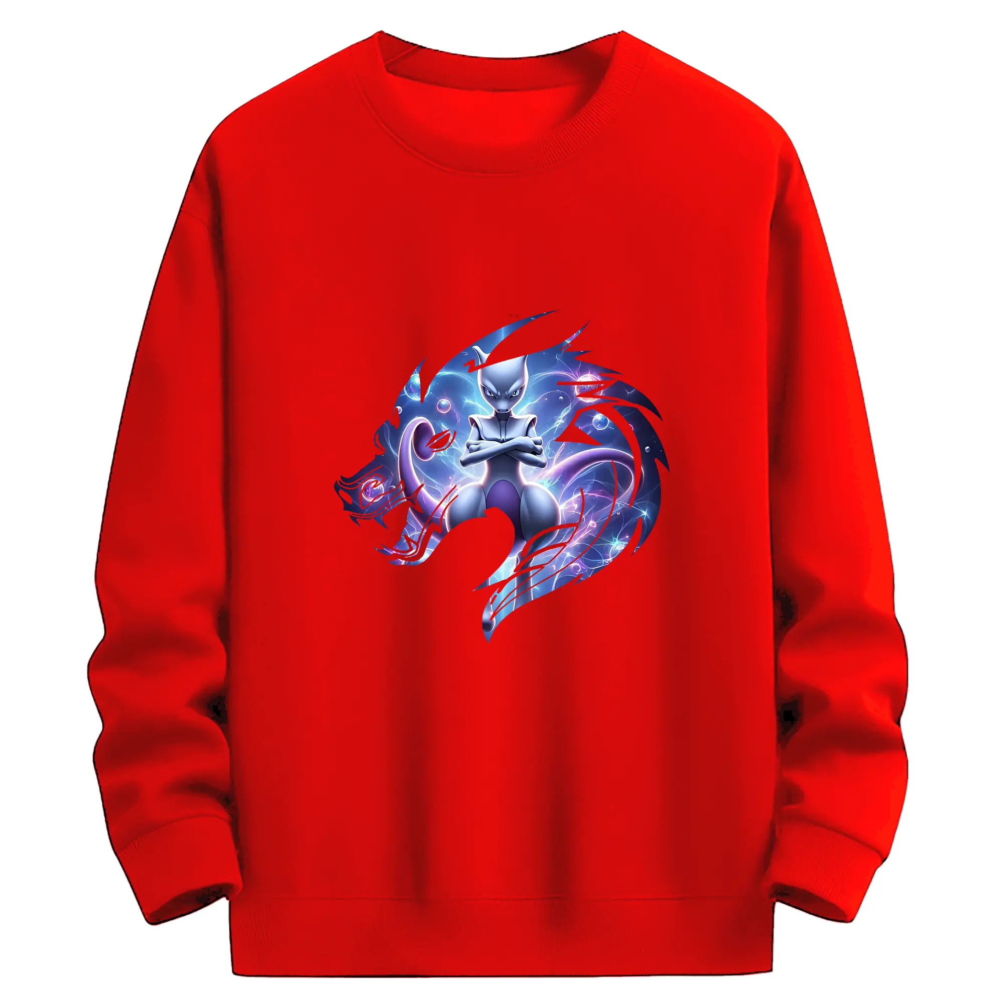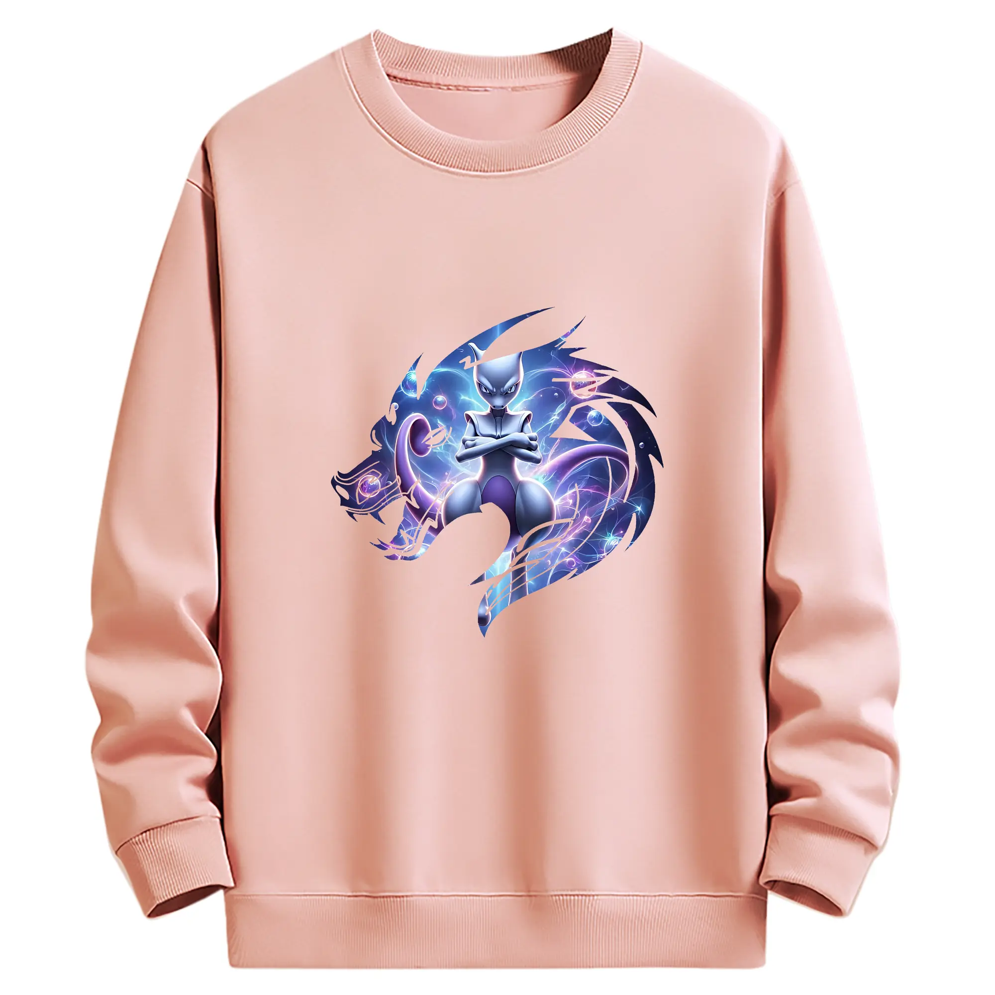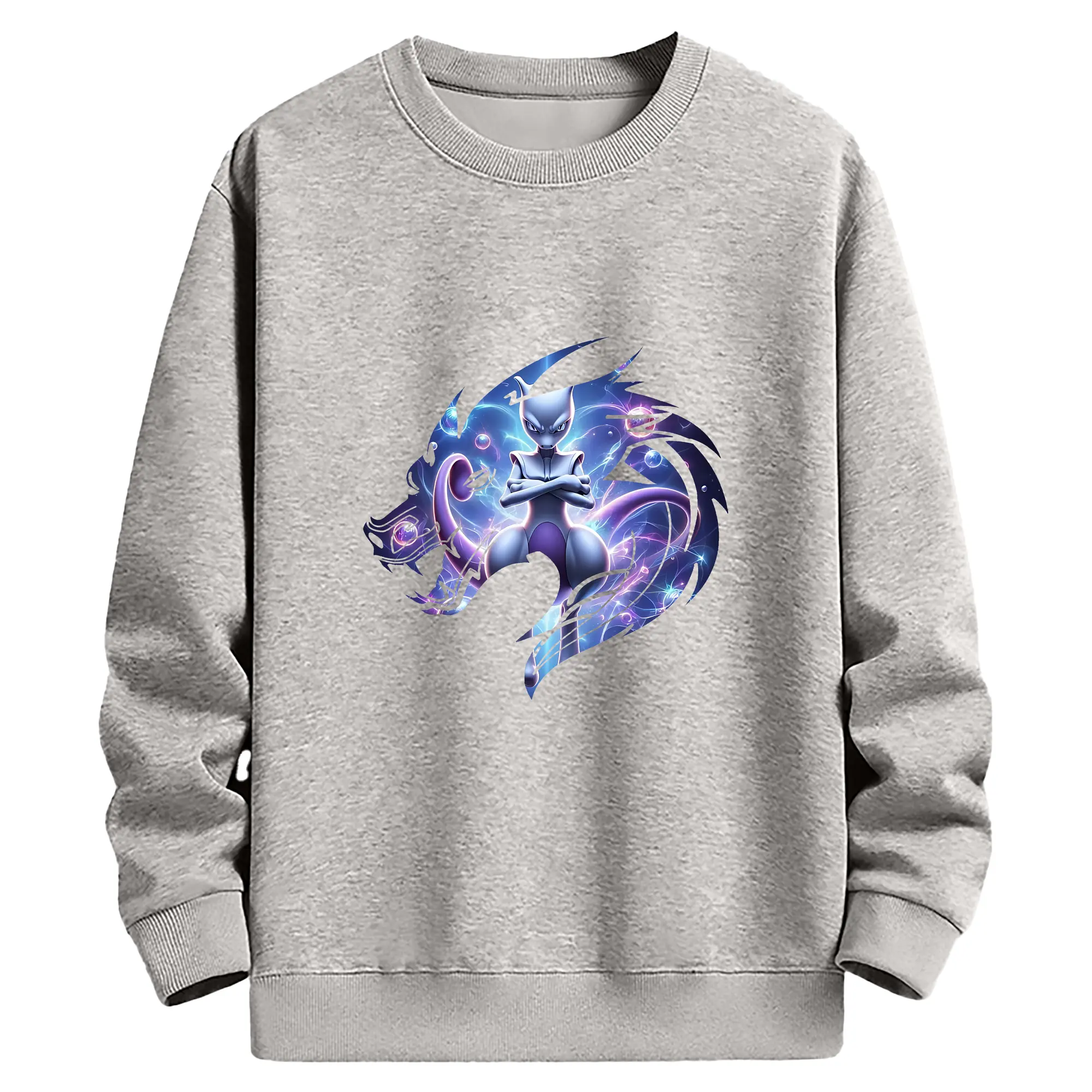 ポケモン グッズ,ミュウツー - 薄手 クルーネック スウェット 裏毛260g · ポリエステル 春秋向け カジュアル 男女兼用 · トレーナー デイリー スポーツ 散歩に最適