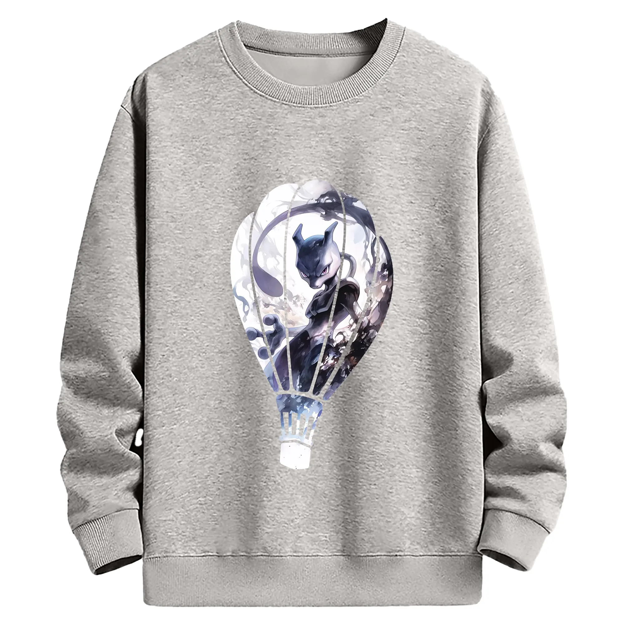 ポケモン グッズ,ミュウツー - 薄手 クルーネック スウェット 裏毛260g · ポリエステル 春秋向け カジュアル 男女兼用 · トレーナー デイリー スポーツ 散歩に最適