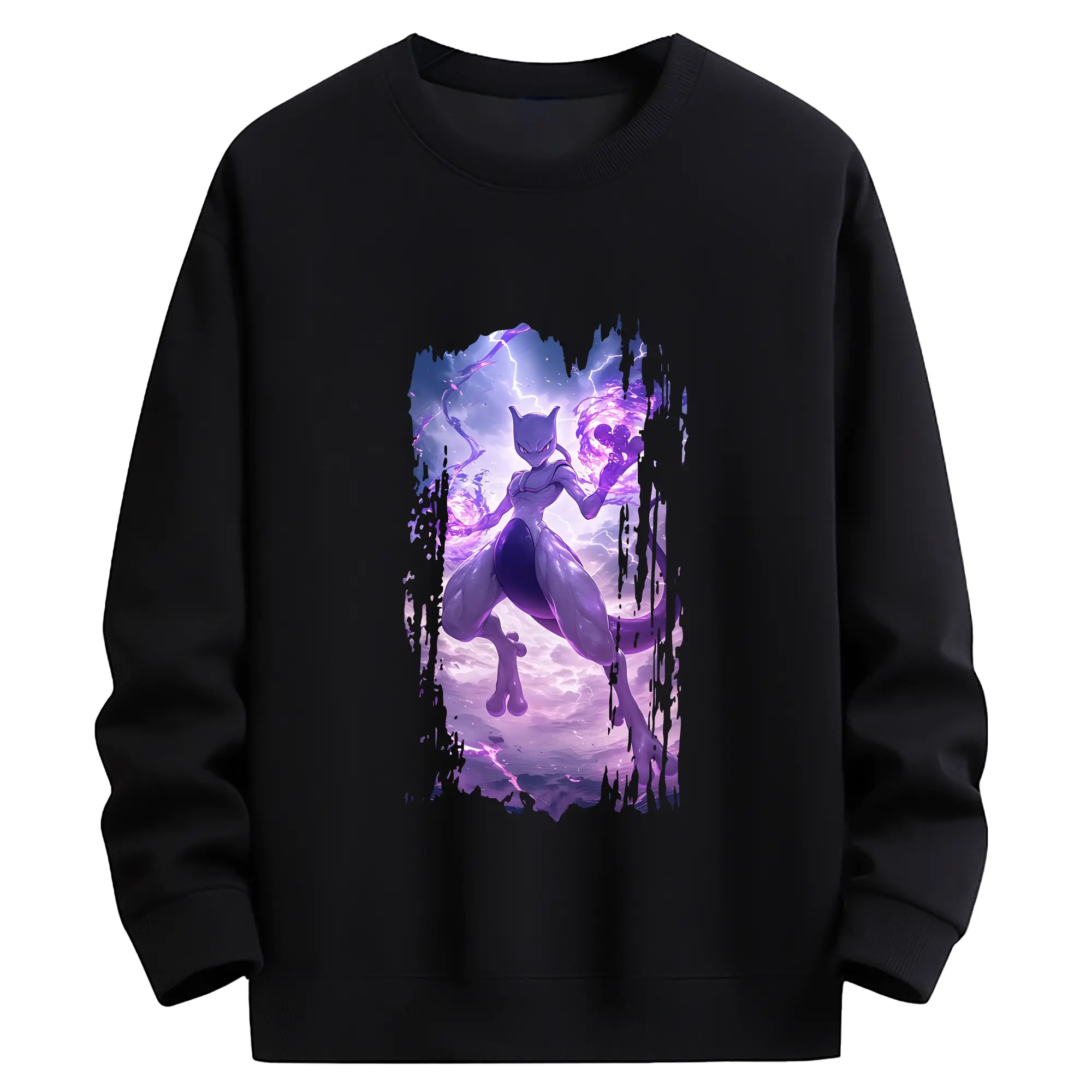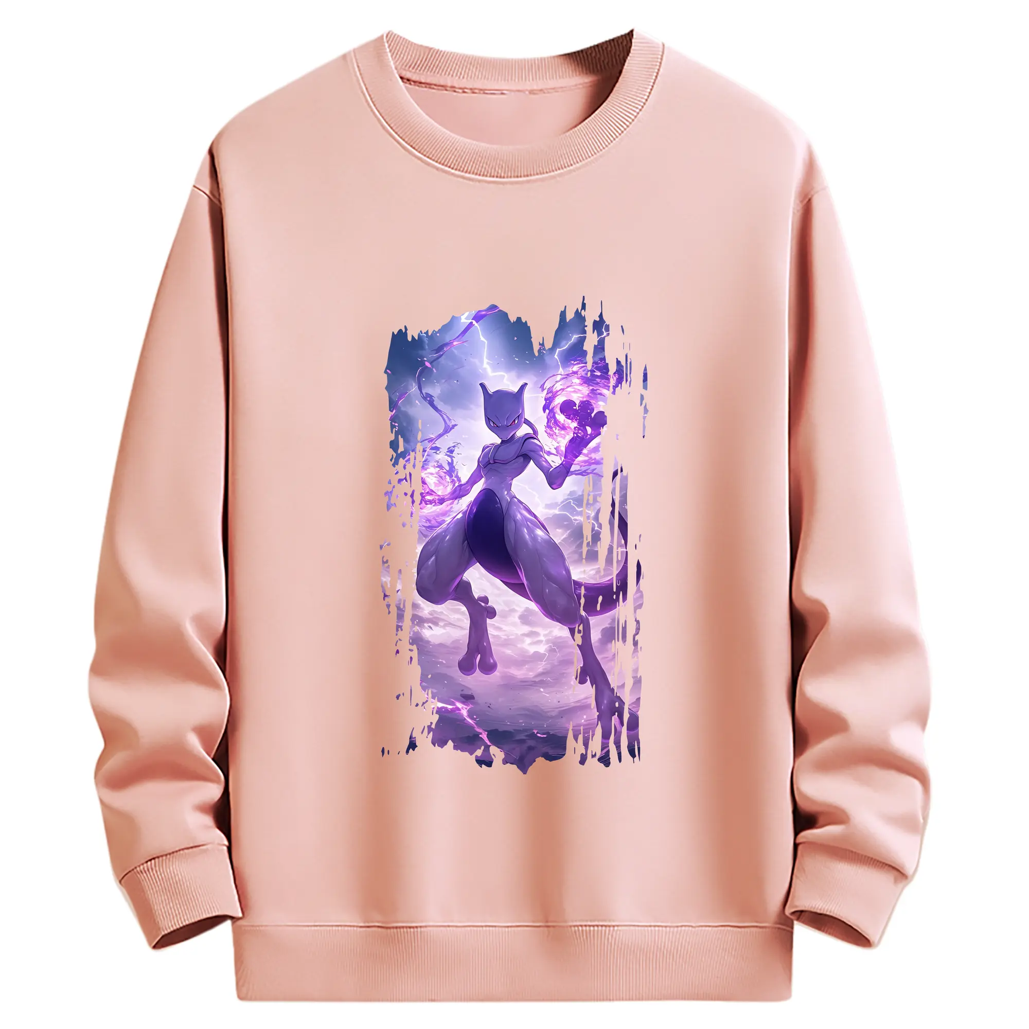 ポケモン グッズ,ミュウツー - 薄手 クルーネック スウェット 裏毛260g · ポリエステル 春秋向け カジュアル 男女兼用 · トレーナー デイリー スポーツ 散歩に最適