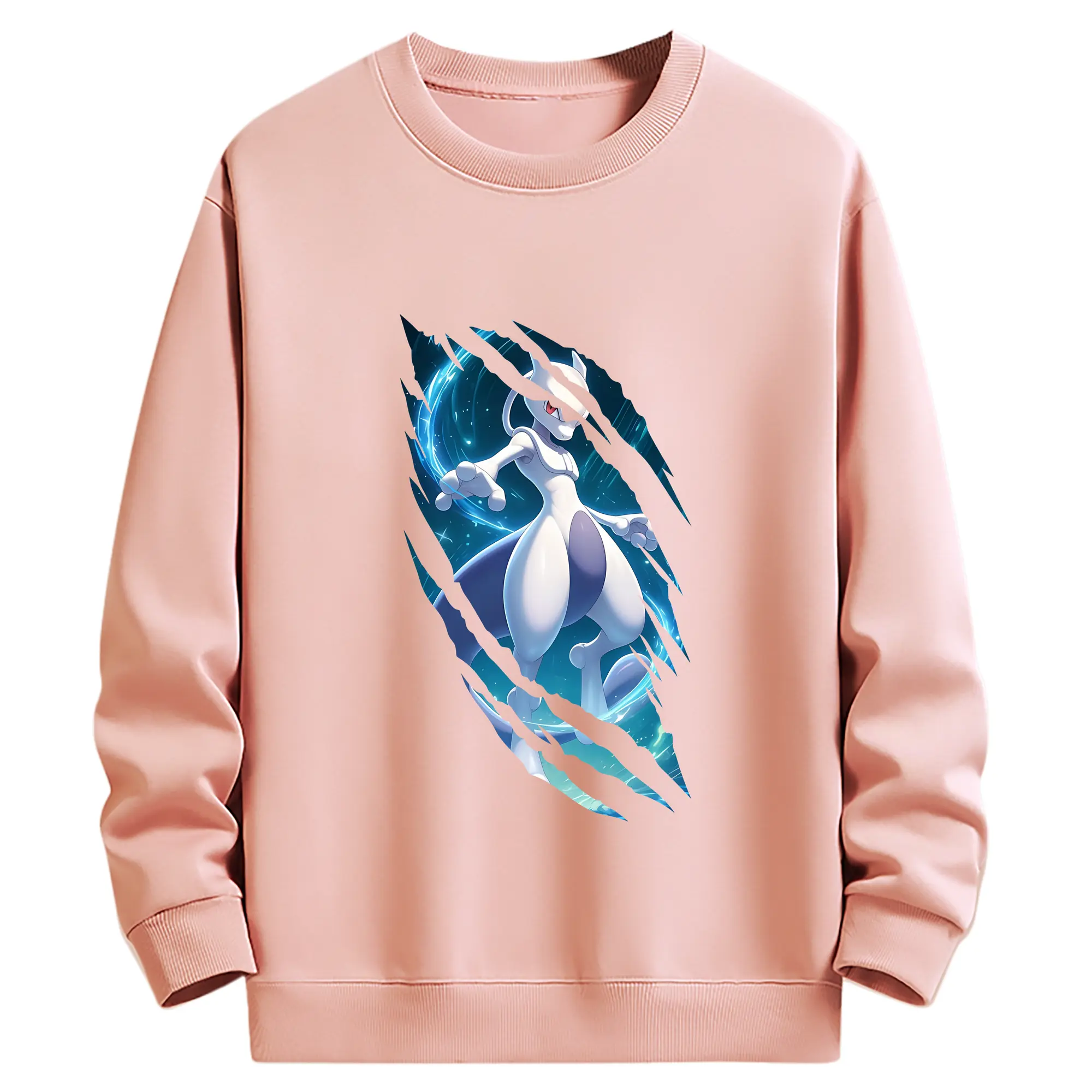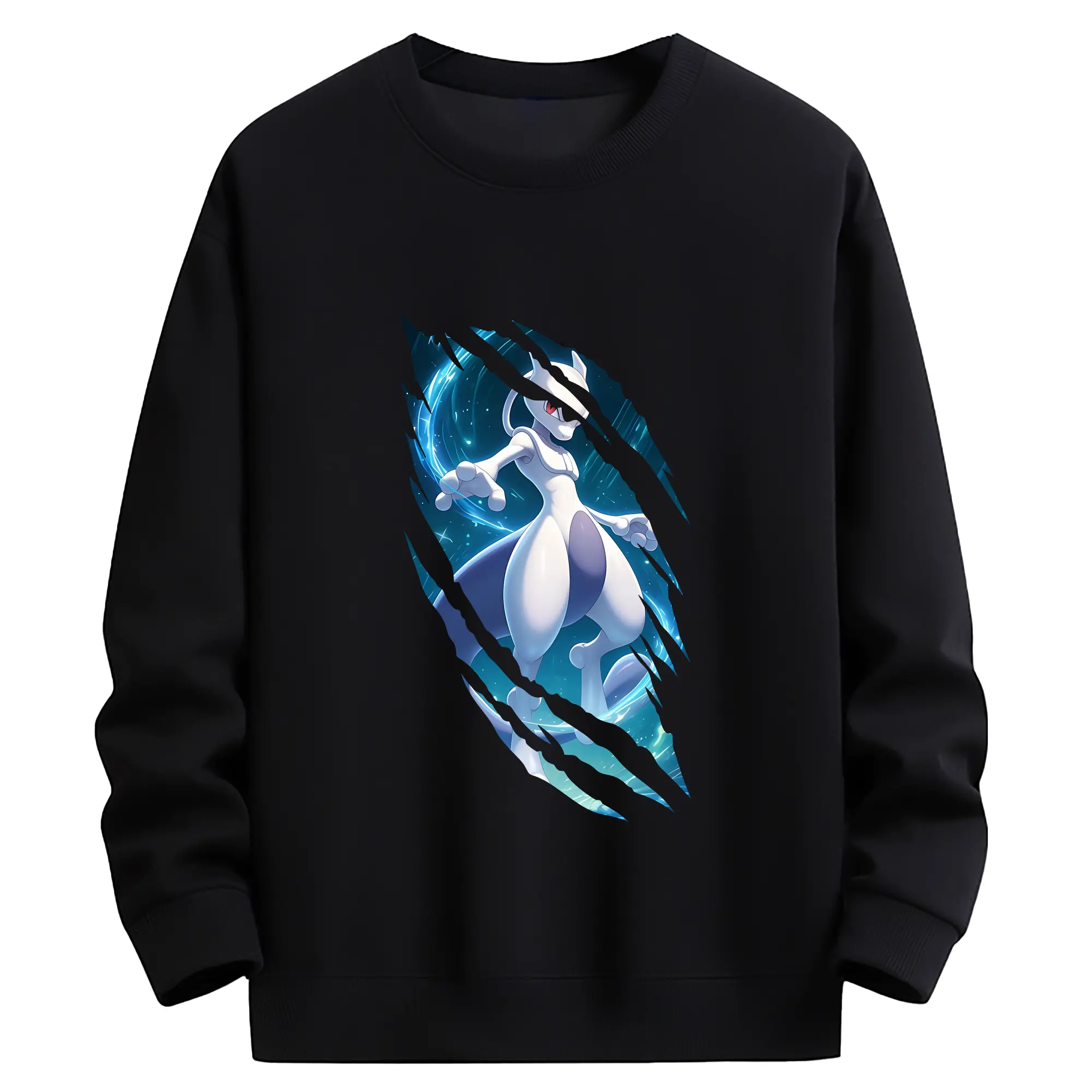 ポケモン グッズ,ミュウツー - 薄手 クルーネック スウェット 裏毛260g · ポリエステル 春秋向け カジュアル 男女兼用 · トレーナー デイリー スポーツ 散歩に最適