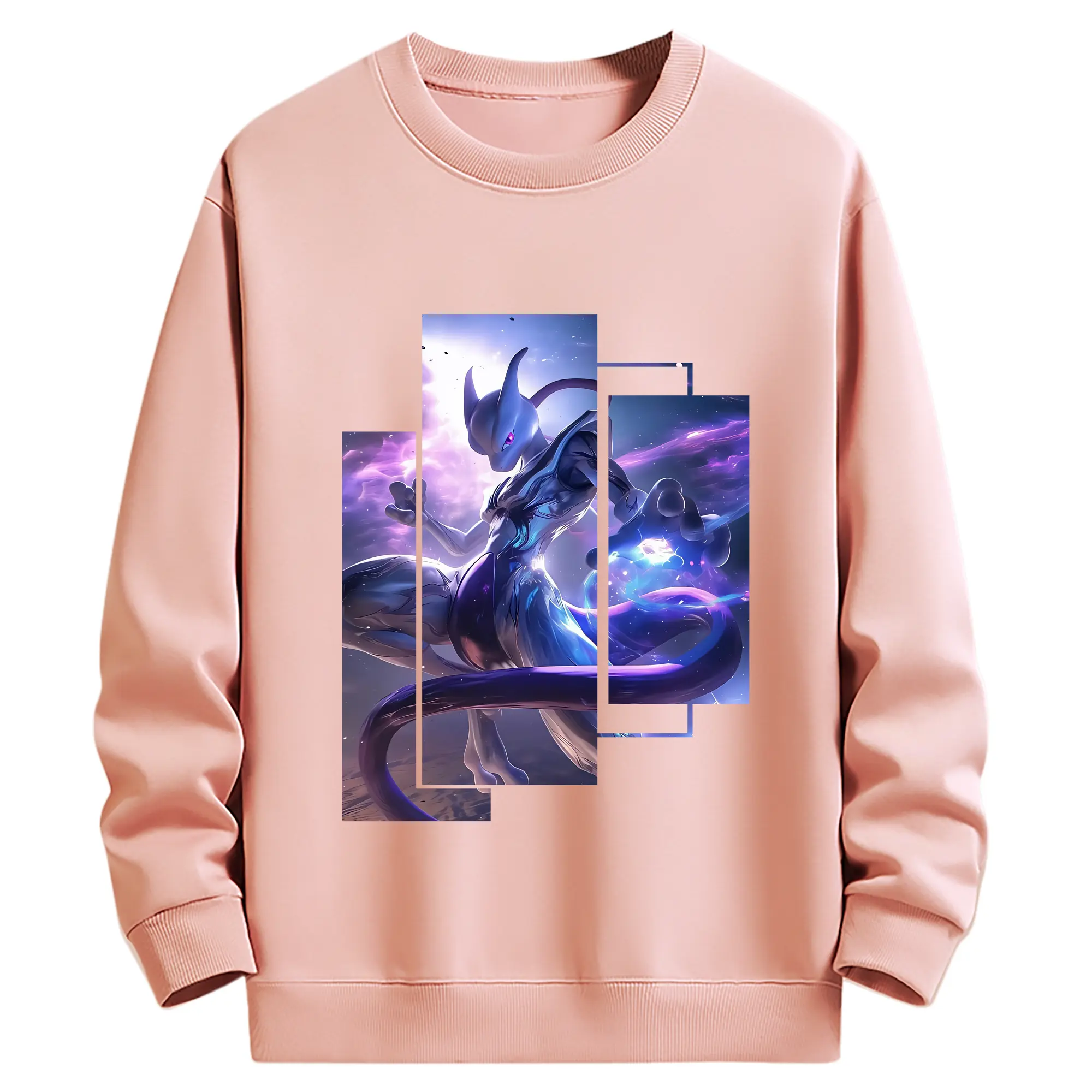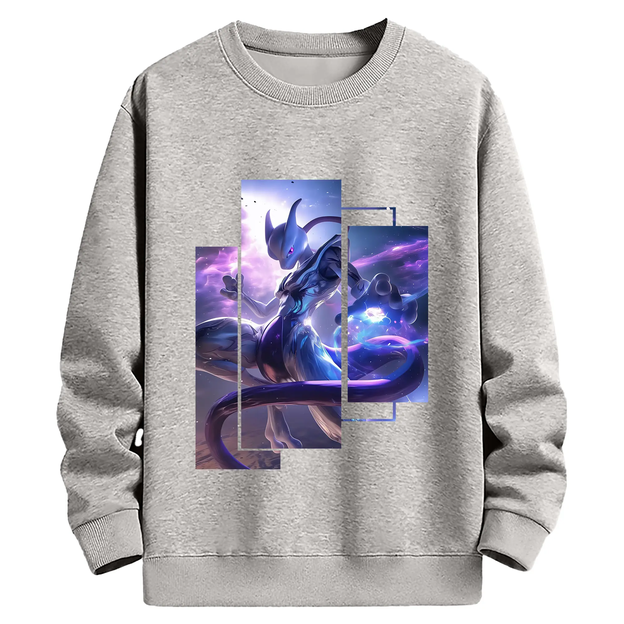 ポケモン グッズ,ミュウツー - 薄手 クルーネック スウェット 裏毛260g · ポリエステル 春秋向け カジュアル 男女兼用 · トレーナー デイリー スポーツ 散歩に最適