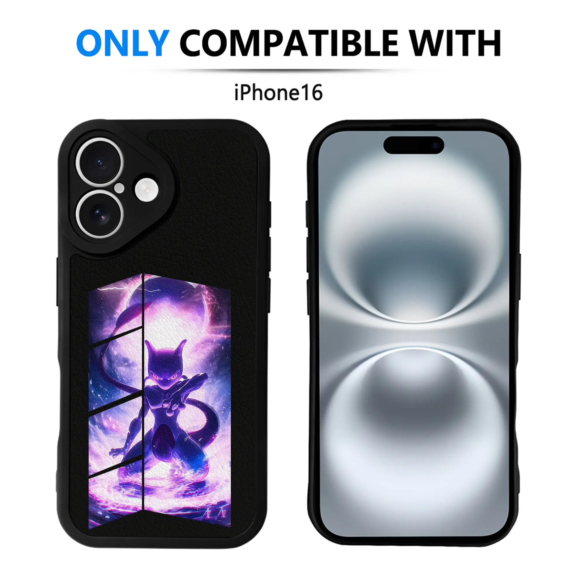 ポケモン グッズ,ミュウツー - IPhone 16シリーズ対応 ・ シリコンスマホケース ・ レザー調 ・ 高精度フィット ・ 耐衝撃 ・ ワイヤレス充電対応 ・ 精密カット