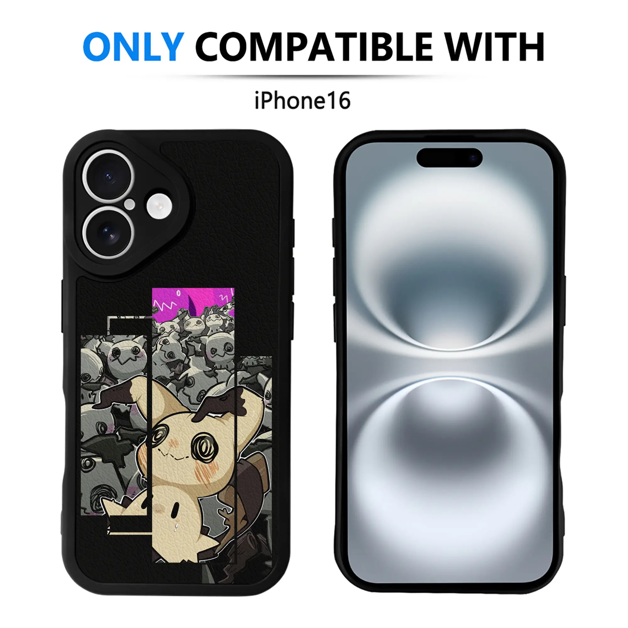 ポケモン グッズ,ミミッキュ - IPhone 16シリーズ対応 ・ シリコンスマホケース ・ レザー調 ・ 高精度フィット ・ 耐衝撃 ・ ワイヤレス充電対応 ・ 精密カット