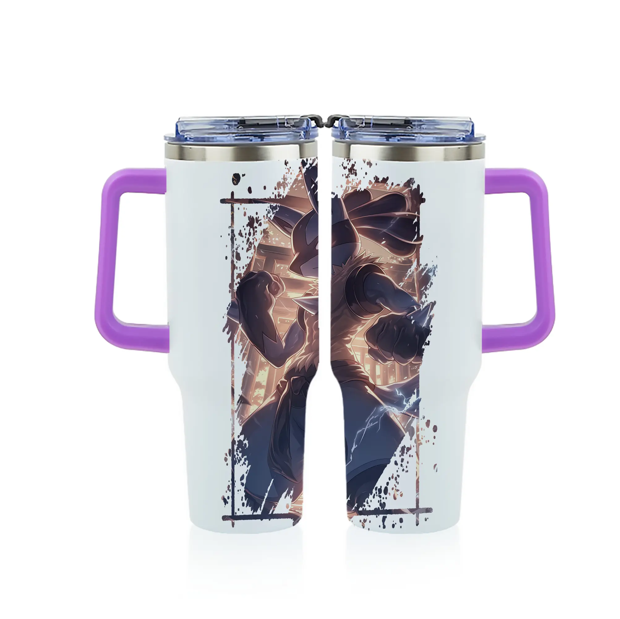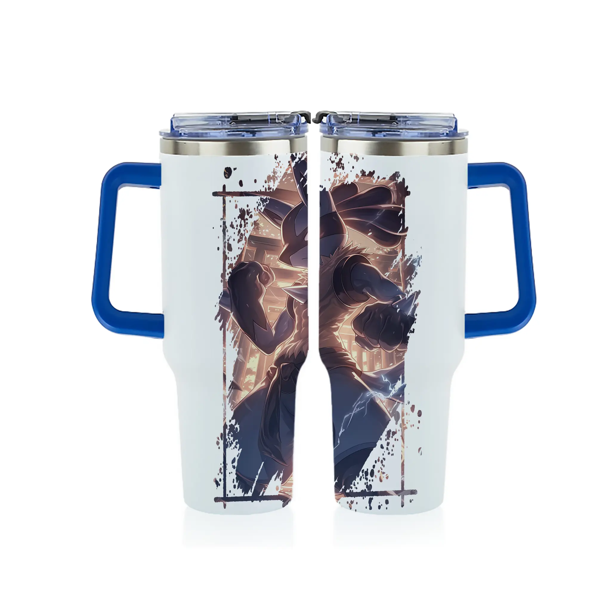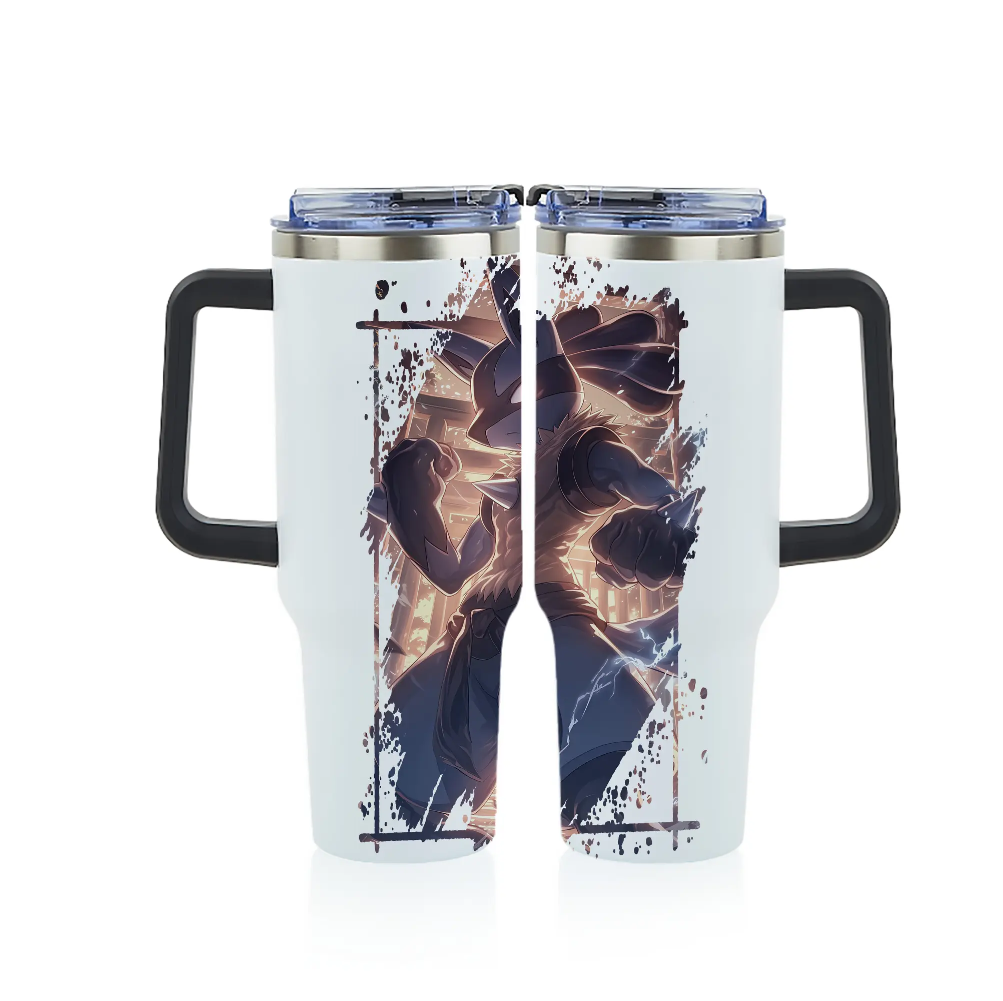 ポケモン グッズ,ルカリオ - 1200mL フルプリント車用タンブラー ・ 304ステンレス 内側 ・ 201ステンレス 外側 ・ 保温 保冷 ・ 通勤 ドライブ アウトドア用
