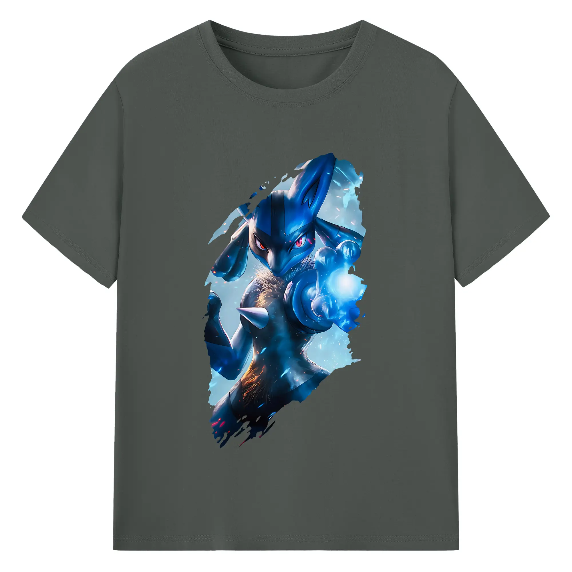 ポケモン グッズ,ルカリオ - 綿100% 半袖Tシャツ ・ バックプリント ・ 快適 通気性 ・ 日常使い 散歩 スポーツ用