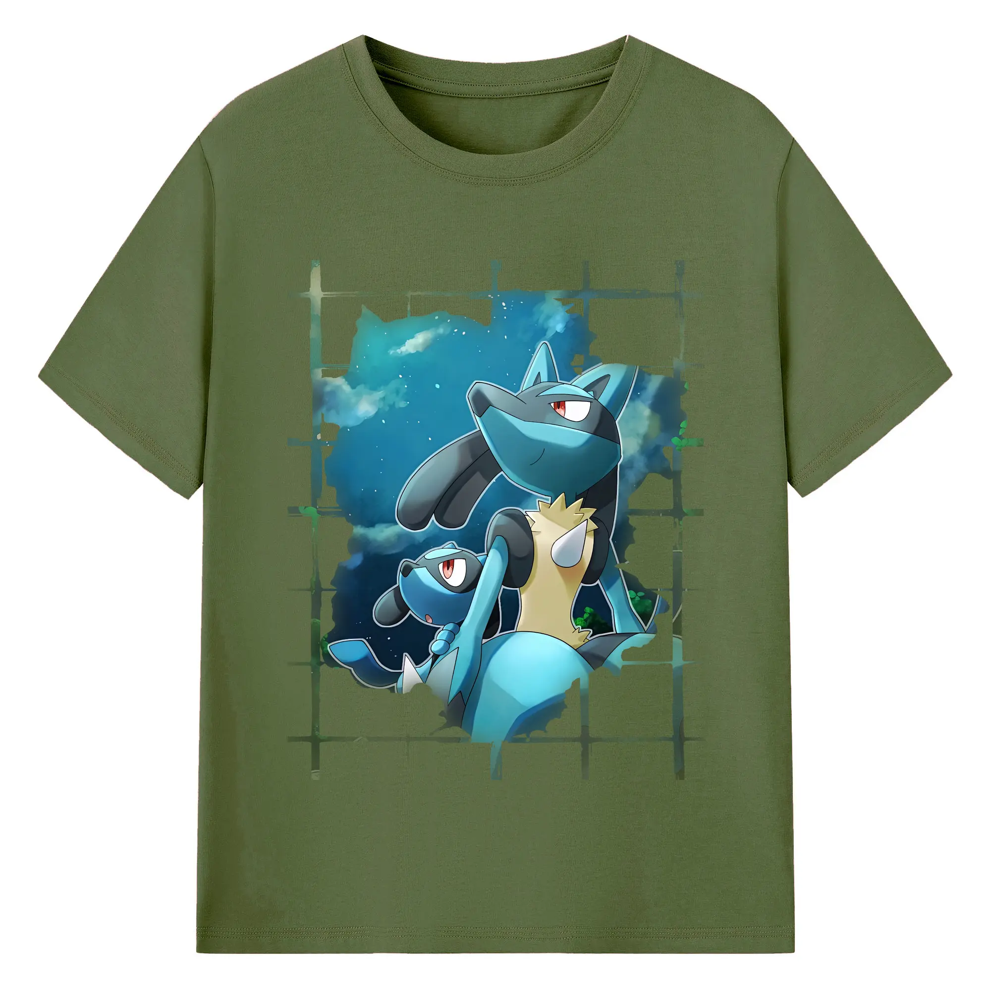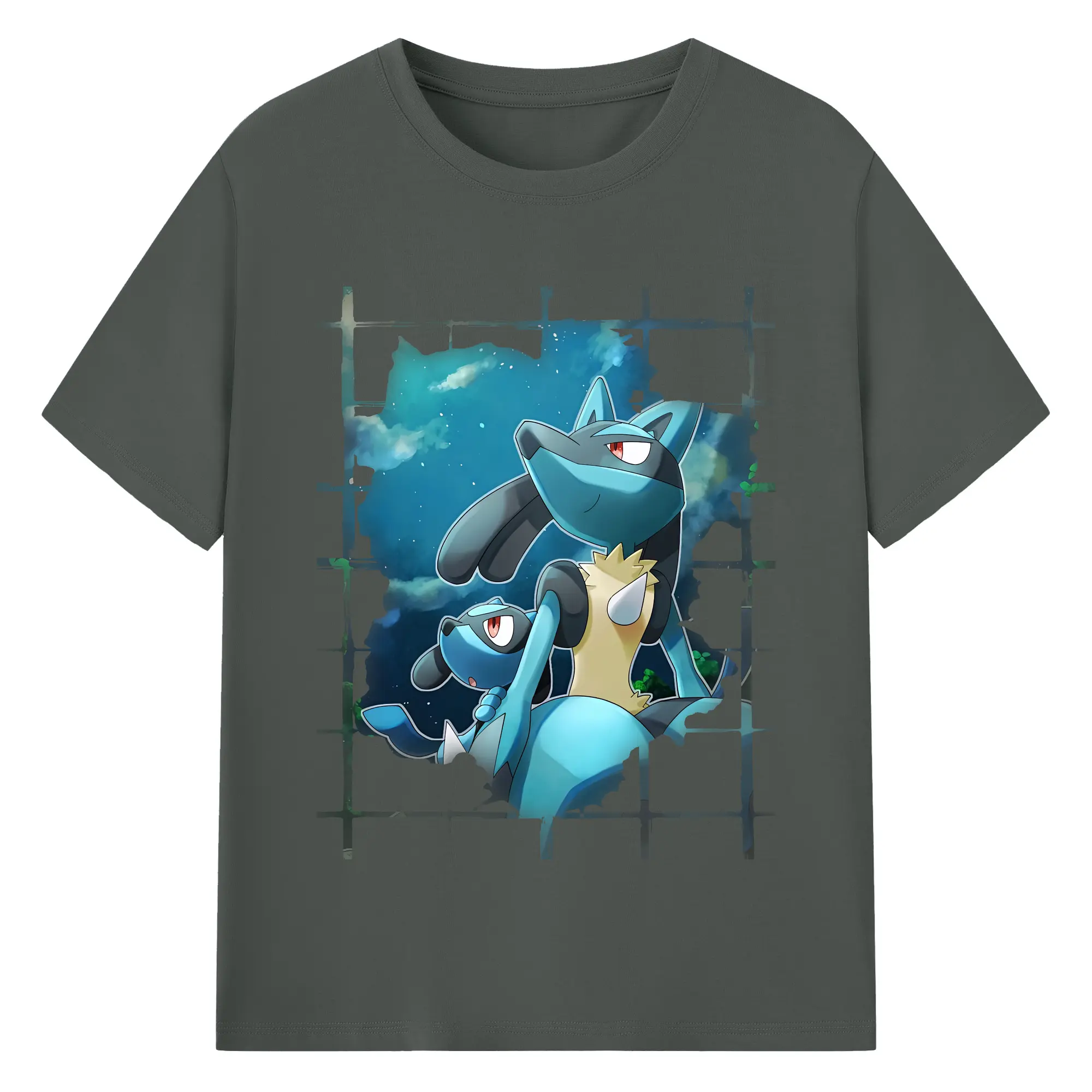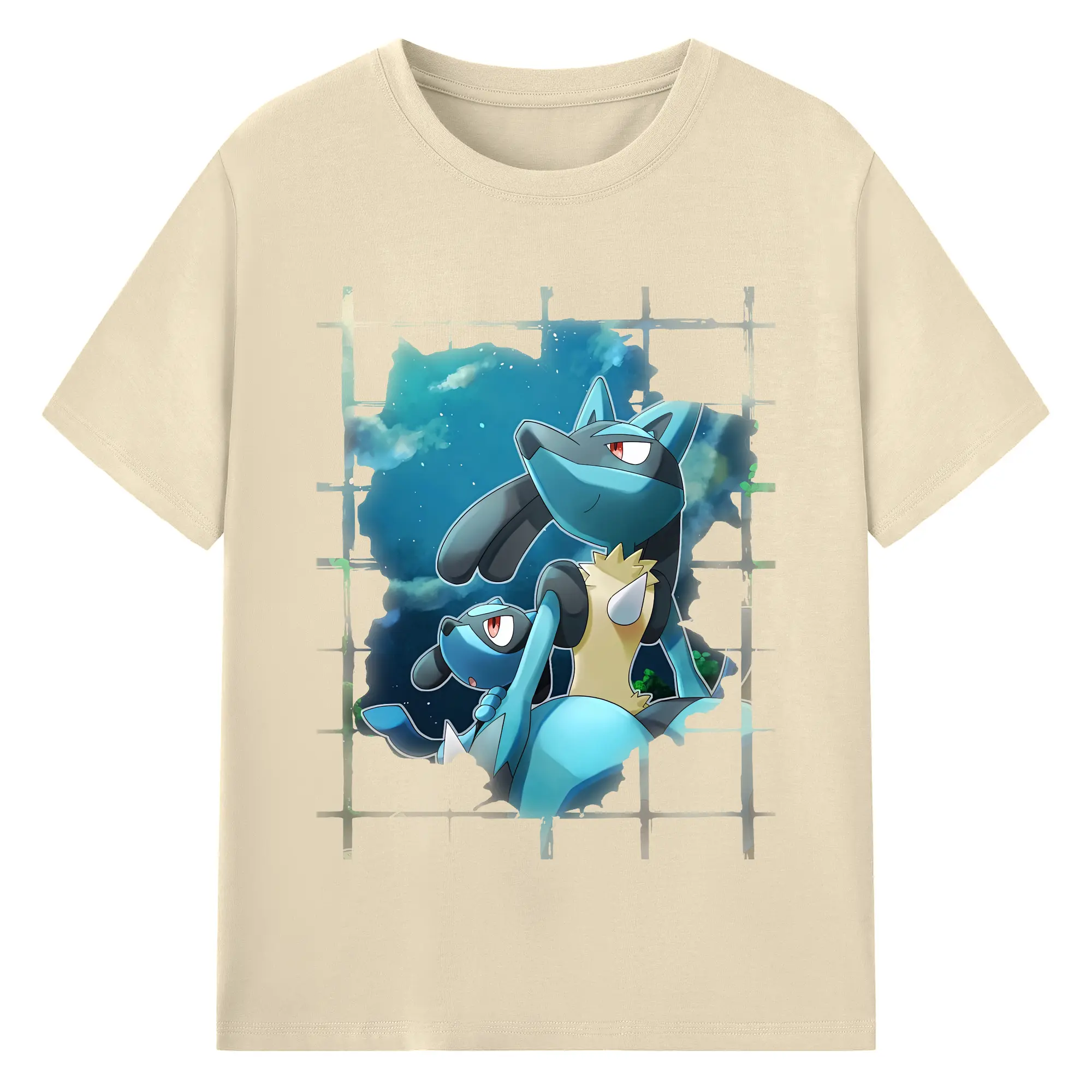 ポケモン グッズ,ルカリオ - 綿100% ヴィンテージ風 半袖Tシャツ ・ フロントプリント ・ 柔らか肌触り ・ 通気性 快適 ・ スポーツ カジュアル 外出用