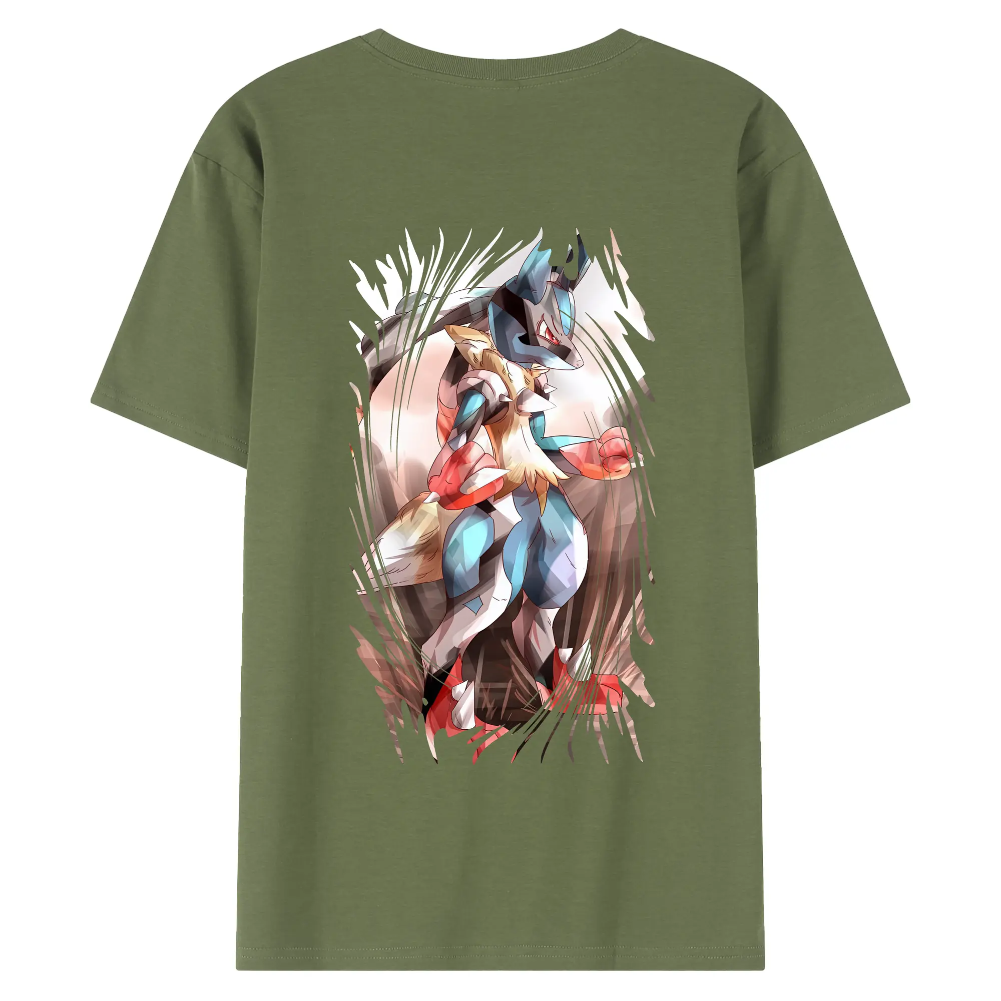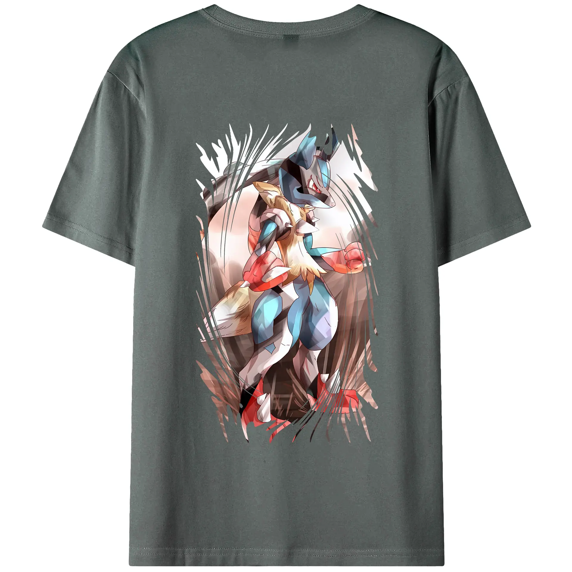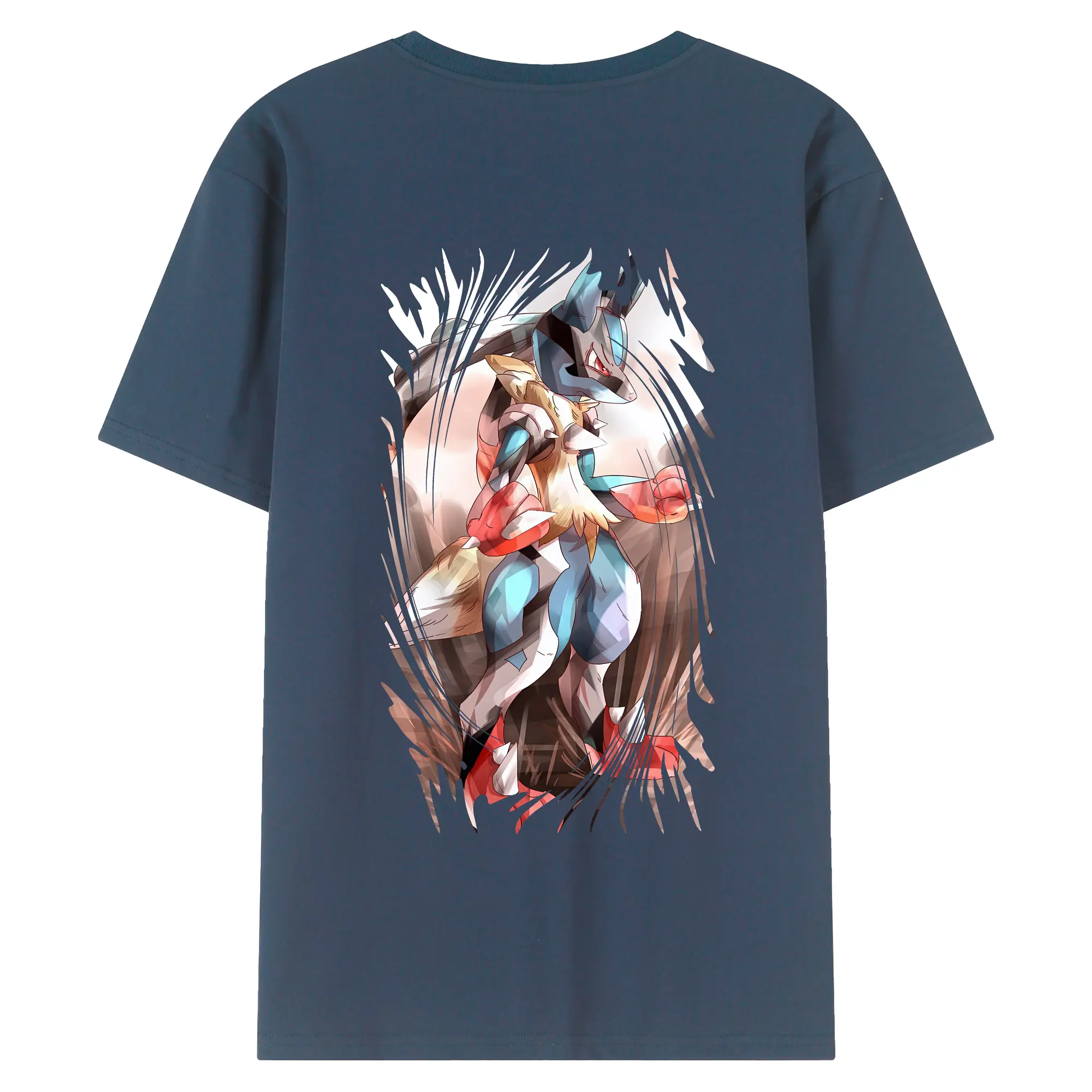 ポケモン グッズ,ルカリオ - 綿100% 半袖Tシャツ ・ フロントプリント ・ 快適 通気性 ・ 日常使い 散歩 スポーツ用