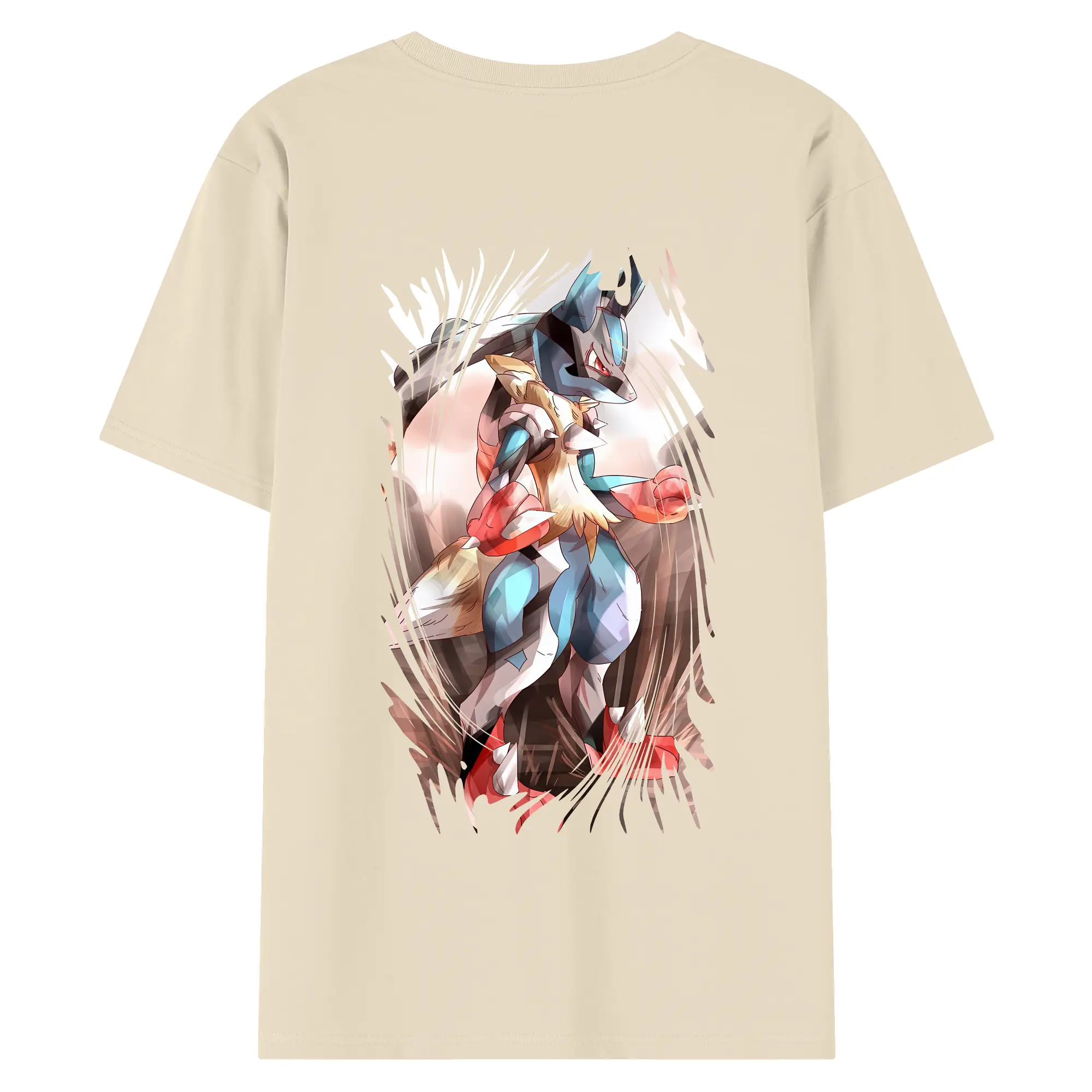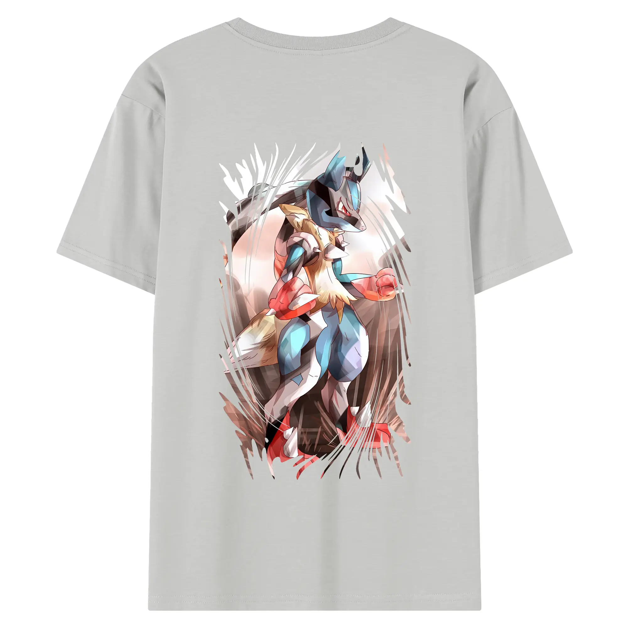 ポケモン グッズ,ルカリオ - 綿100% ヴィンテージ風 半袖Tシャツ ・ 背面プリント ・ 柔らか肌触り ・ 通気性 快適 ・ スポーツ カジュアル 外出用