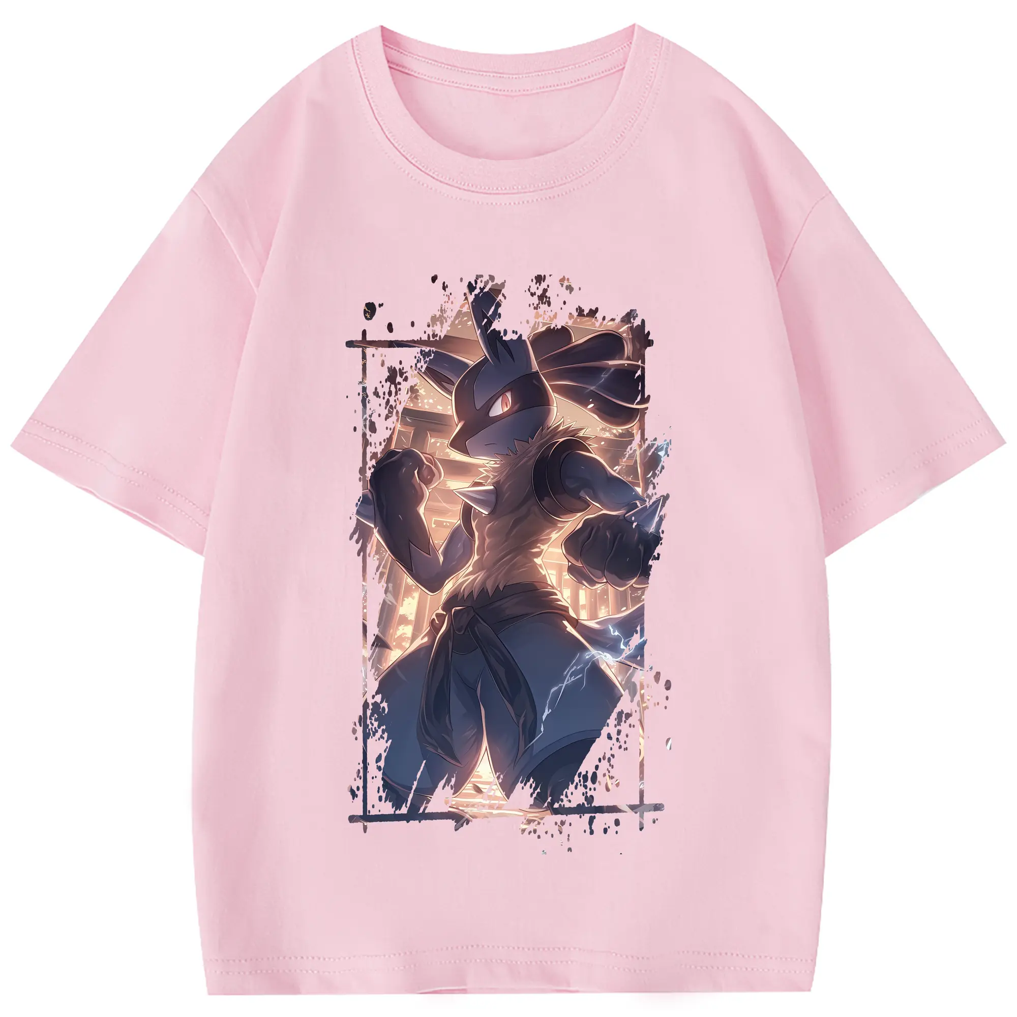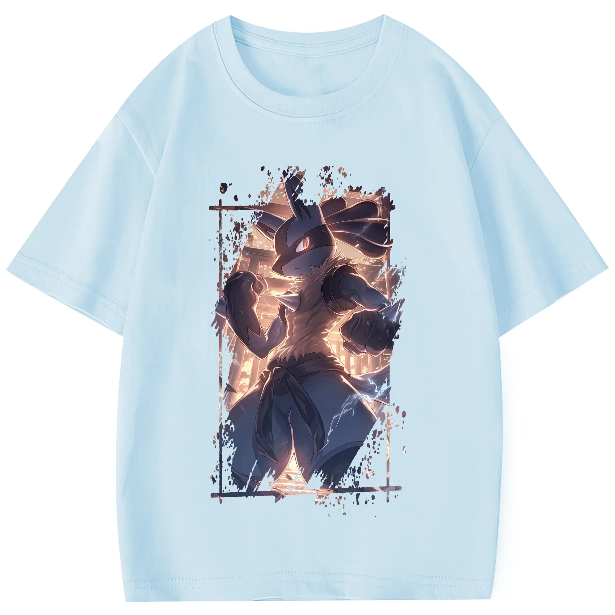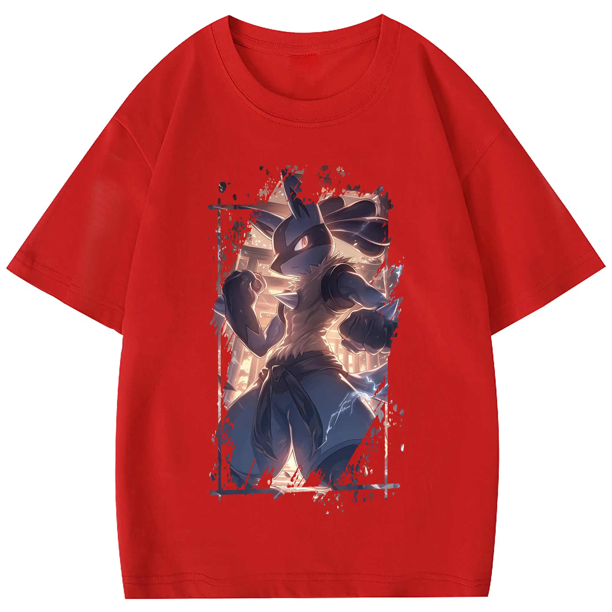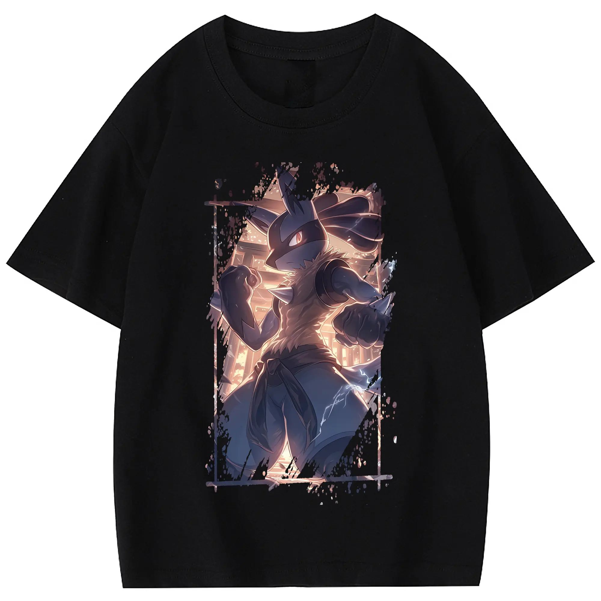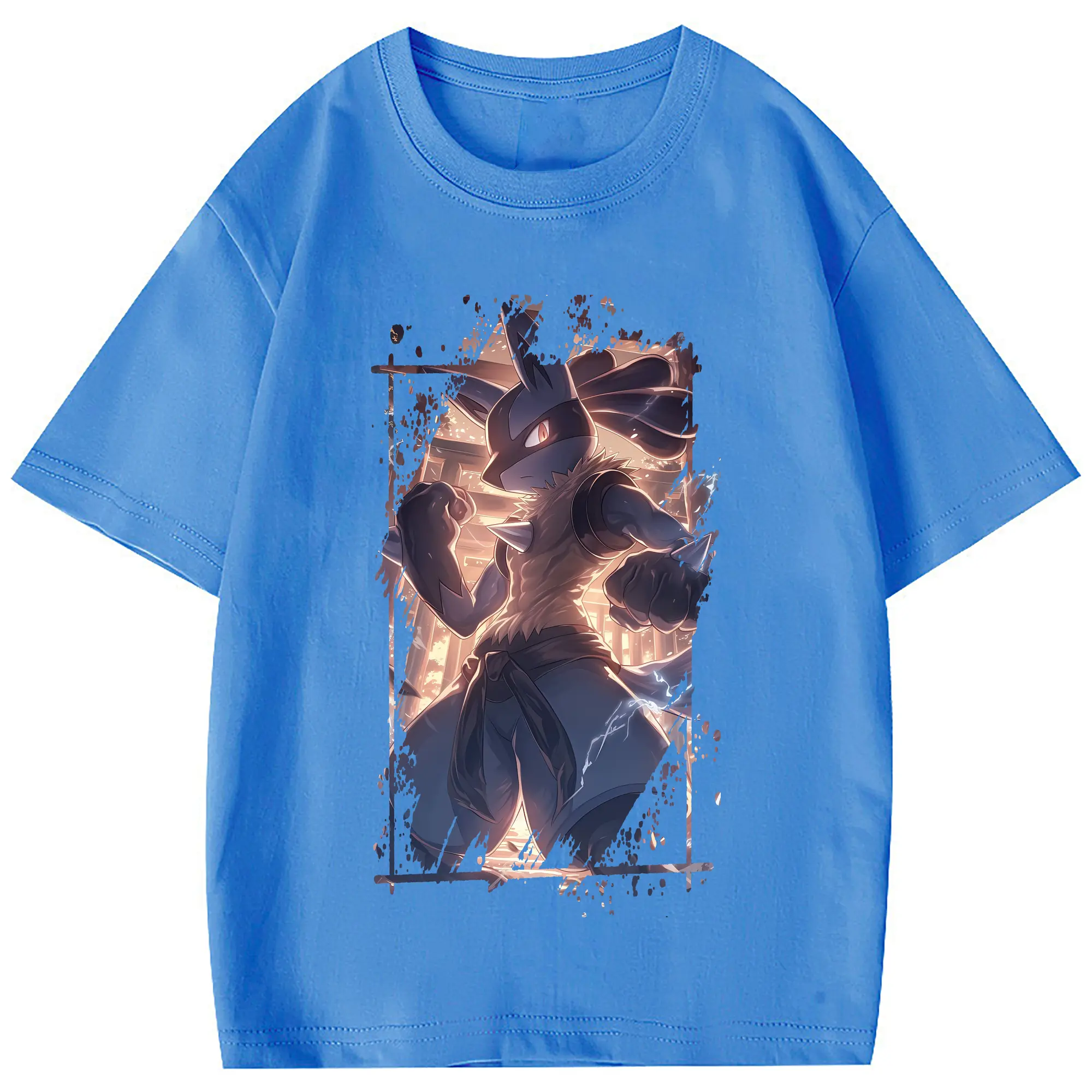 ポケモン グッズ,ルカリオ - 綿100% 半袖Tシャツ ・ フロントプリント ・ 快適 通気性 ・ 日常使い 散歩 スポーツ用