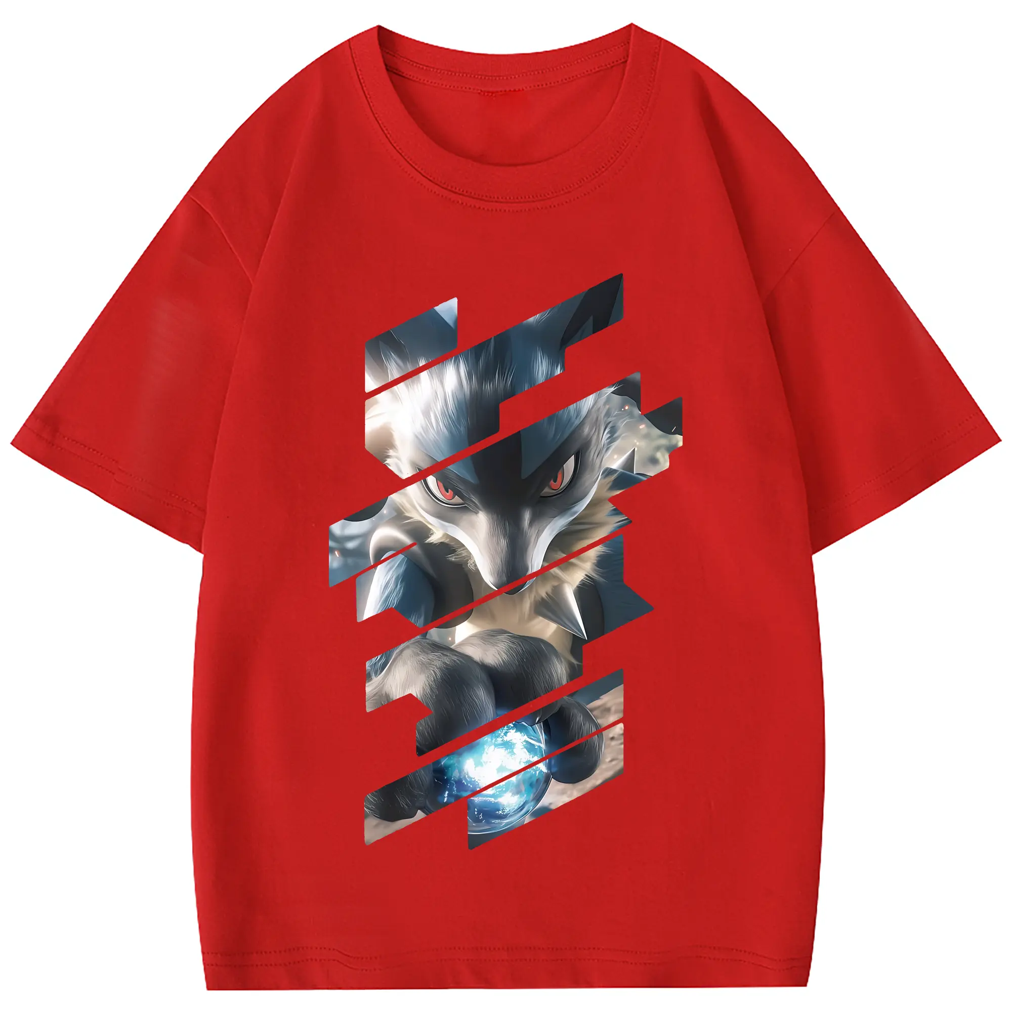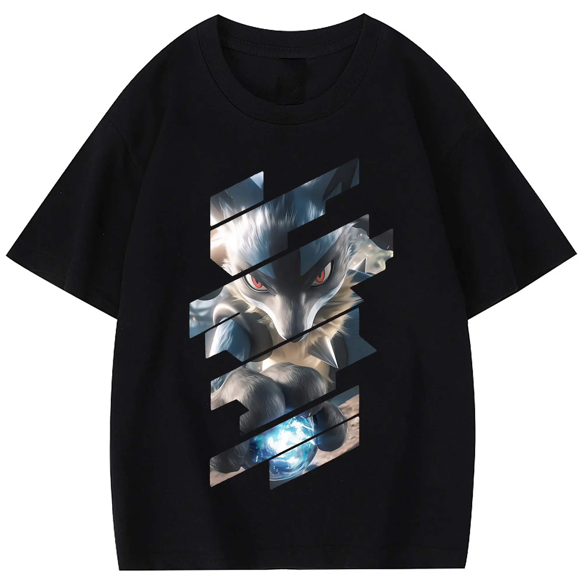 ポケモン グッズ,ルカリオ - 綿100% 半袖Tシャツ ・ フロントプリント ・ 快適 通気性 ・ 日常使い 散歩 スポーツ用