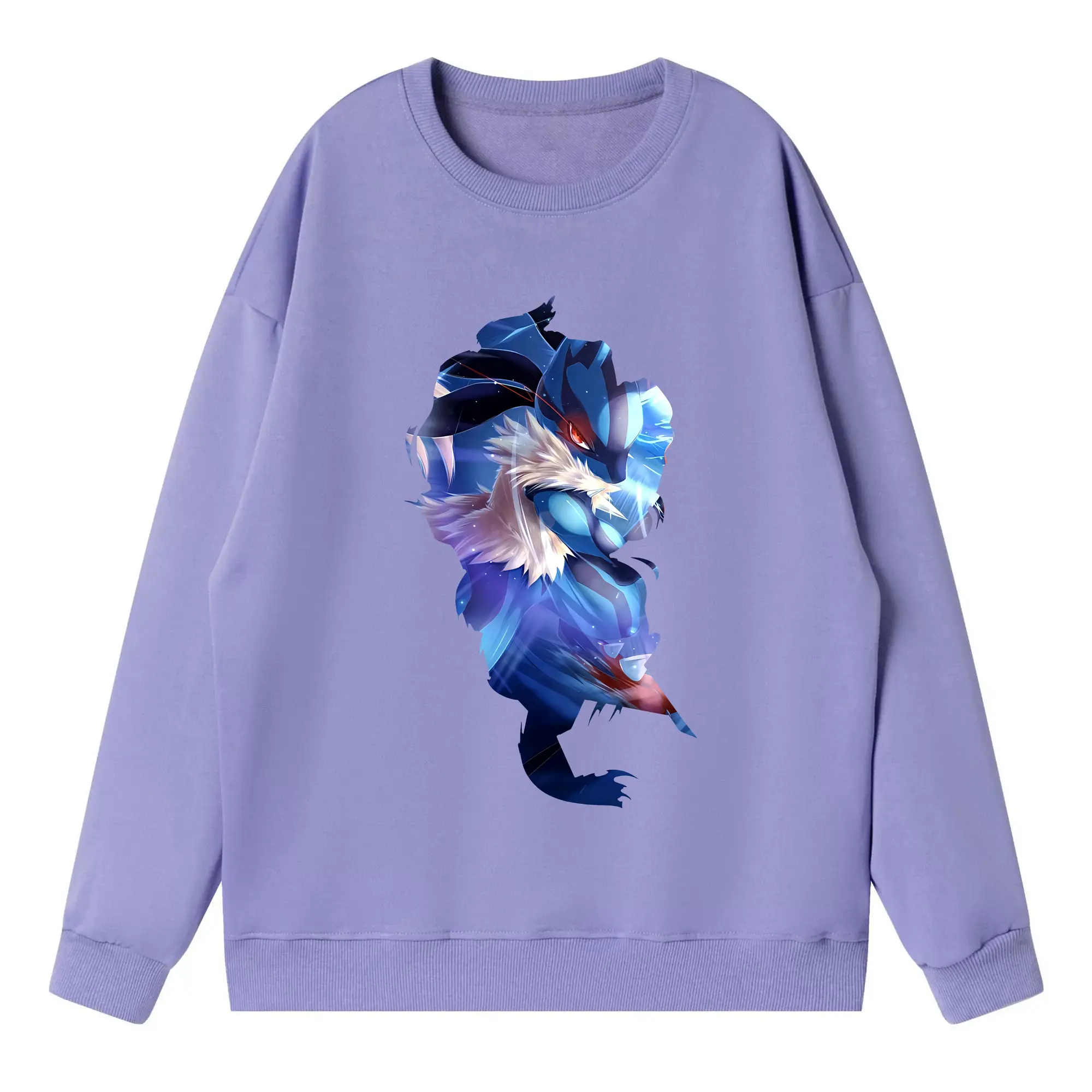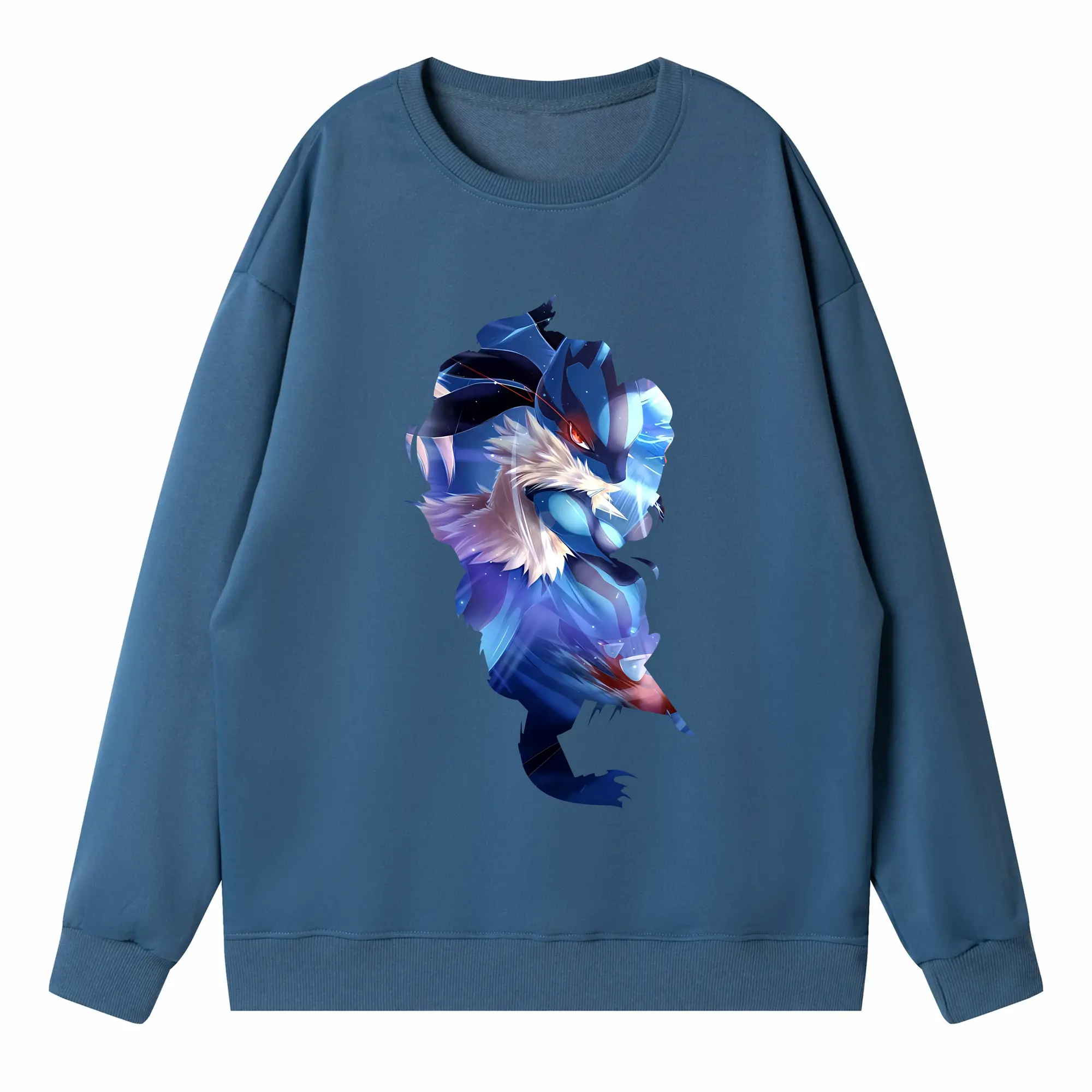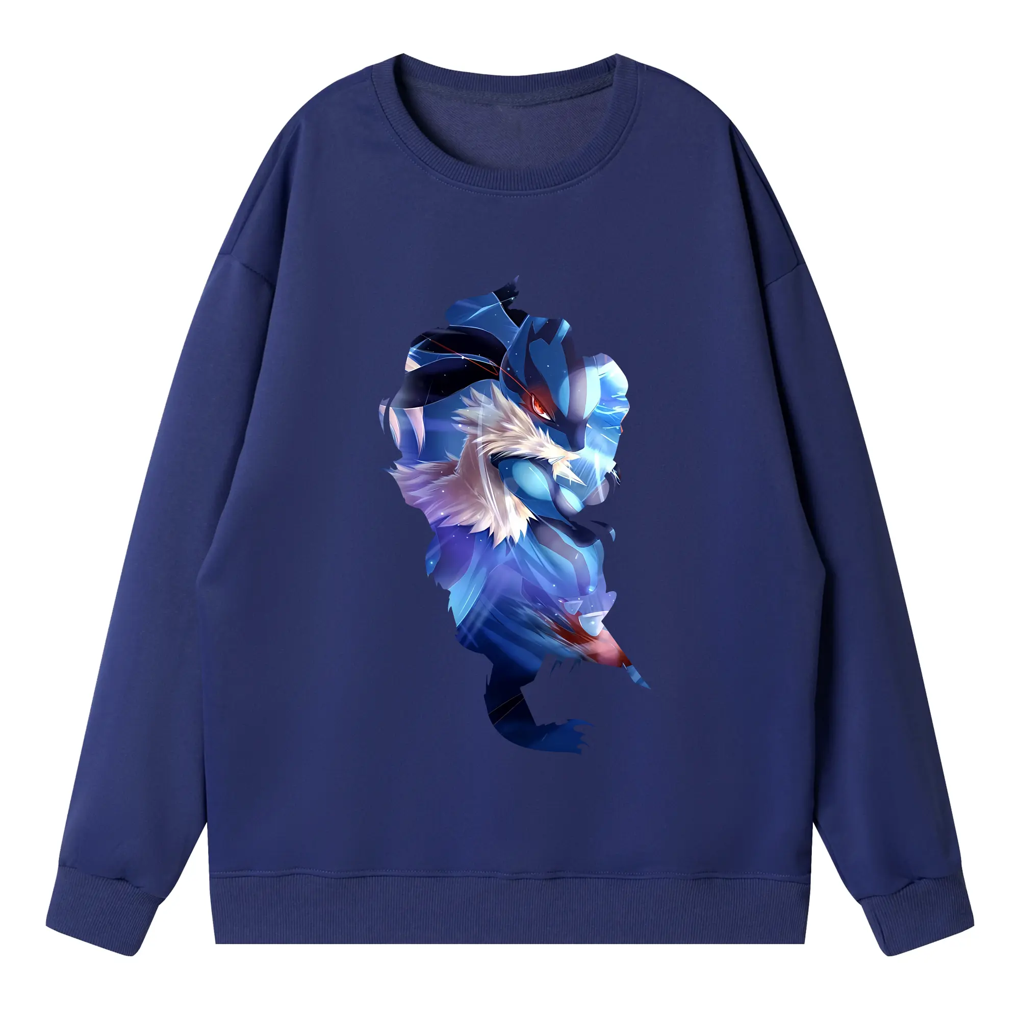 ポケモン グッズ,ルカリオ - 薄手 クルーネック スウェット 裏毛260g · ポリエステル 春秋向け カジュアル 男女兼用 · トレーナー デイリー スポーツ 散歩に最適